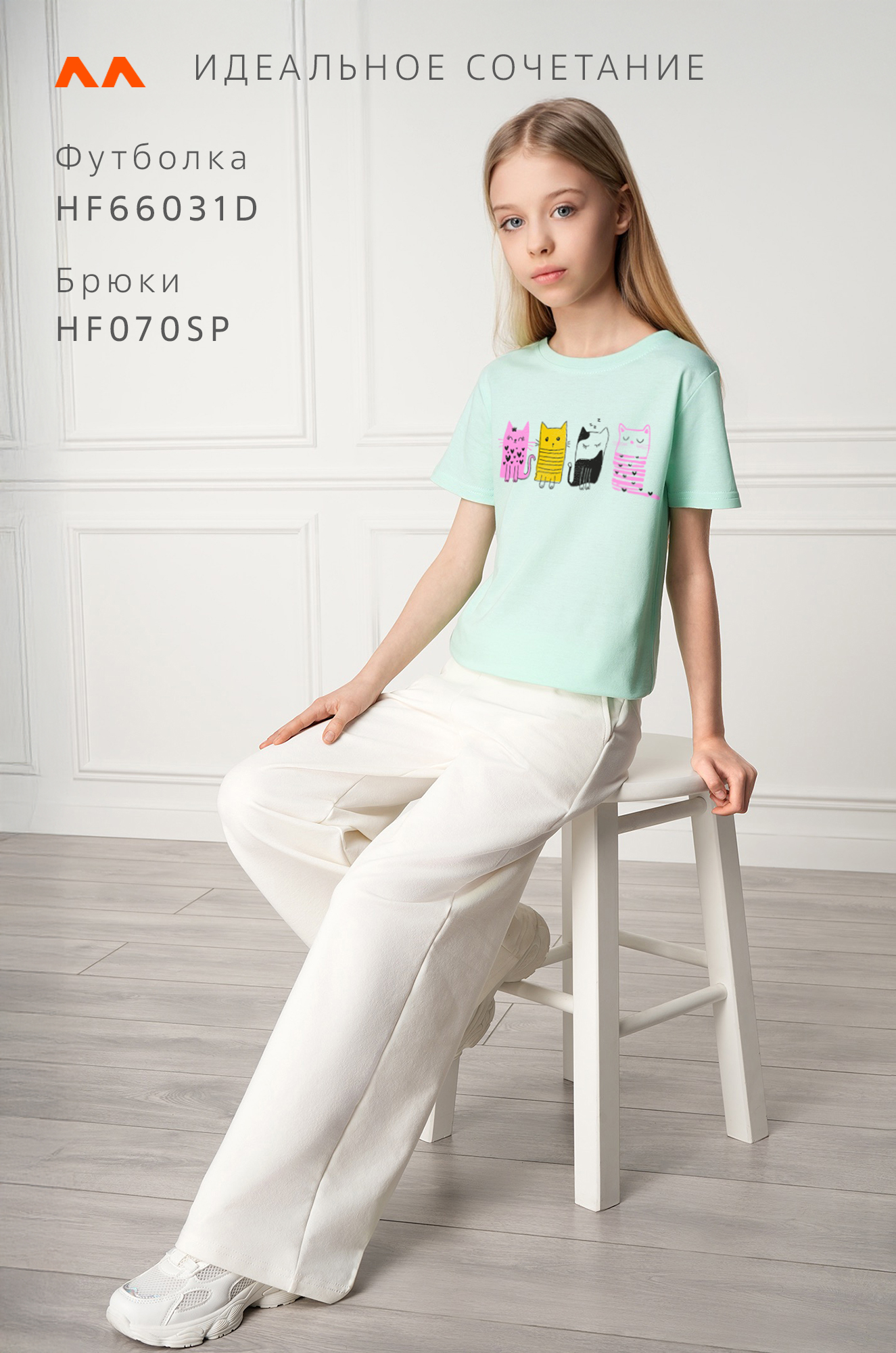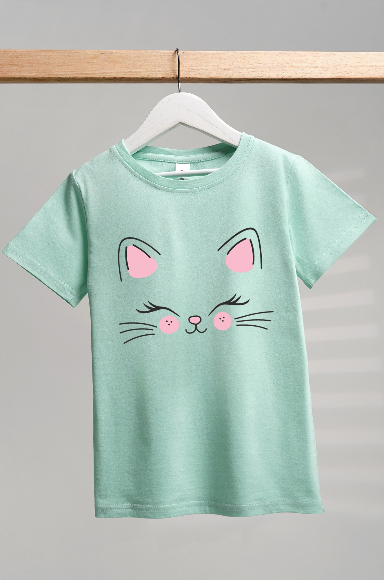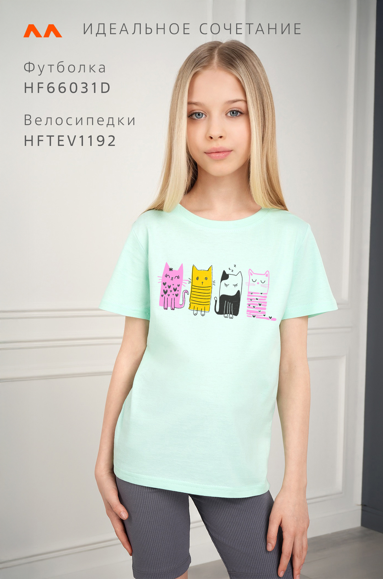 Детская футболка для девочки и девочки-подростка выполнена из 100% хлопка и представлена в ментоловом цвете. Летняя модель украшена милым принтом и станет любимым вариантом на каждый день.