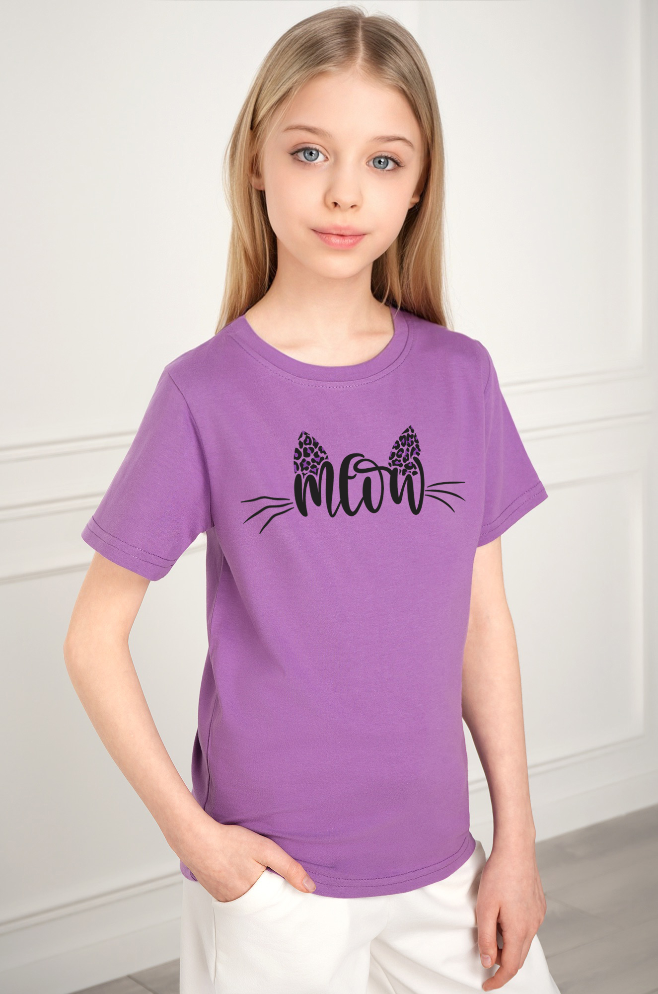 Сиреневая футболка с рисунком подойдет для детей и подростков как лучший повседневный вариант.