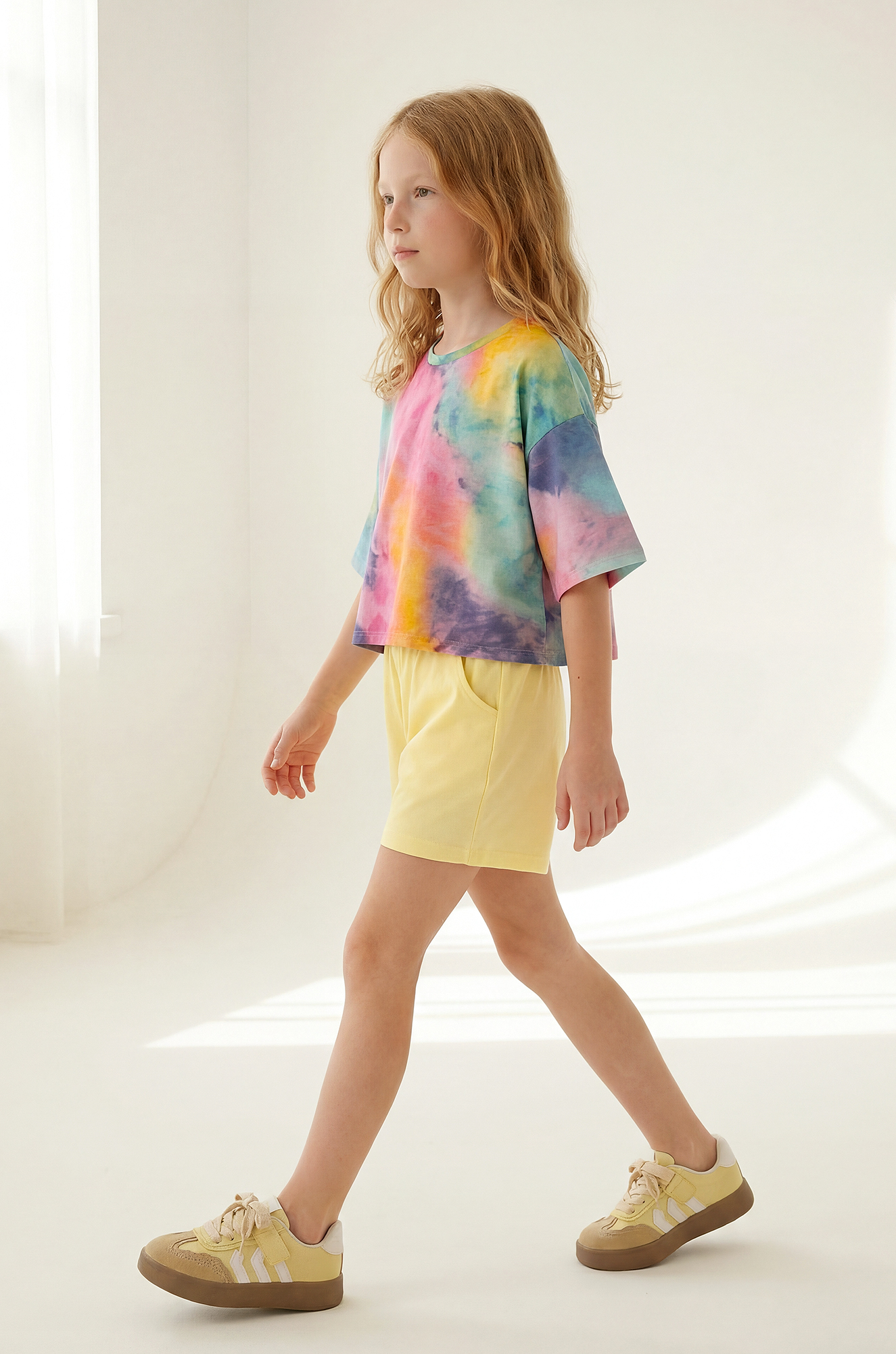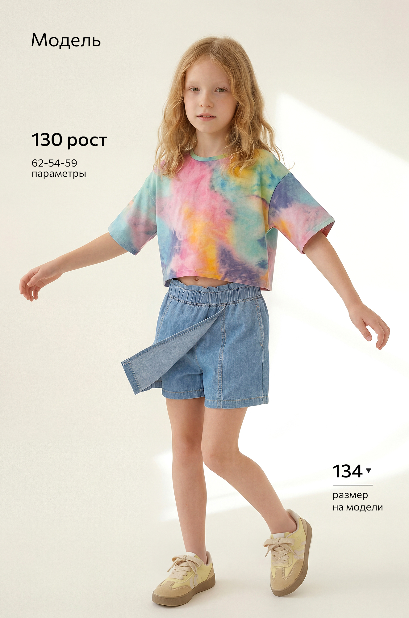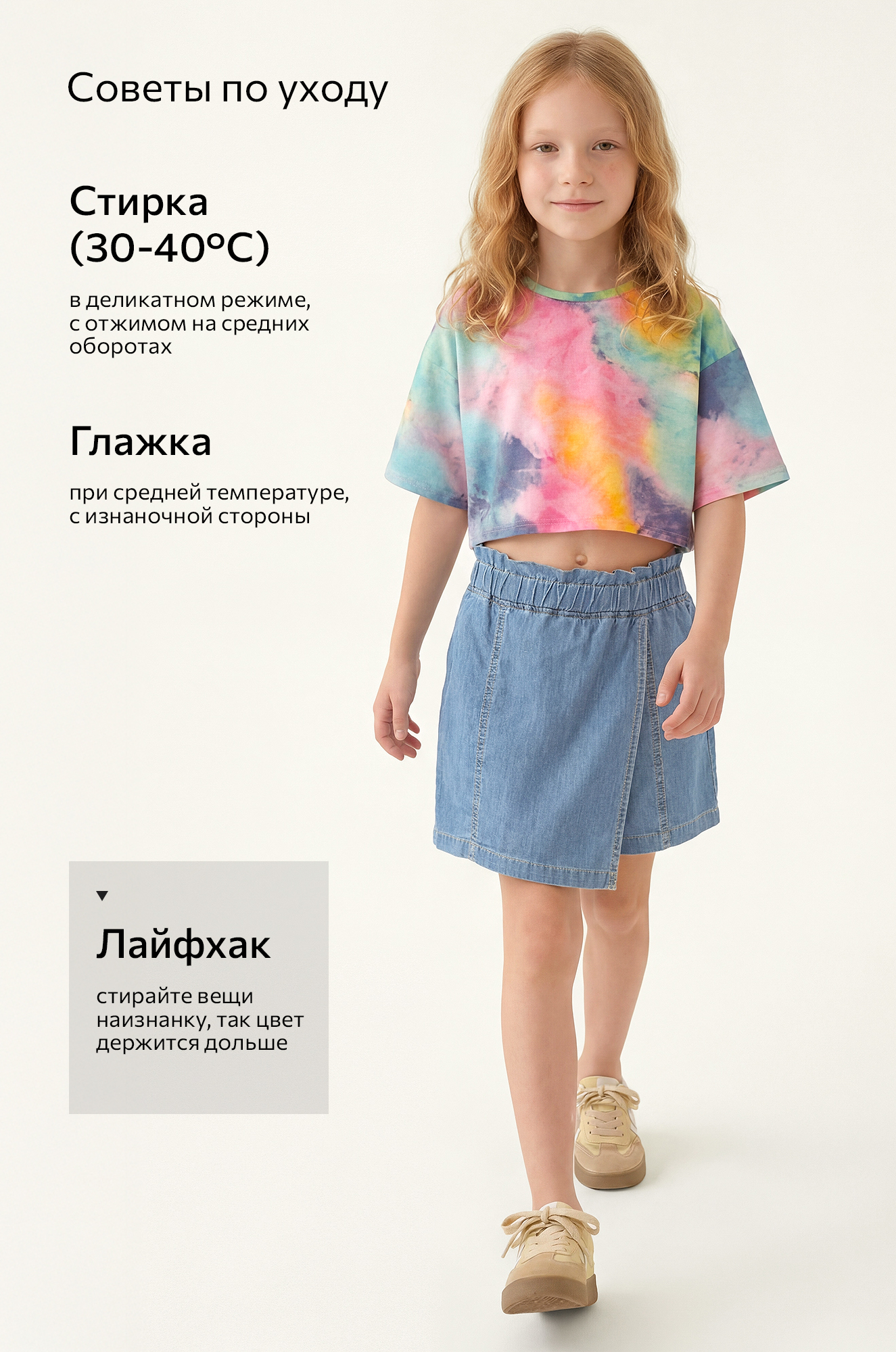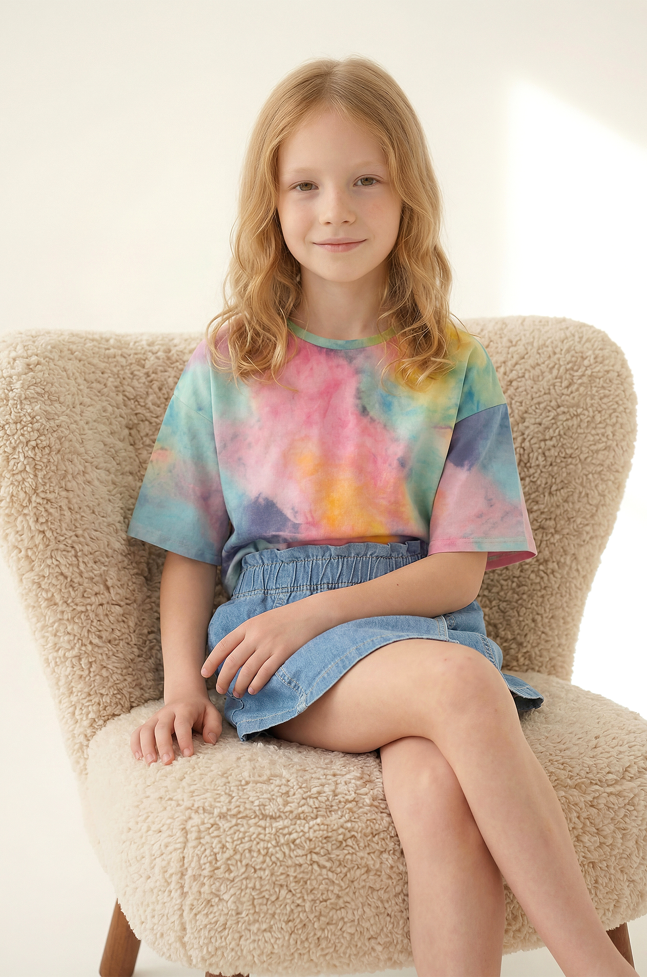 — свободный крой и разноцветный принт тай-дай позволяют легко сочетать детскую футболку с чем угодно, создавая яркие образы без лишних усилий;
