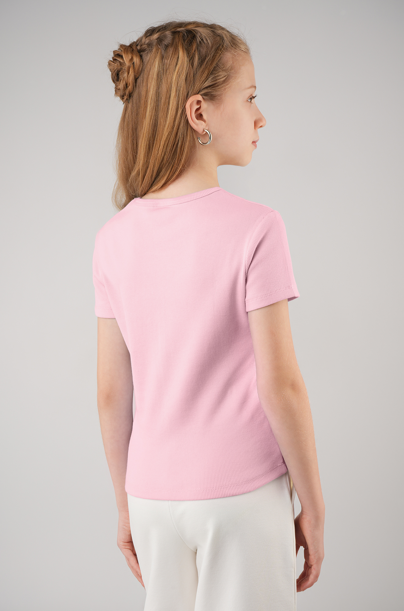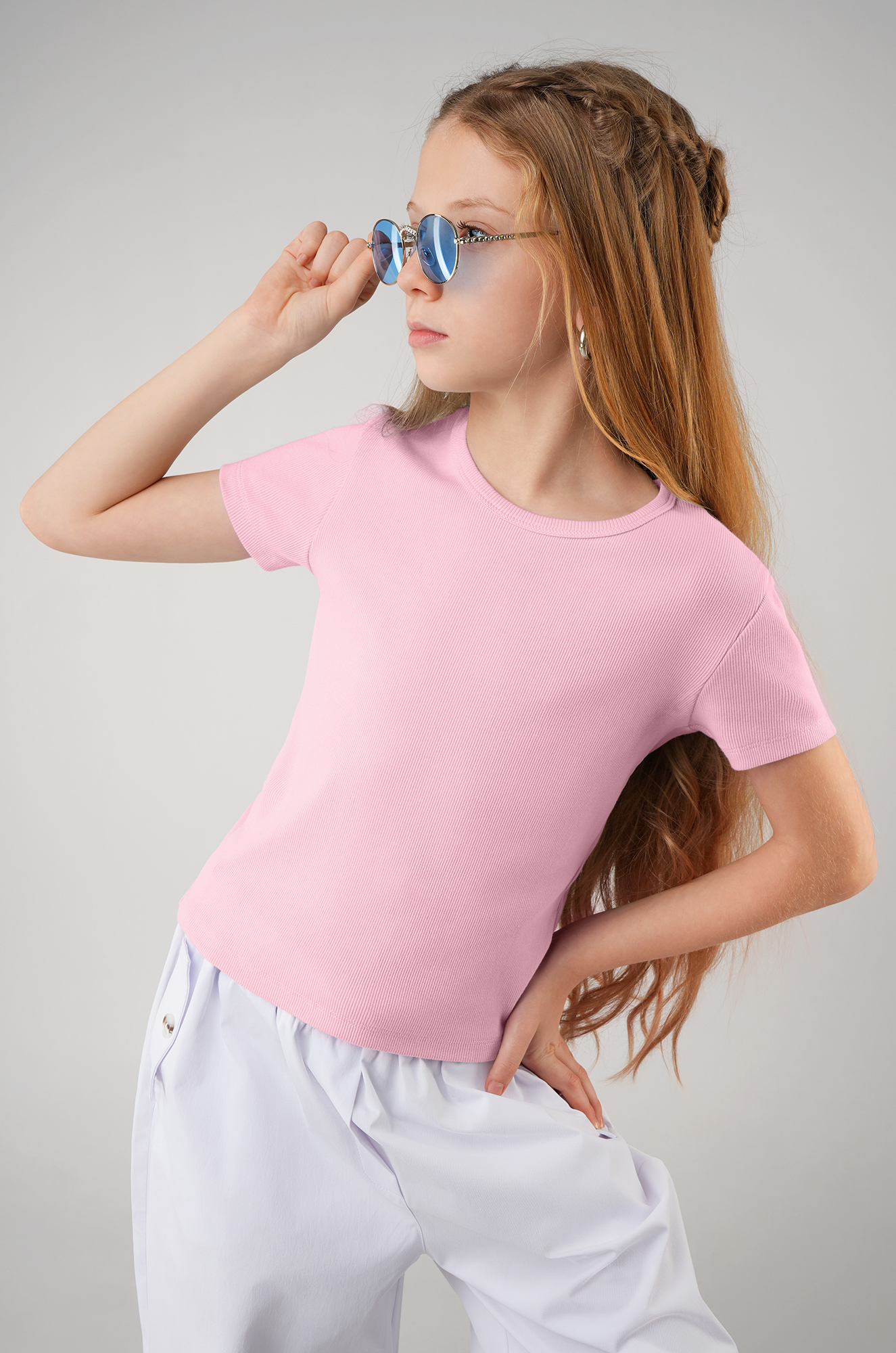 Детская футболка в рубчик для девочек — стильное сочетание комфорта и лаконичности. Облегающая футболка мягко повторяет фигуру и подходит для повседневных образов. Футболка выполнена из кашкорсе — это плотный трикотаж с характерной рубчатой текстурой.