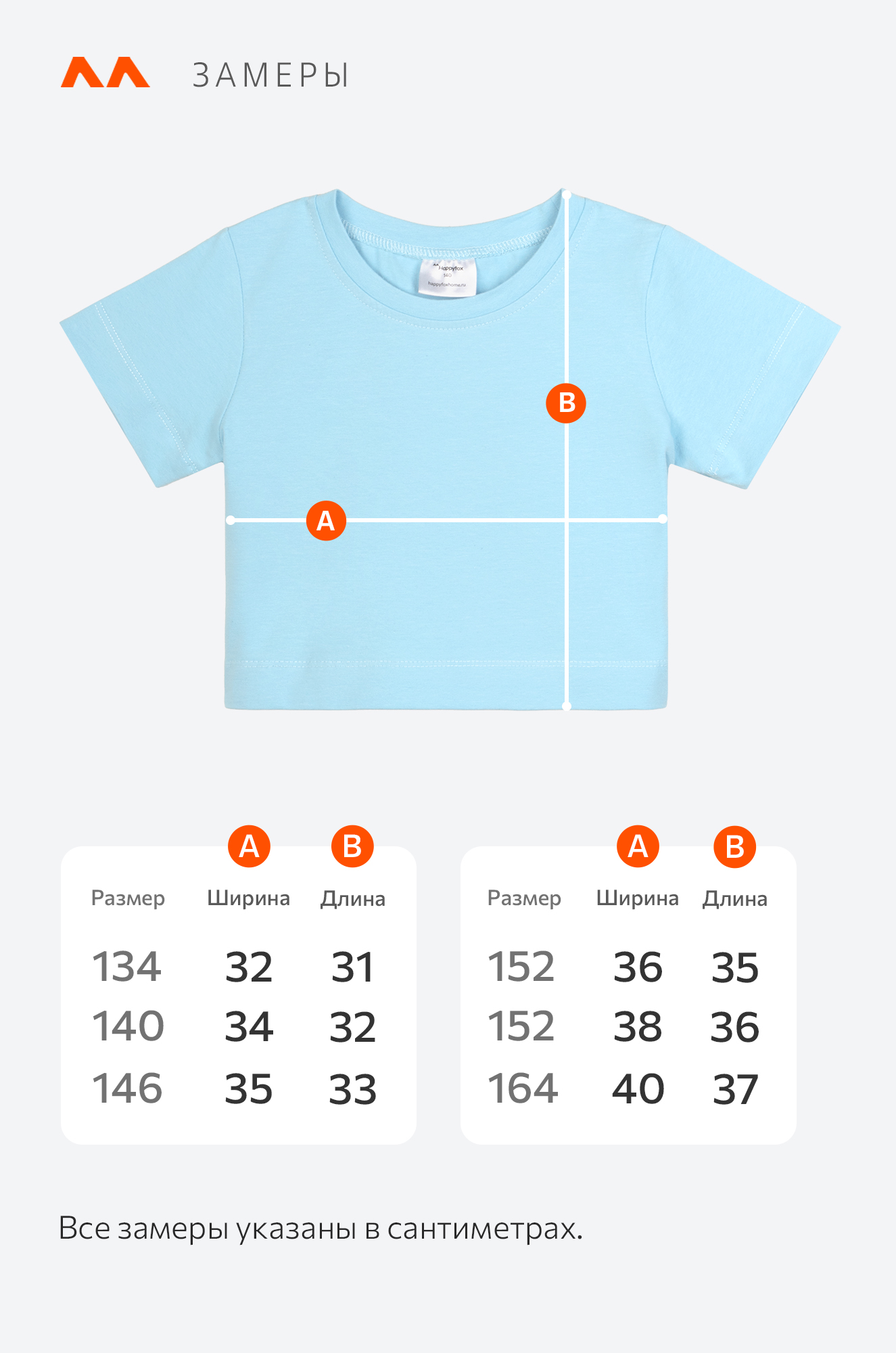 Укороченная футболка для девочки и девочек-подростков — идеальный ключ к расслабленному летнему образу! Прямой крой и короткая длина дарят ощущение лёгкости и полной свободы. Детская футболка выполнена из трикотажной ткани кулирная гладь с добавлением лайкры.