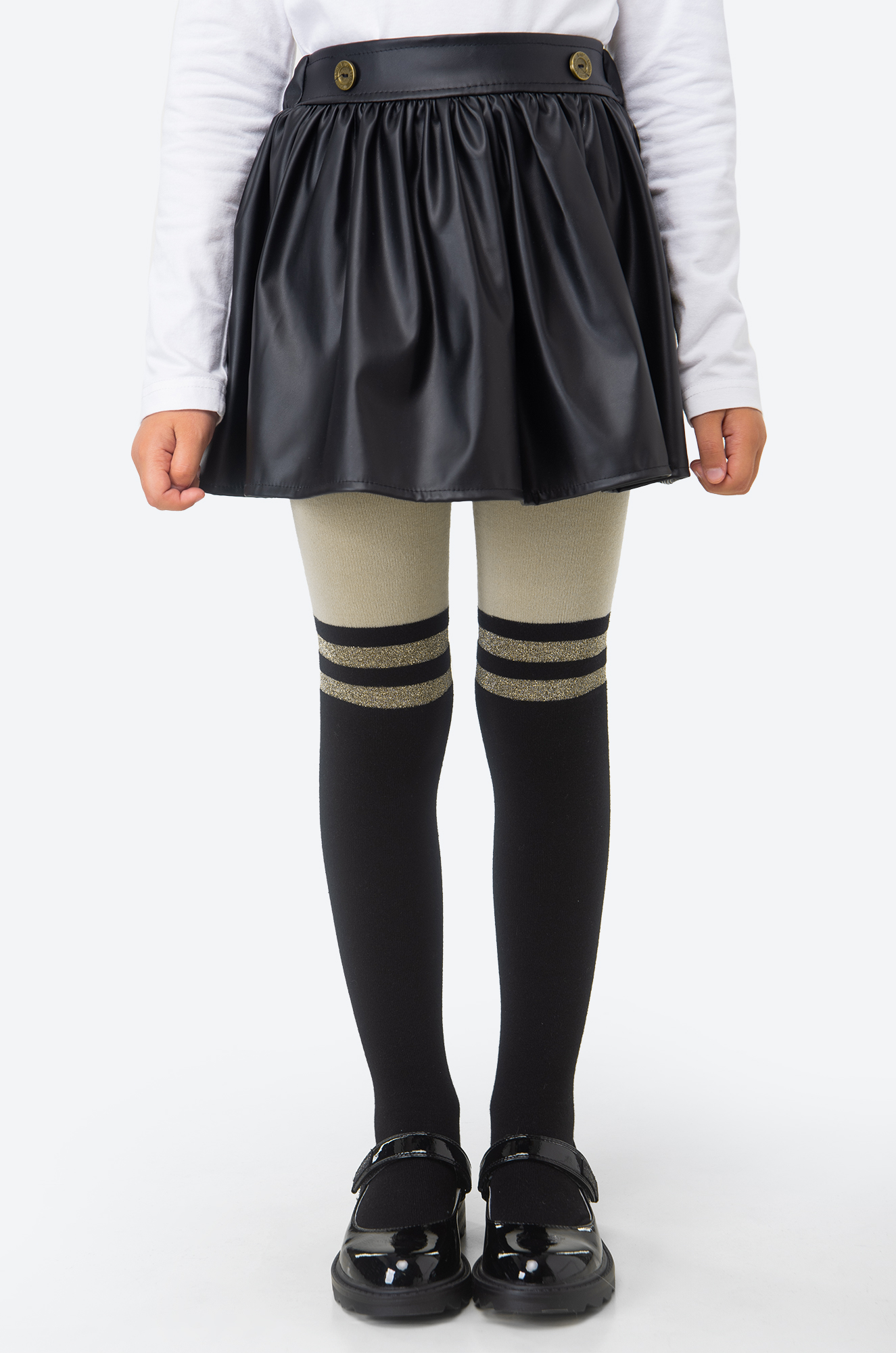 Благодаря элегантному дизайну с имитацией высоких гольфов, колготки из хлопкового трикотажа станут настоящей изюминкой любого гардероба, дополнят школьные образы весной и осенью. Удобные и универсальные нарядные колготки подойдут для школы и детского сада, добавляя блеска и роскоши.