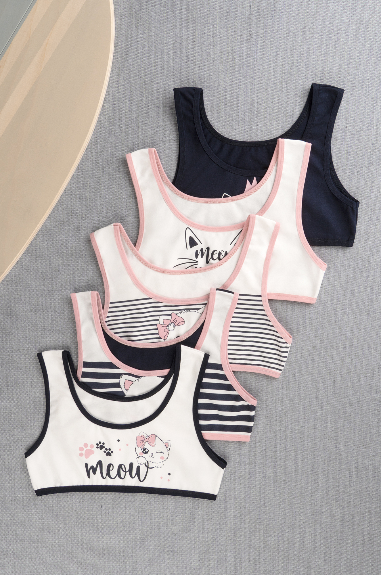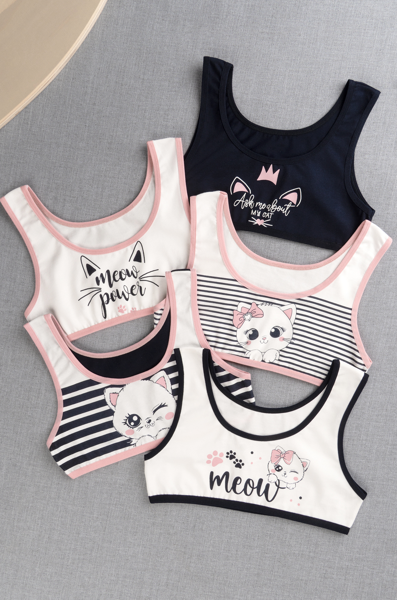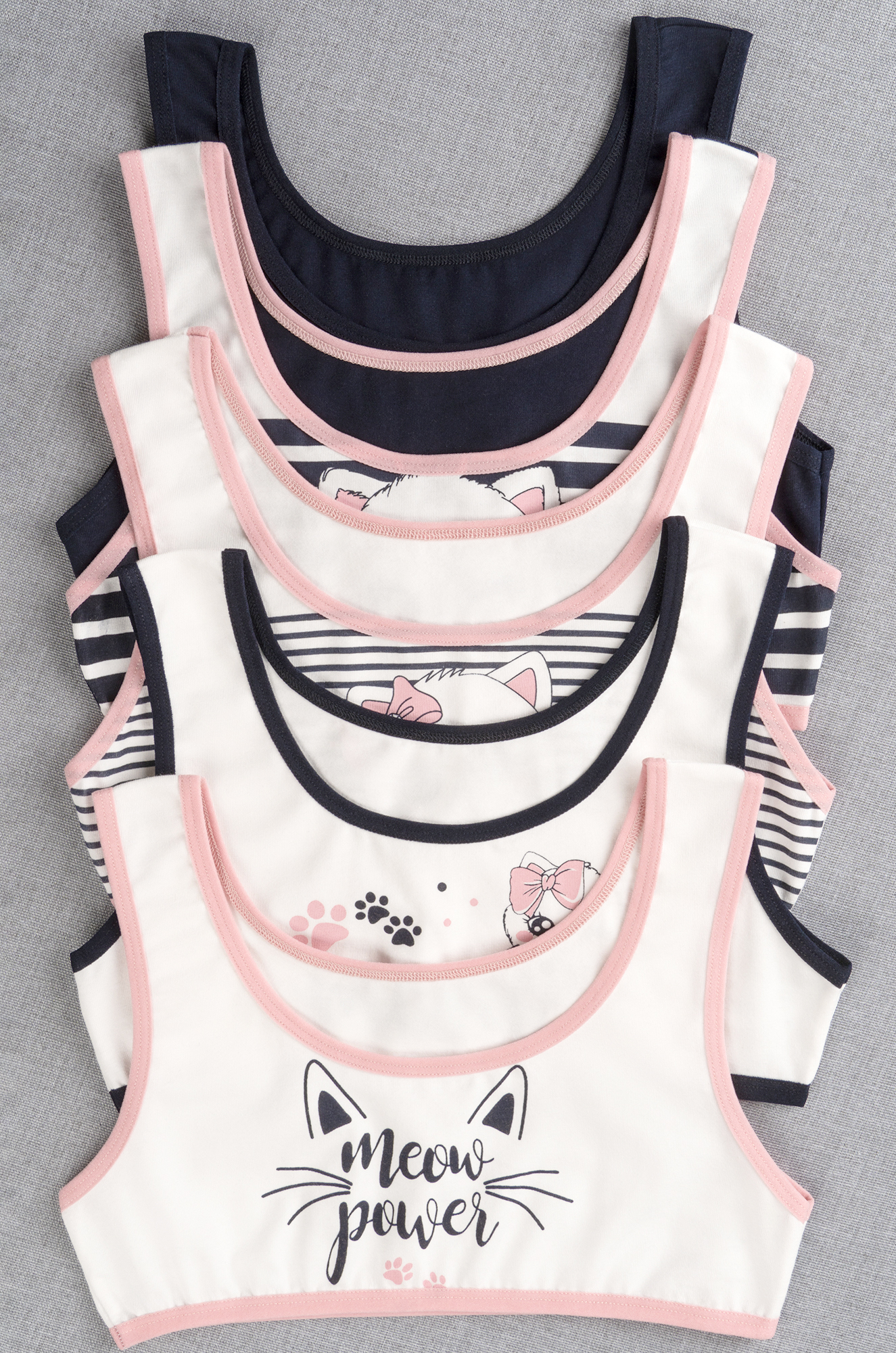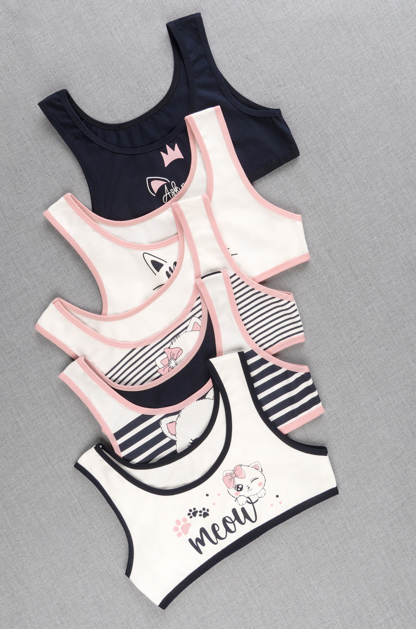 Погрузитесь в мир нежности и комфорта с набором детских топов! Милые топики с принтом Котики для девочки и девочки-подростка выполнены из мягкого хлопкового трикотажа, в наборе 5 шт. разных вариантов.