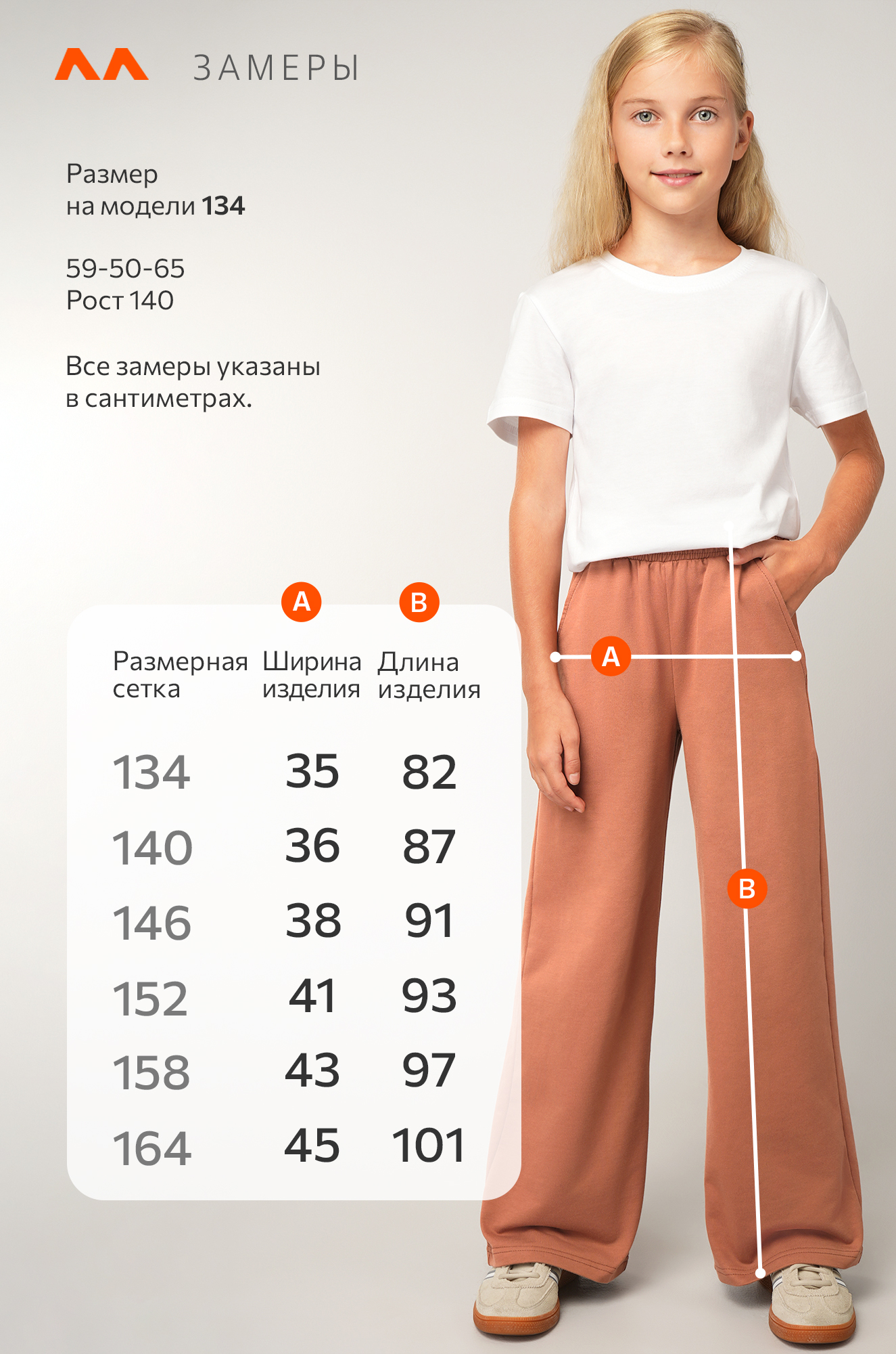 Рост модели 140 см, параметры: объем груди 59, объем талии 50, объем бедер 65 см. На ней размер 134.