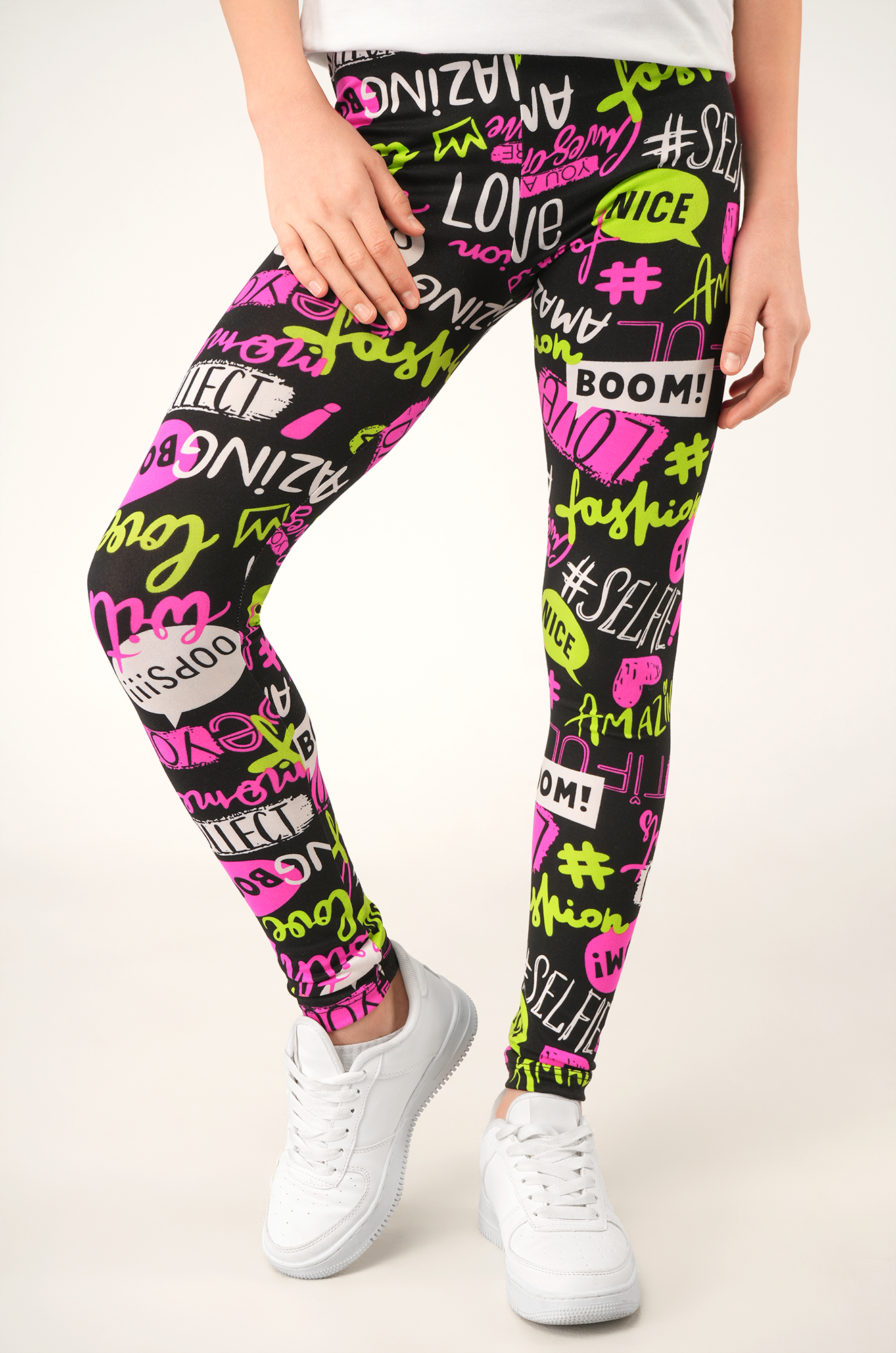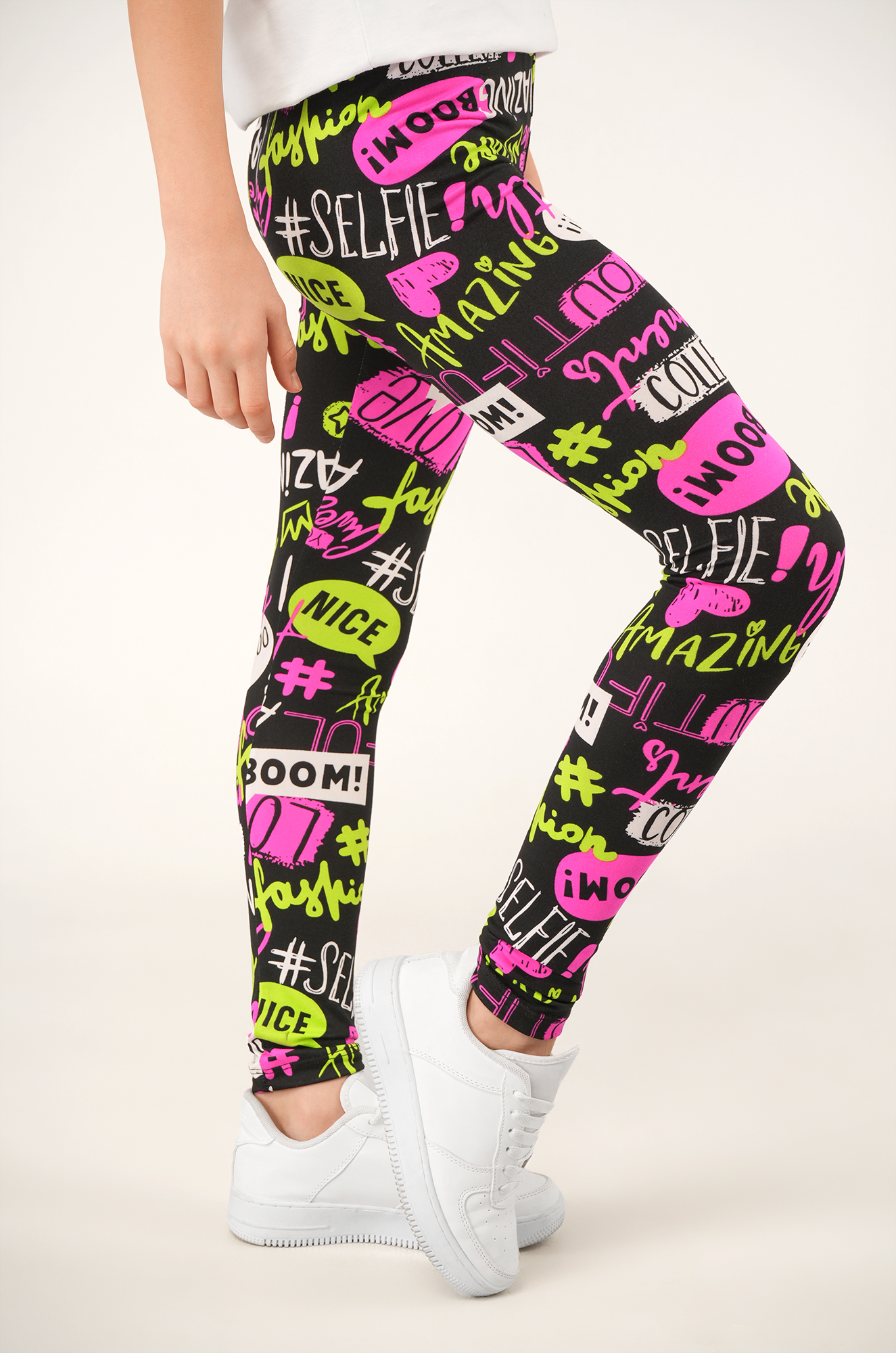 Детские лосины для девочки — идеальный вариант для активной повседневной жизни. Стильные лосины дополнены надписями.
