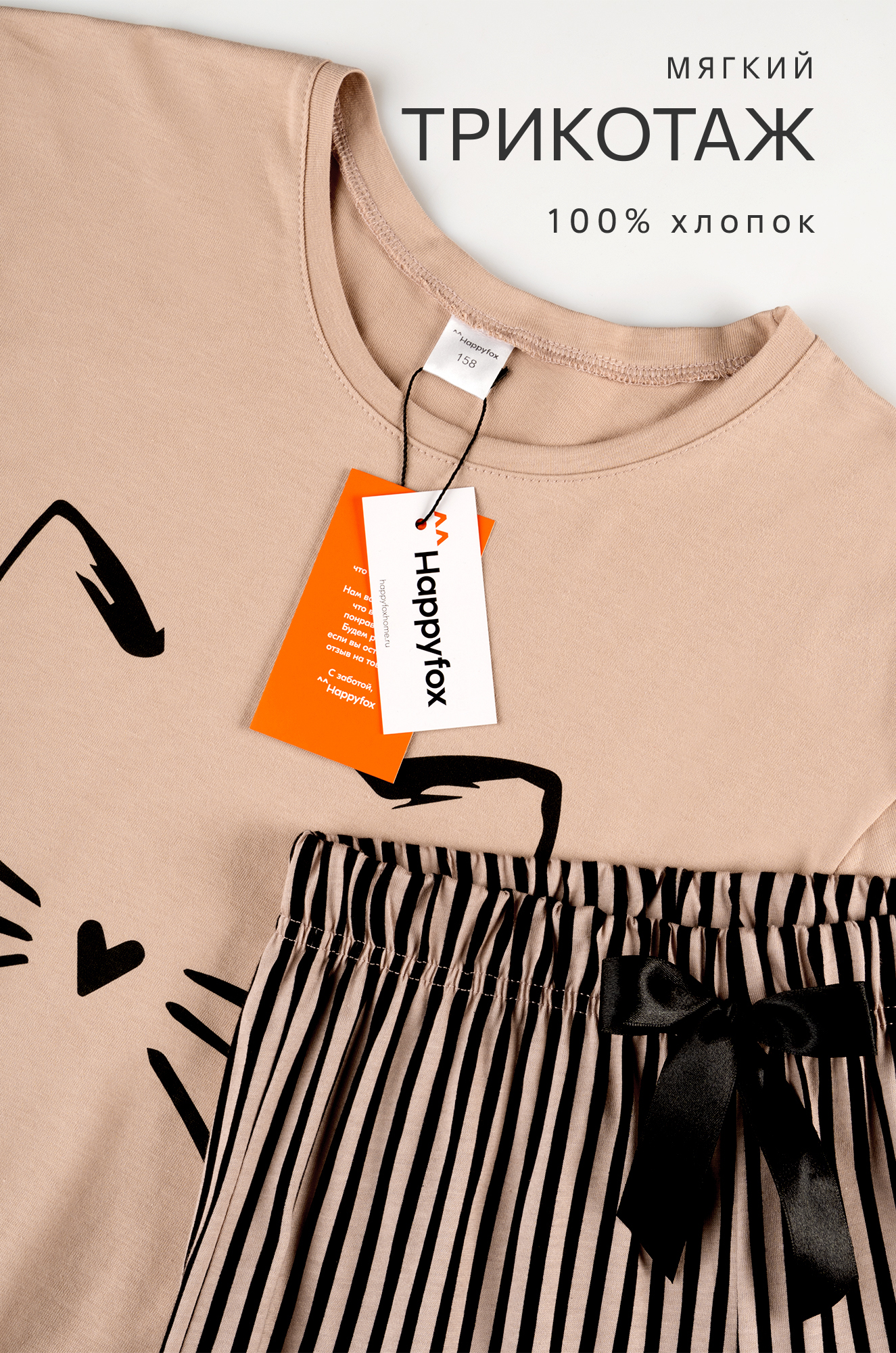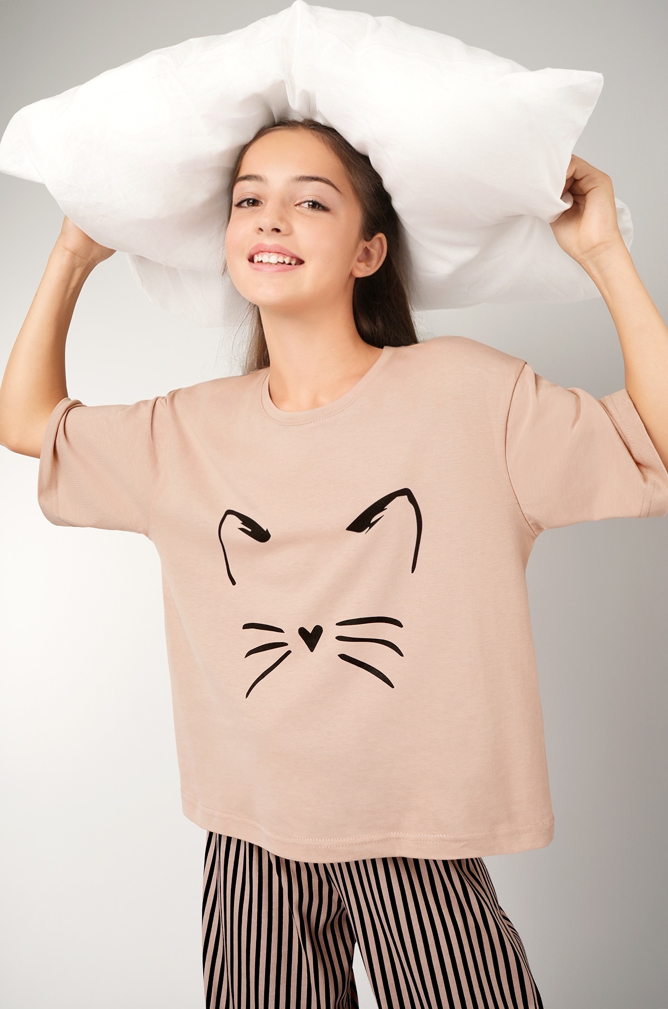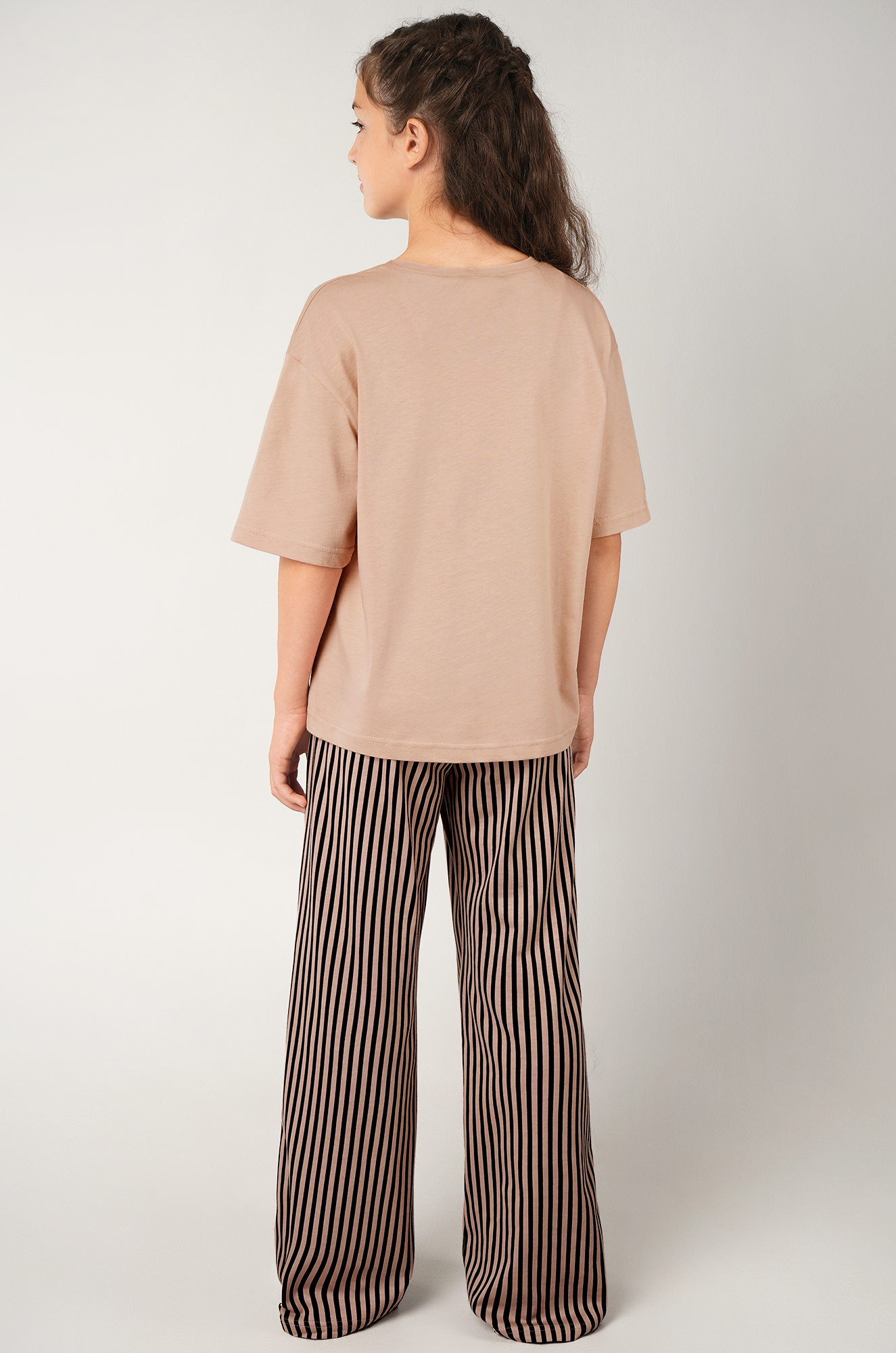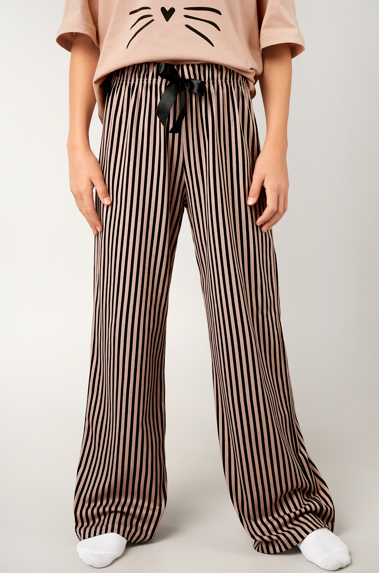 Трикотажная пижамка с брюками подойдёт и для дома, и для поездок.
