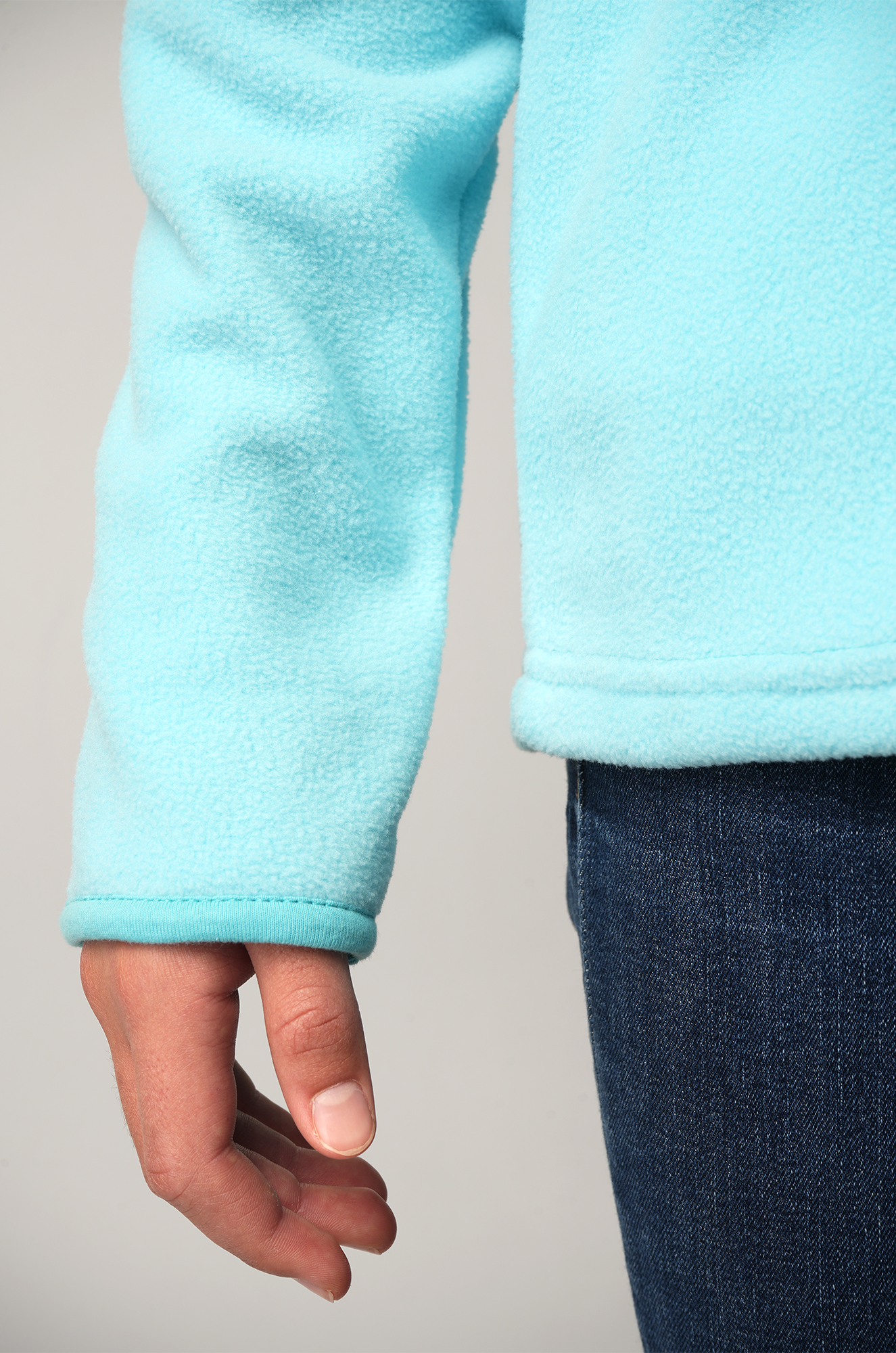 — флисовый джемпер ментолового цвета не требует глажки и быстро сохнет.