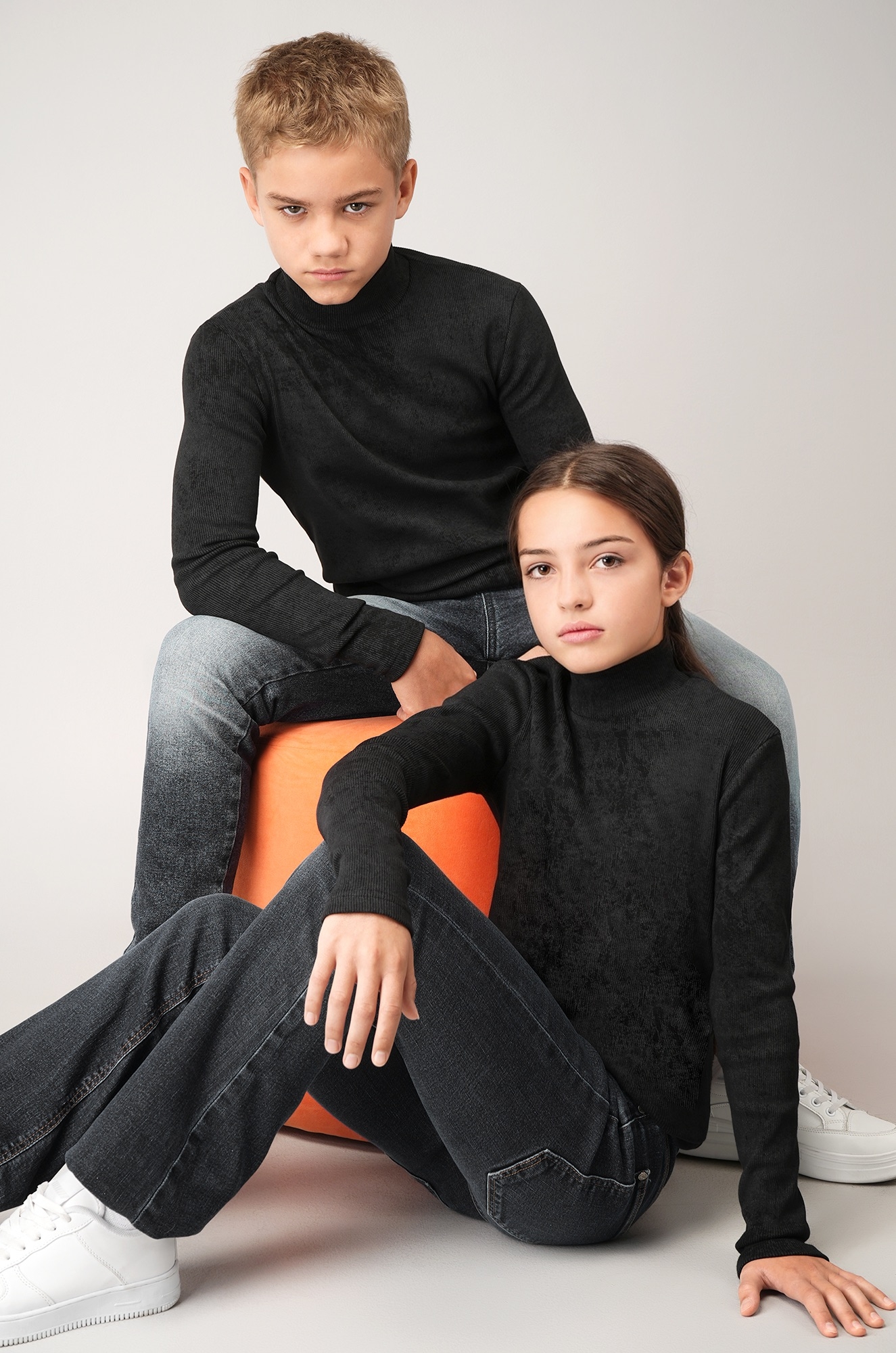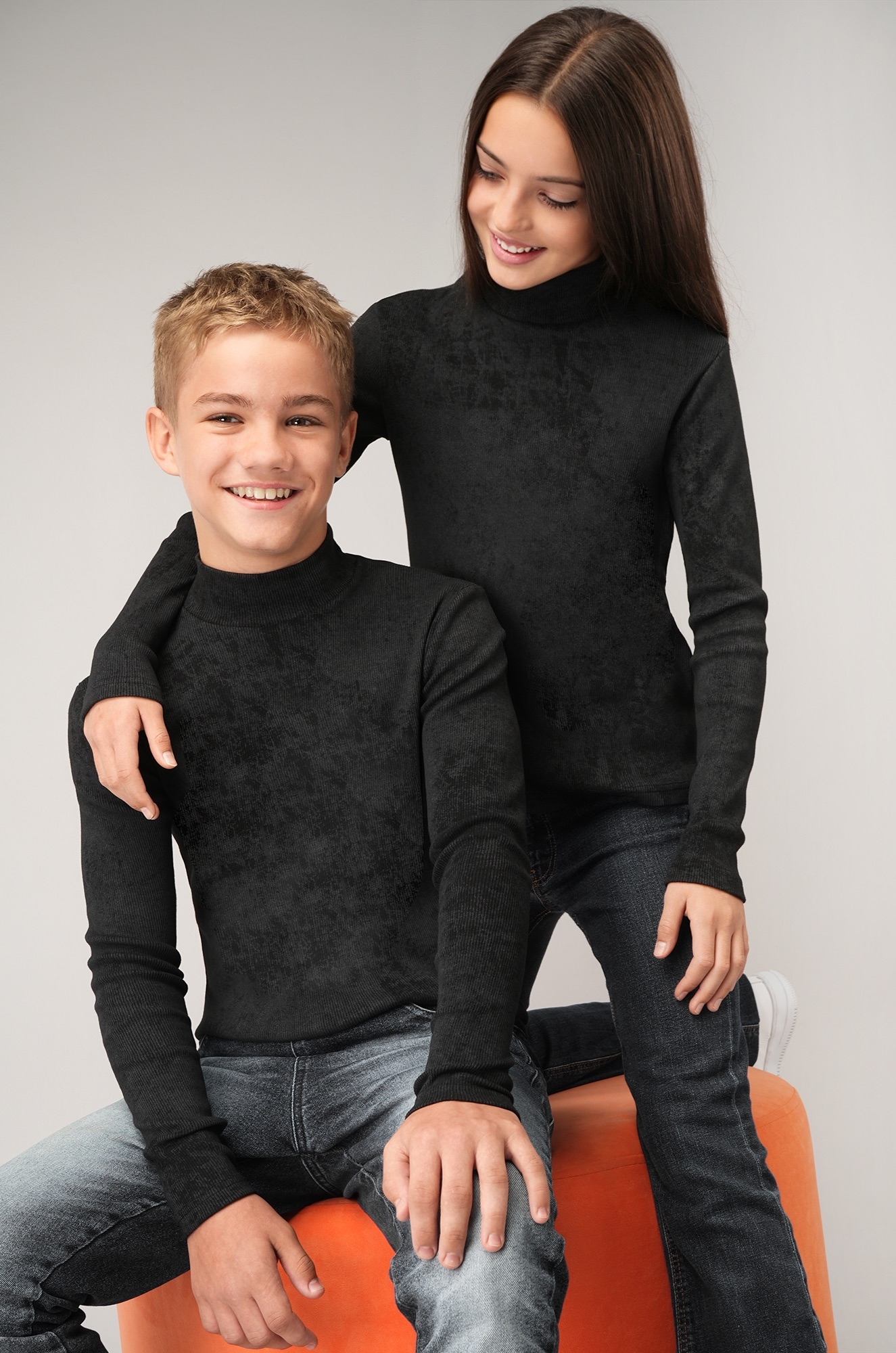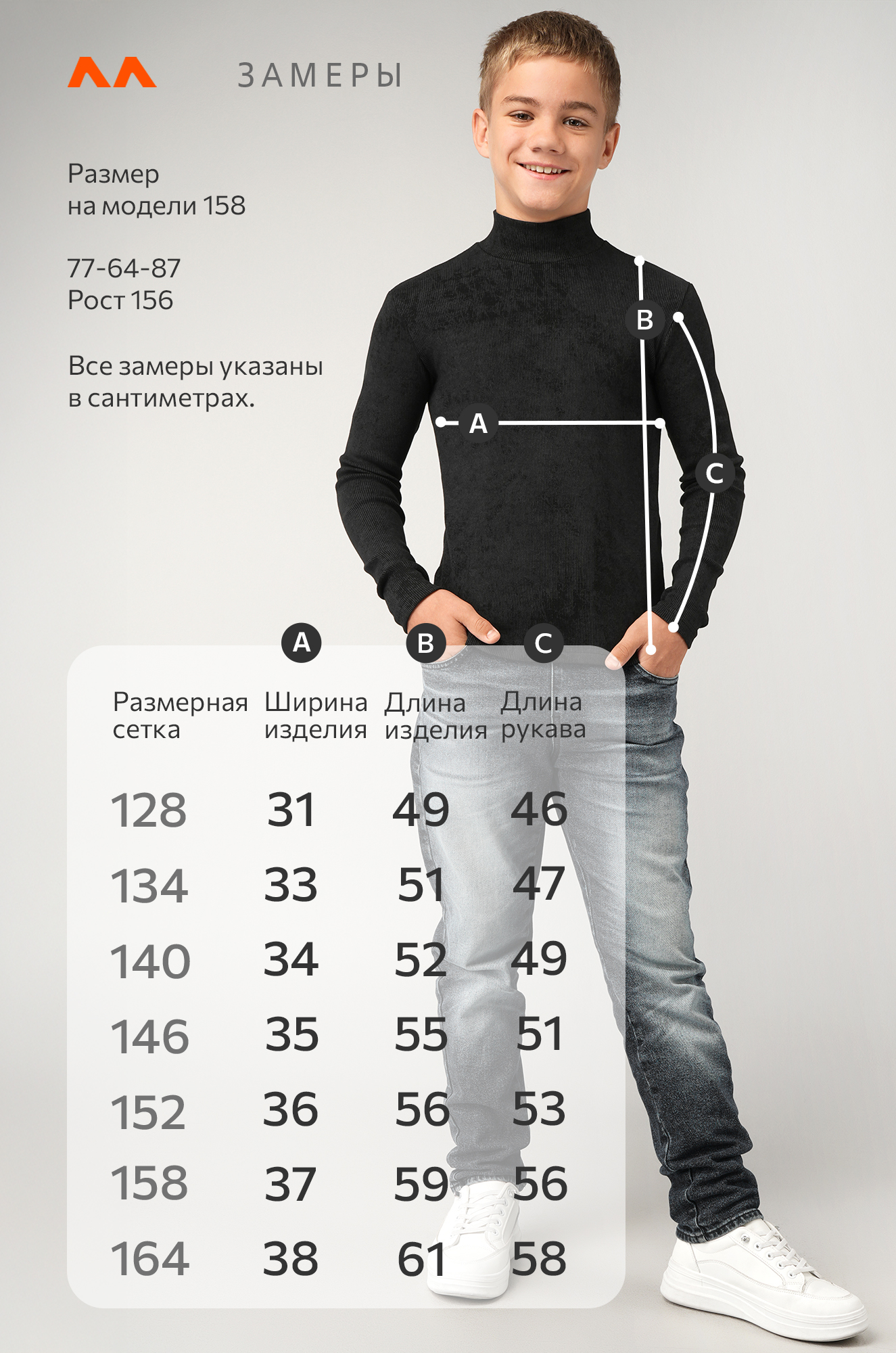 Школьная водолазка в рубчик для детей и подростков выполнена из хлопкового трикотажа лапша. Водолазка с винтажным вареным эффектом подойдет мальчикам и девочкам.