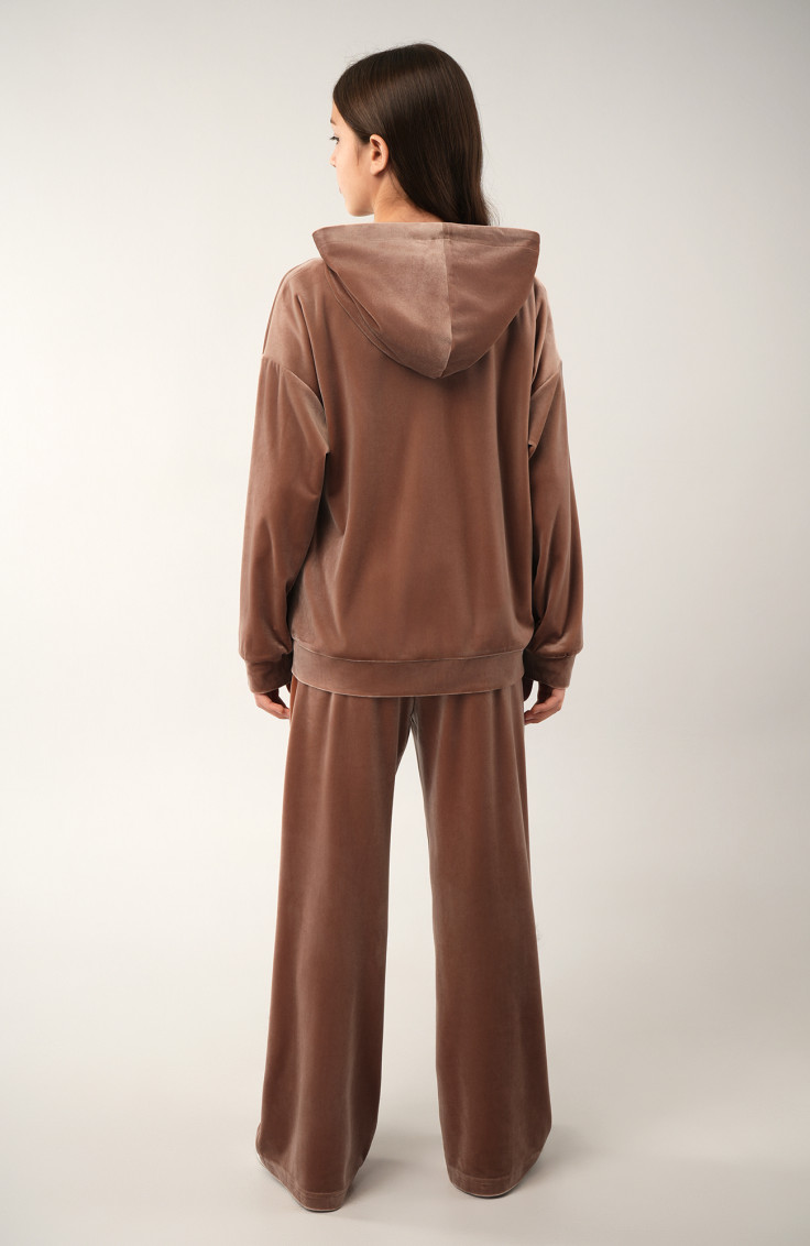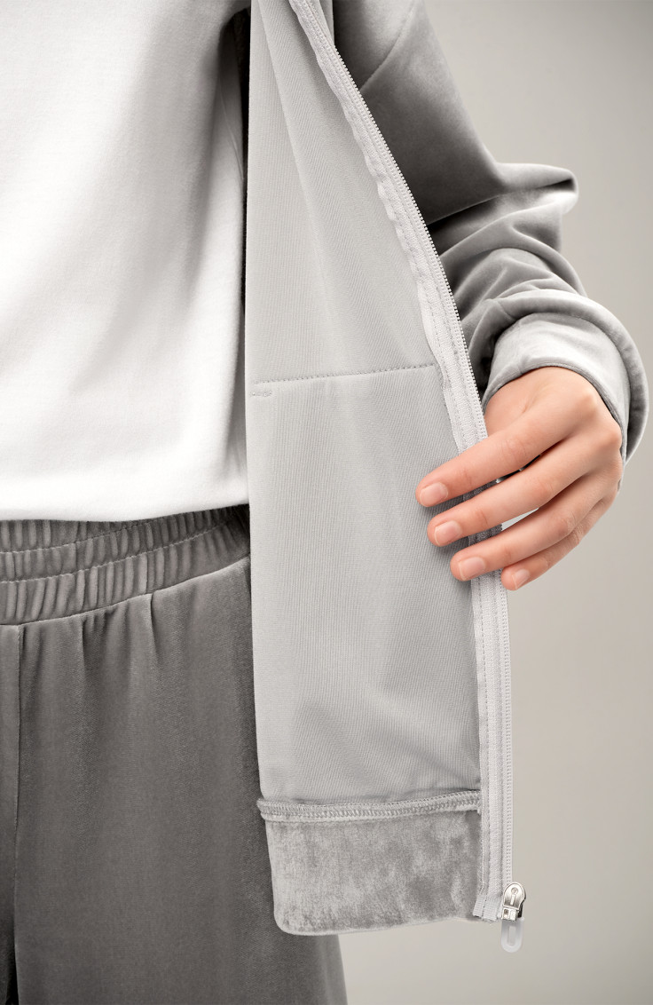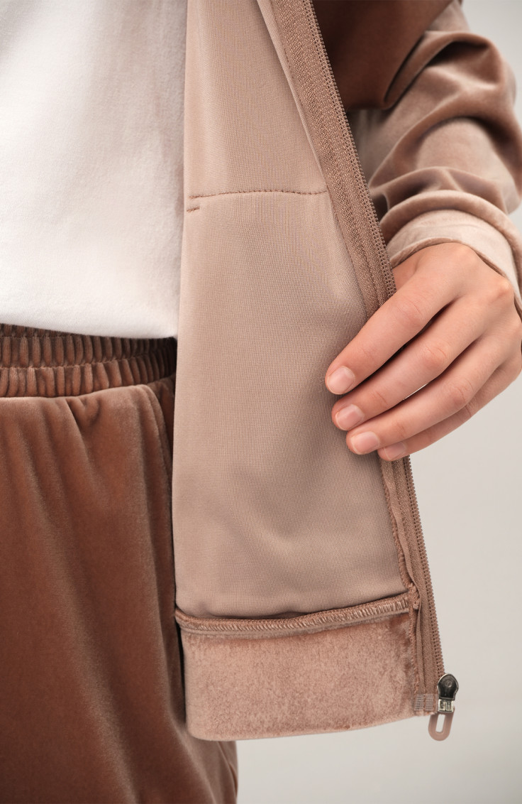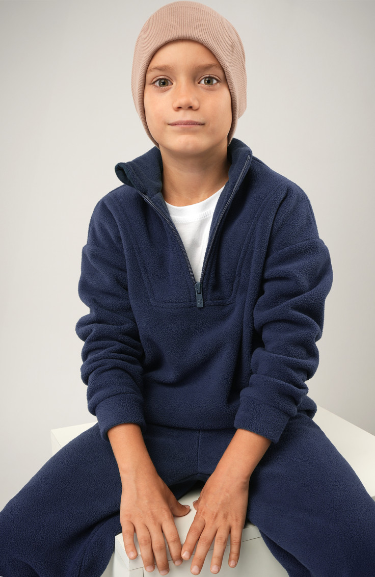 Отличный выбор для активных занятий и прогулок в прохладное время года. Начес отлично сохраняет тепло и не пропускает холодный воздух. Толстовка с застежкой на молнию, глубокий капюшон, удобный карман-кенгуру, мягкие манжеты и светоотражающий принт делают костюм невероятно уютным и практичным.