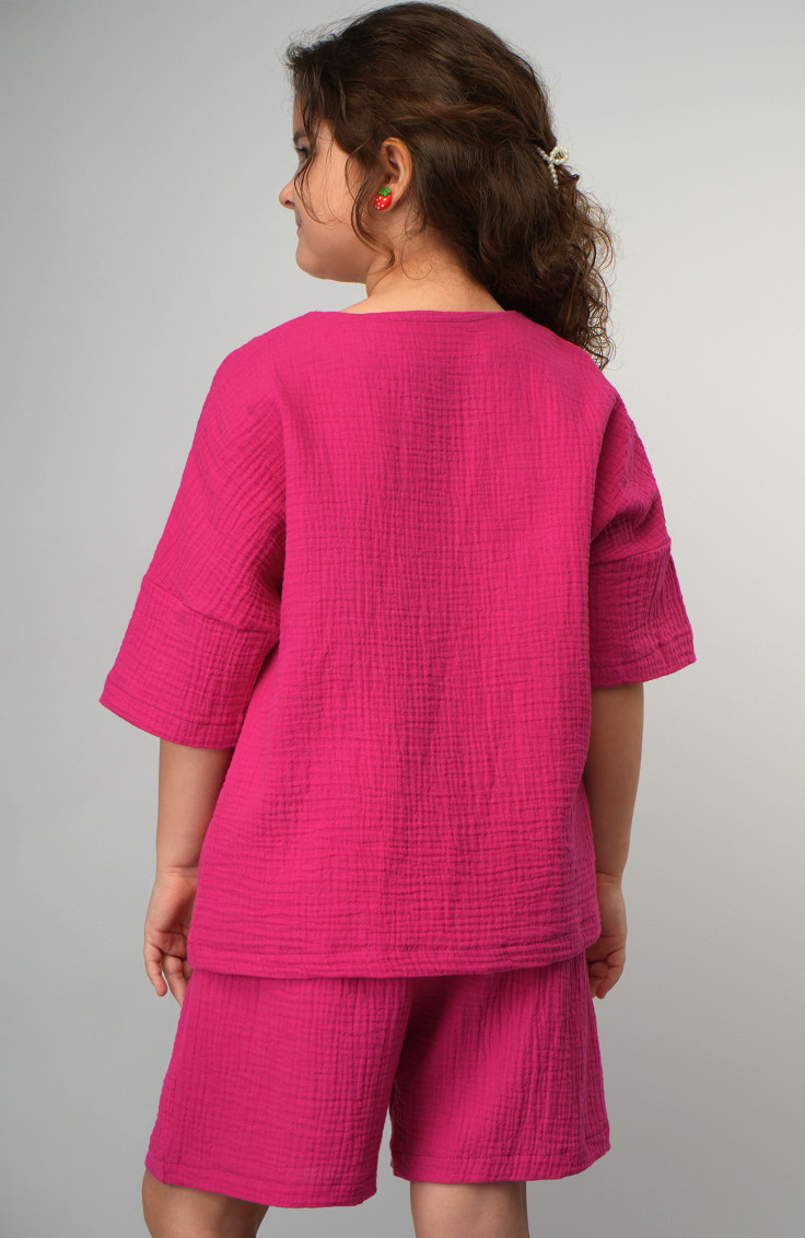 Идеальный выбор для теплых дней. Свободный крой дарит комфорт и свободу движений. Трикотаж из хлопка мягкий, комфортный и приятный к телу, легко пропускает воздух и позволяет коже дышать.