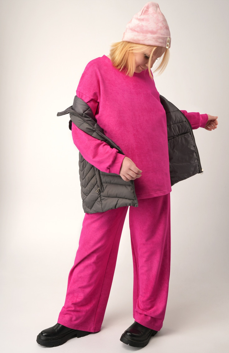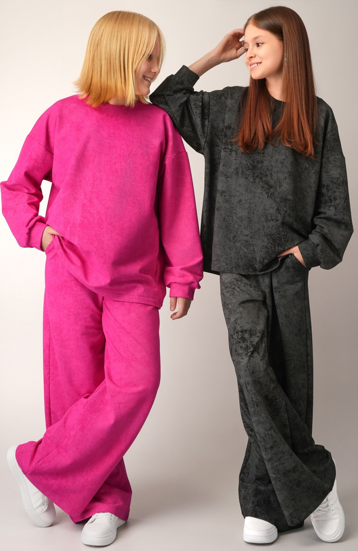 Легкие и удобные костюмы прекрасно подходят для прогулок и отдыха. Хлопковый футер дарит комфорт в течение всего дня.