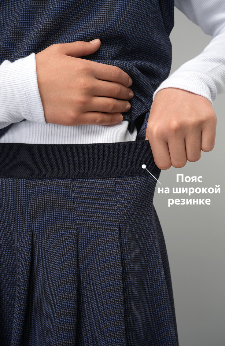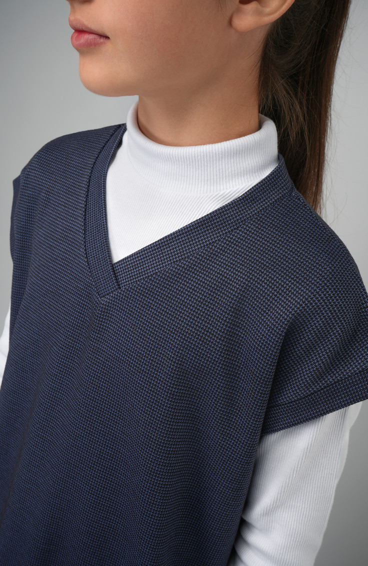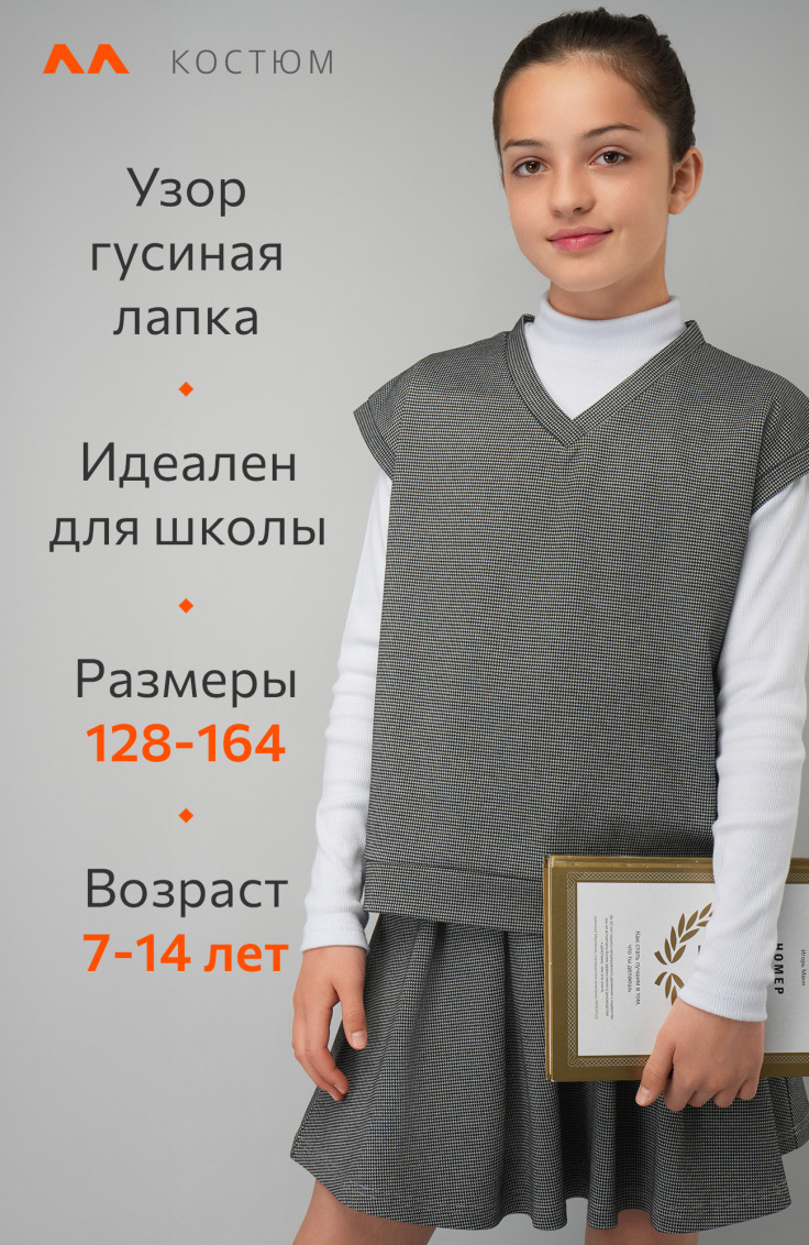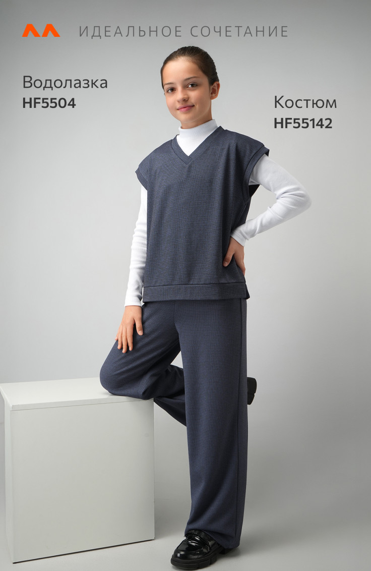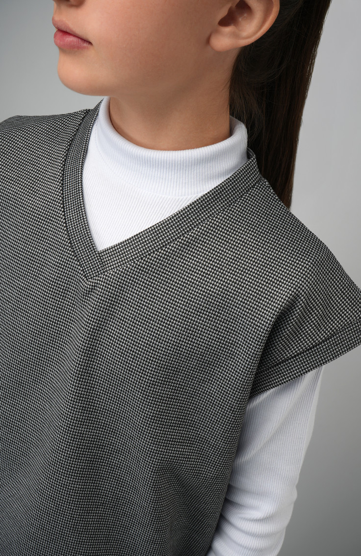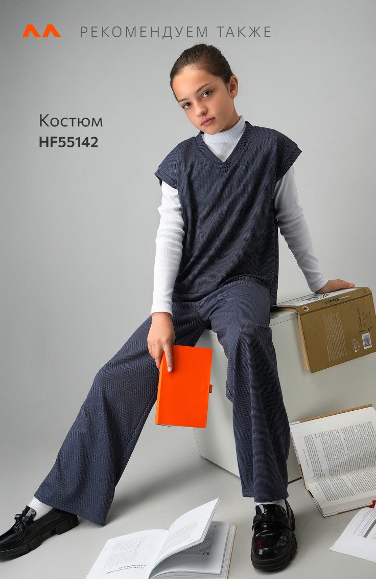 Элегантный костюм-двойка состоит из двух базовых моделей: прямых брюк и оригинального приталенного жилета. Демисезонные костюмы идеальны для занятий в школе.