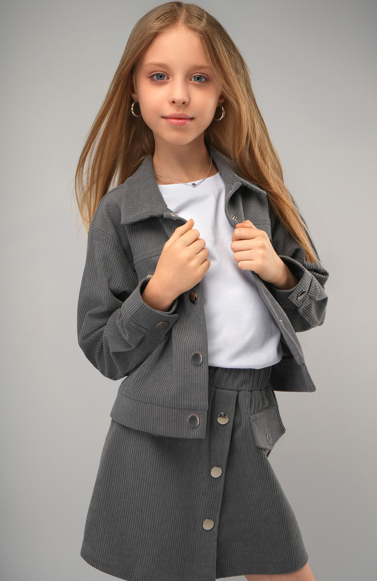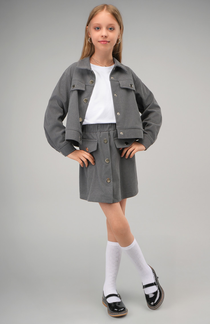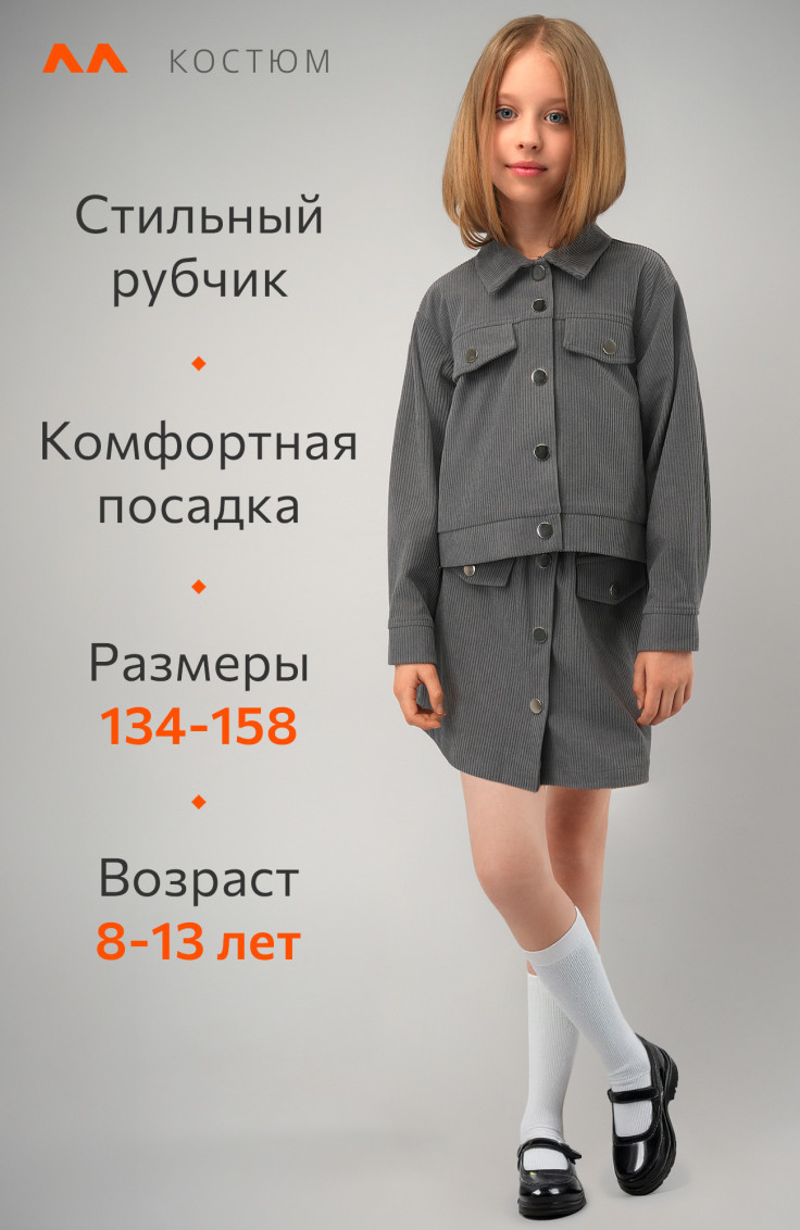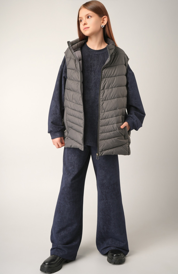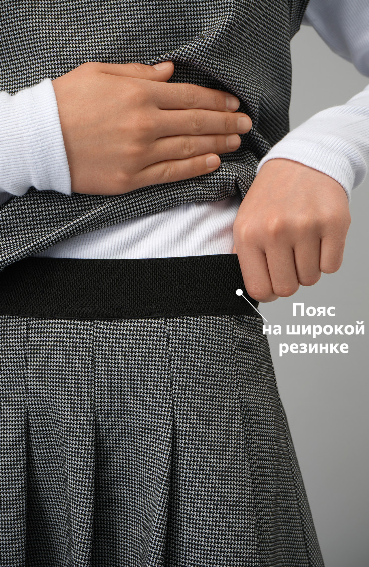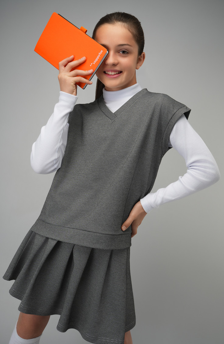 Элегантный костюм-двойка состоит из двух базовых моделей: прямых брюк и оригинального приталенного жилета. Демисезонные костюмы идеальны для занятий в школе.