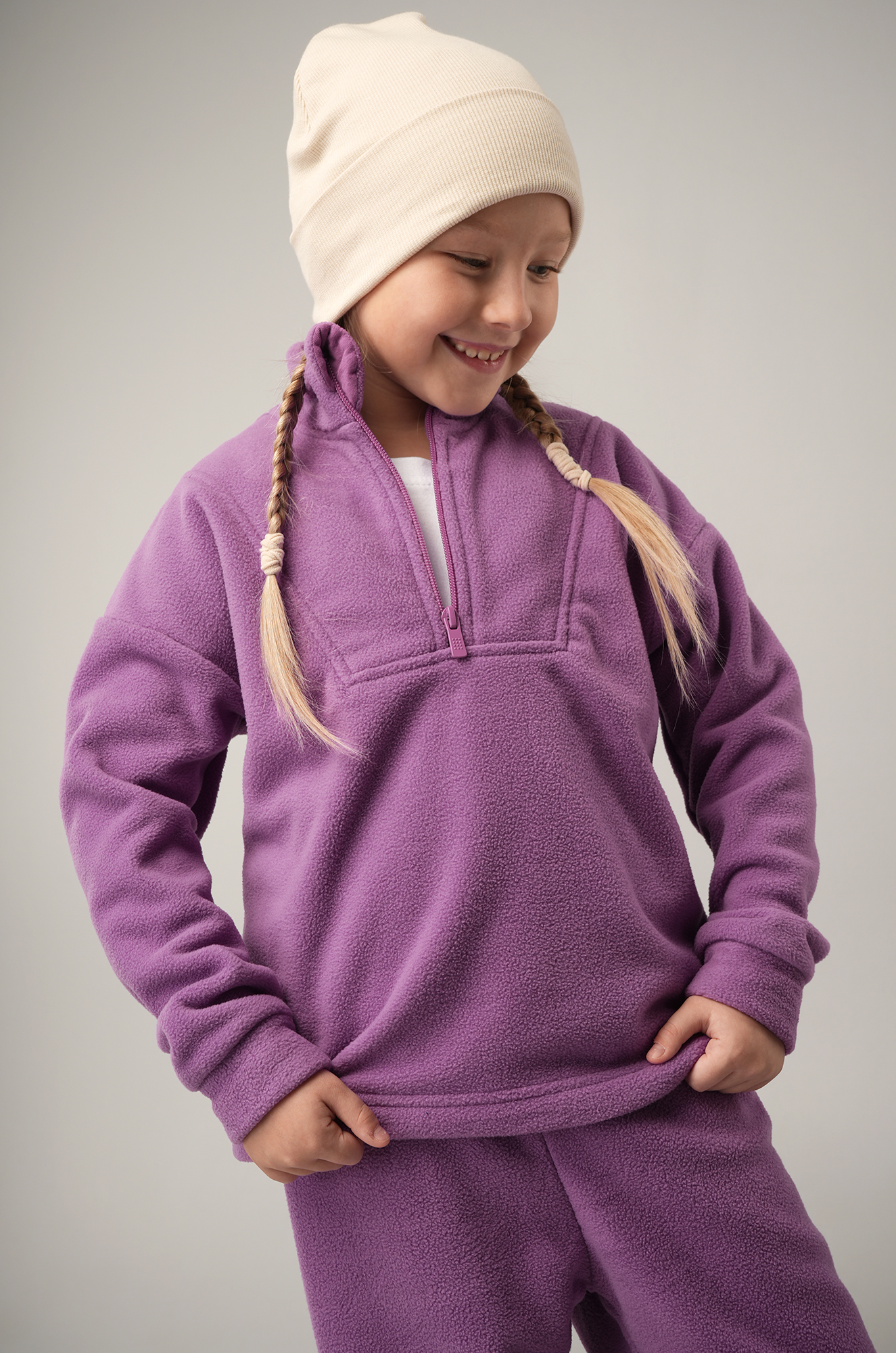 Флисовый костюм — базовый выбор, который дарит уверенность родителям и комфорт малышам. Детский костюм создан для того, чтобы девочке было тепло и удобно каждый день. Сиреневый акцент для зимней стужи!