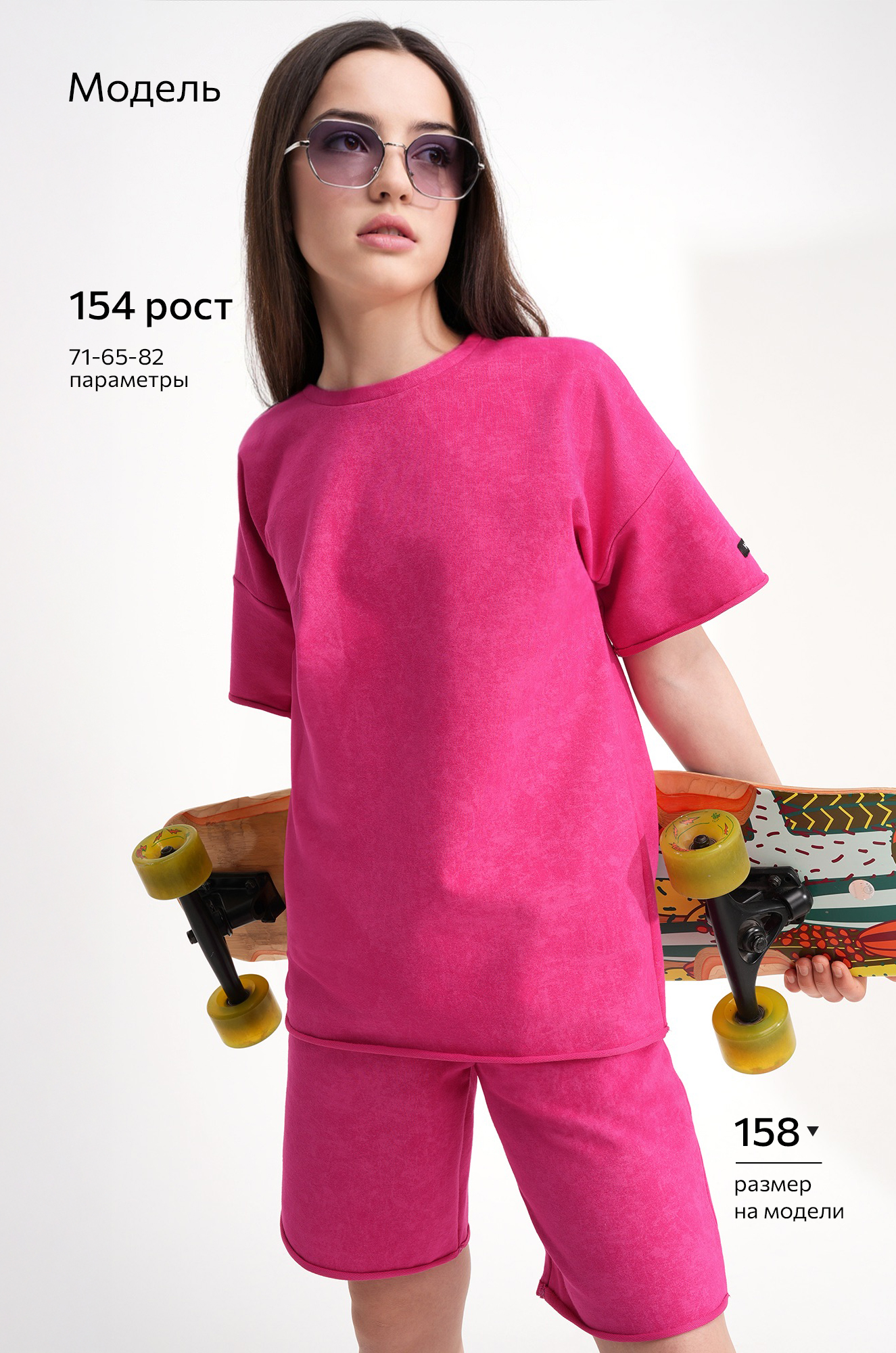Летний комплект двойка розового цвета станет любимым в гардеробе юной красавицы! Трикотажный костюм для девочки и девочек подростков выглядит очень стильно: футболка свободного кроя оверсайз со спущенным плечом и круглым вырезом идеально сочетается с удобными шортами прямого кроя на мягкой резинке.