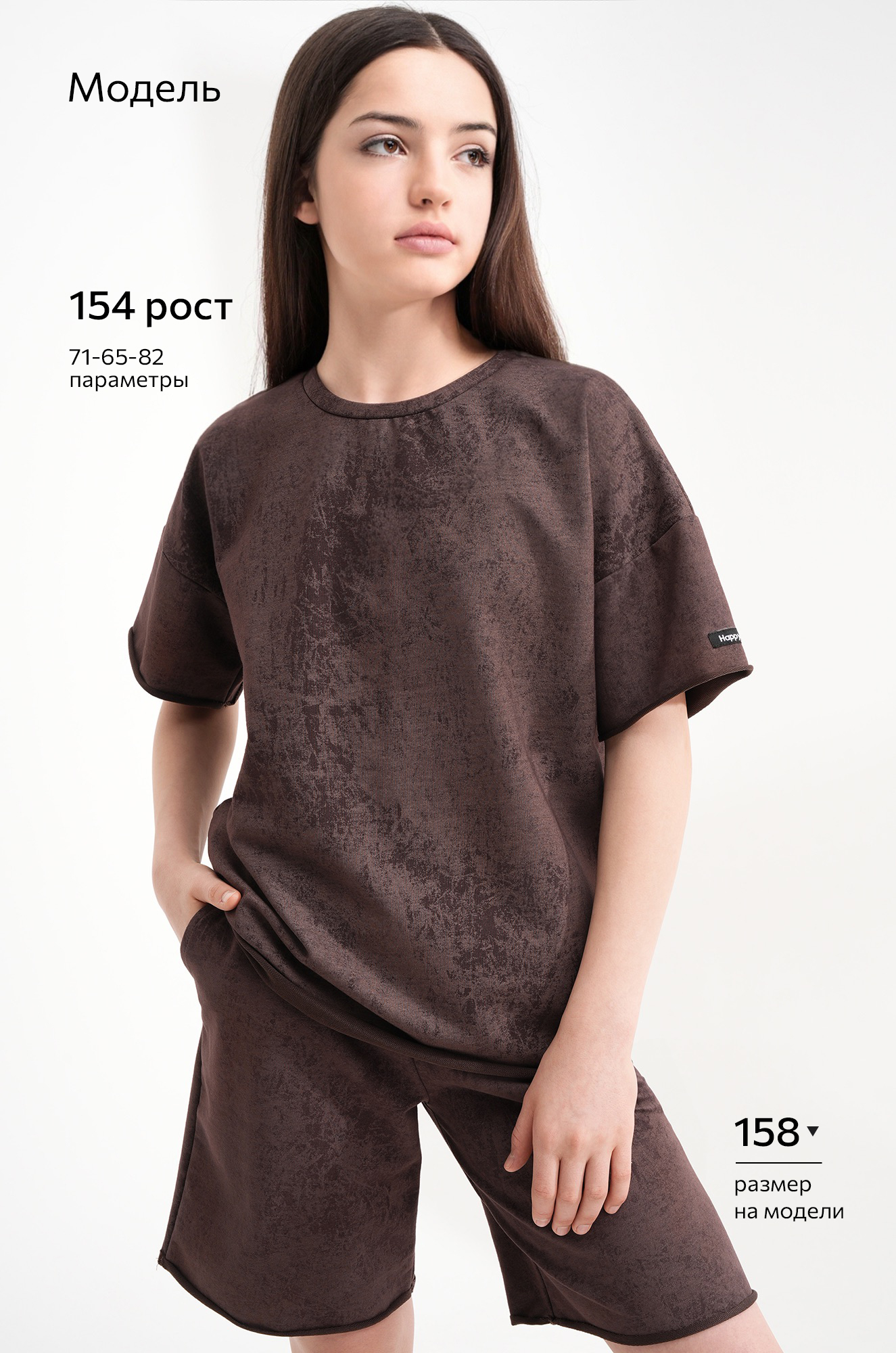 Коричневый подростковый костюм с шортами создан для активного лета, прогулок с друзьями, пляжа и домашнего отдыха, ведь в таком наряде всегда комфортно и выглядит он безупречно.