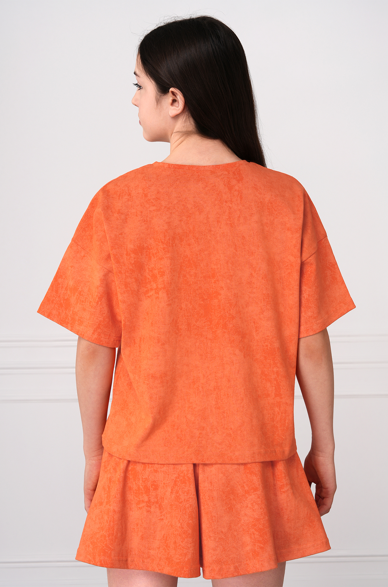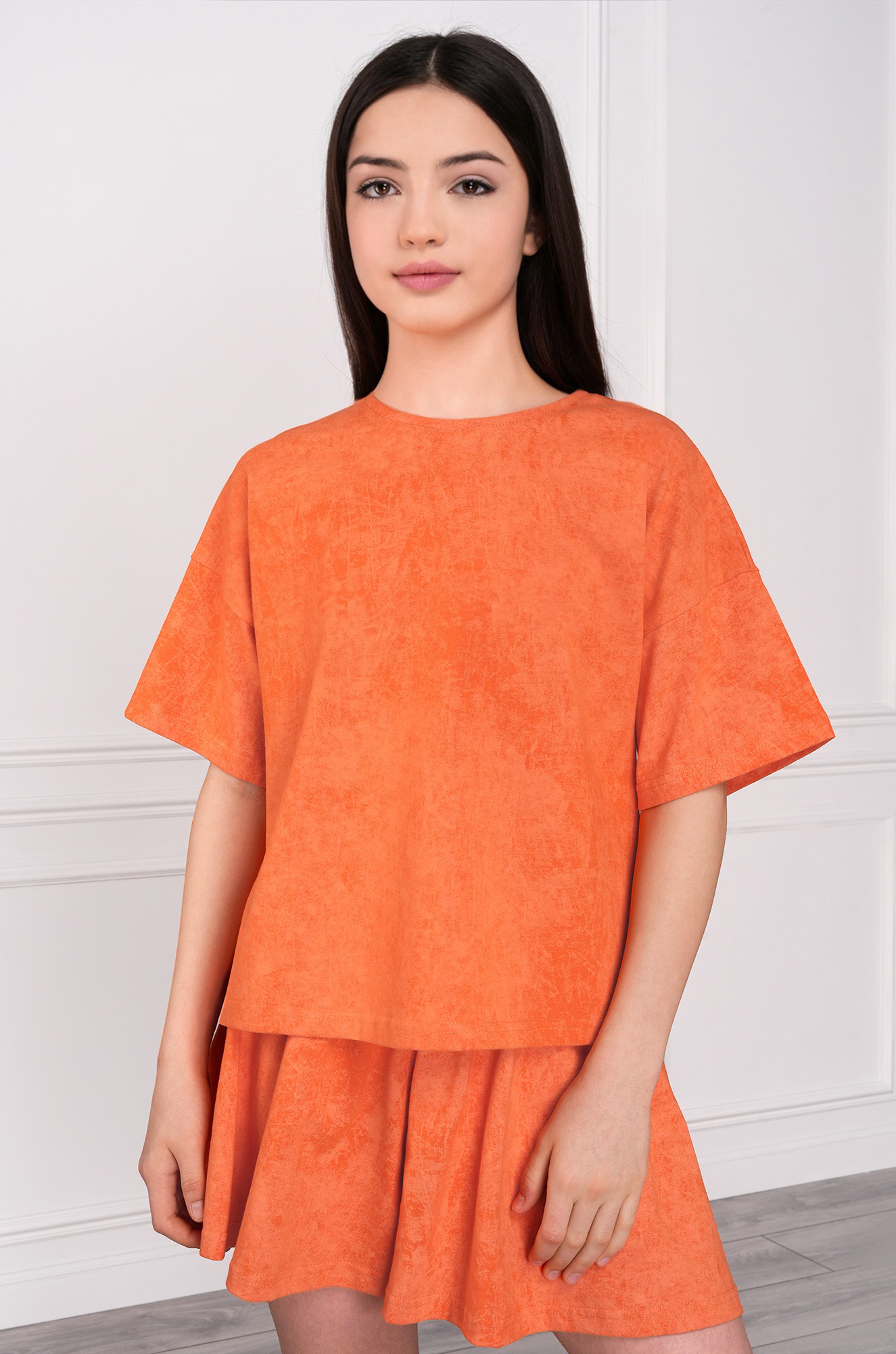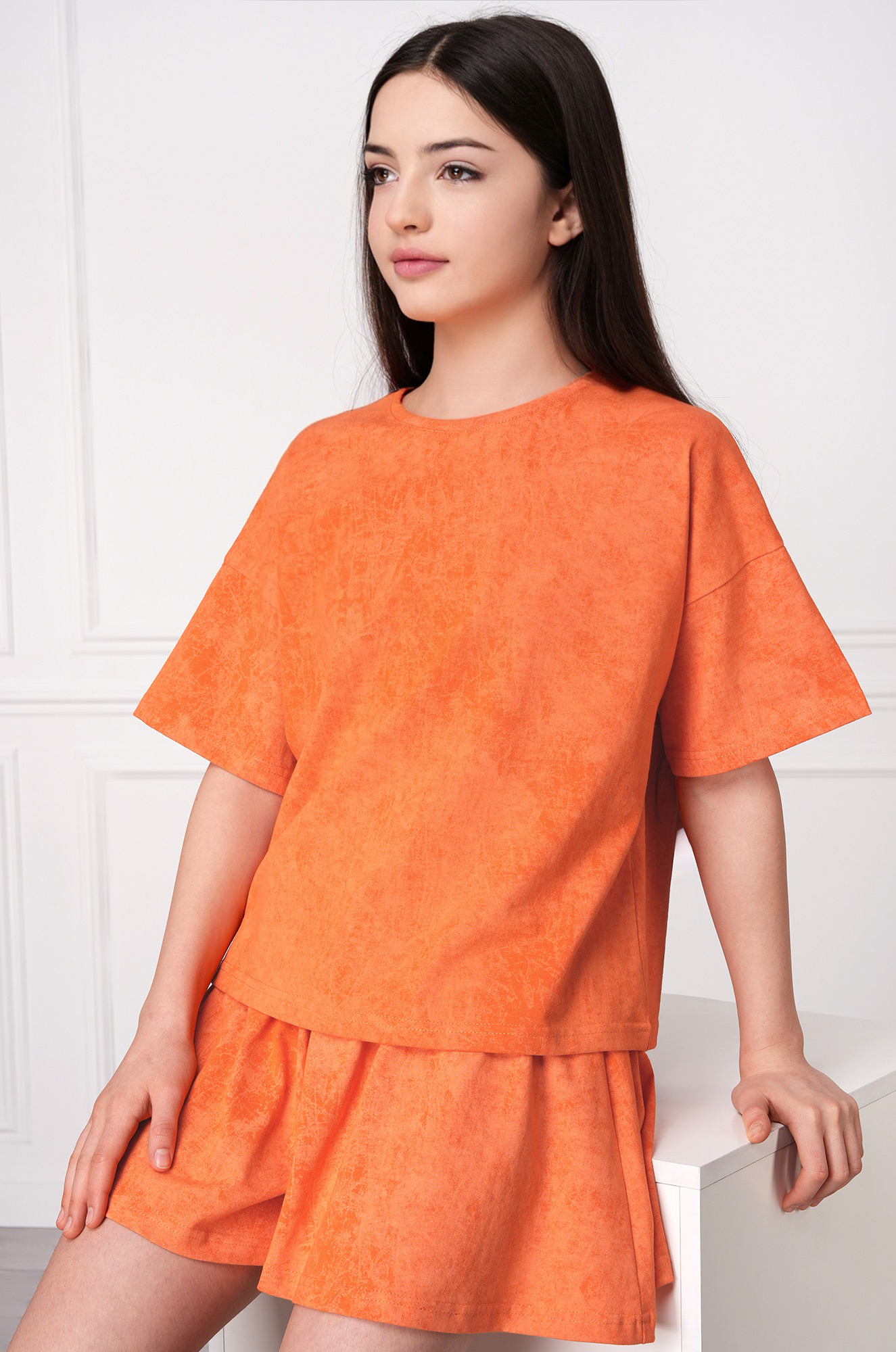 Детский летний костюм для девочки сочетает стиль, лёгкость и комфорт. Хлопковый костюм с юбкой-шортами дополнит повседневные образы. Свободный крой оверсайз и эффект варёнки делают комплект актуальным и трендовым.