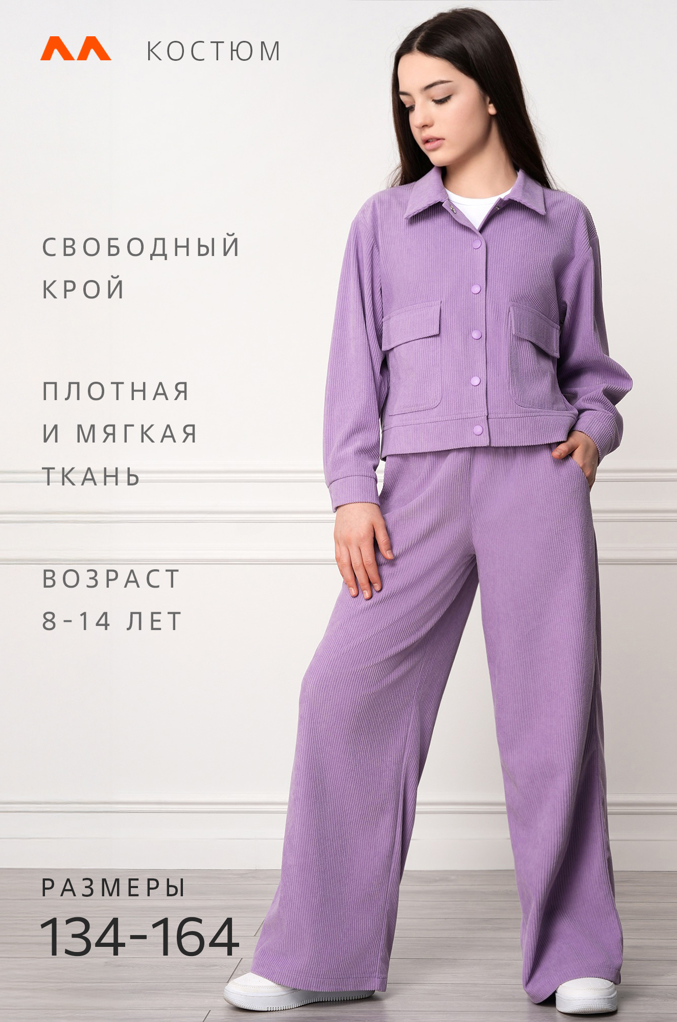 Вельветовый костюм с брюками для девочки — прекрасное решение на весну. Мягкая бархатная фактура и свободный крой делают подростковый костюм любимым вариантом на каждый день.