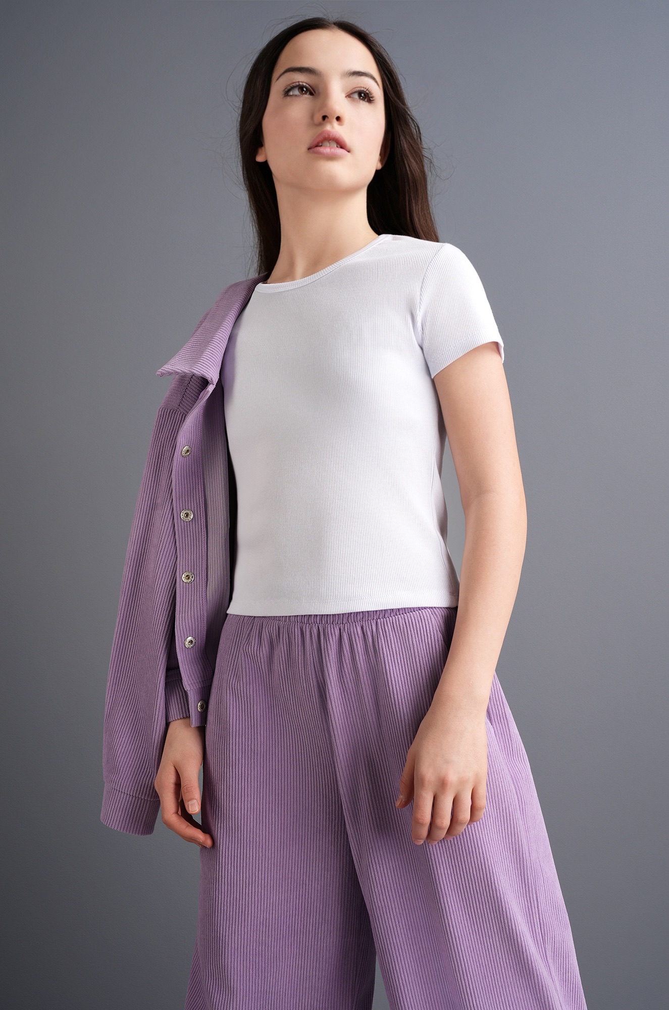 — ткань в мелкий рубчик выглядит стильно и аккуратно;