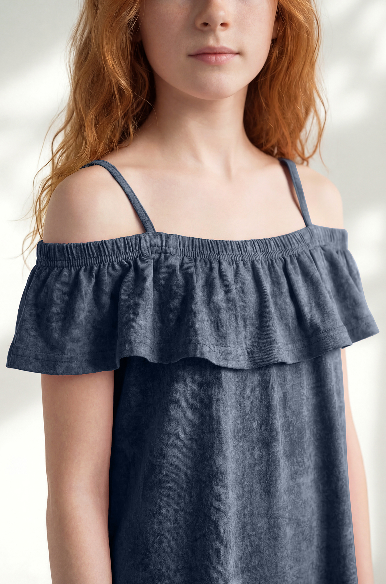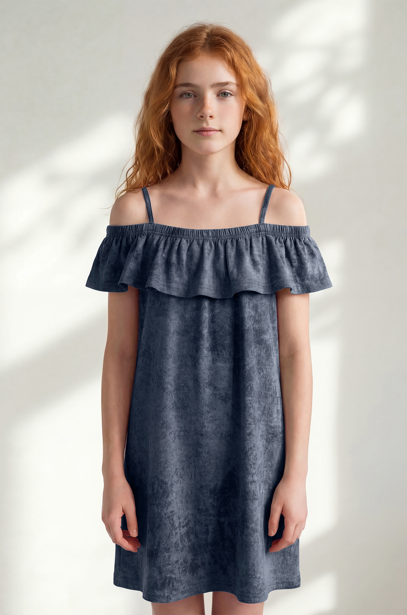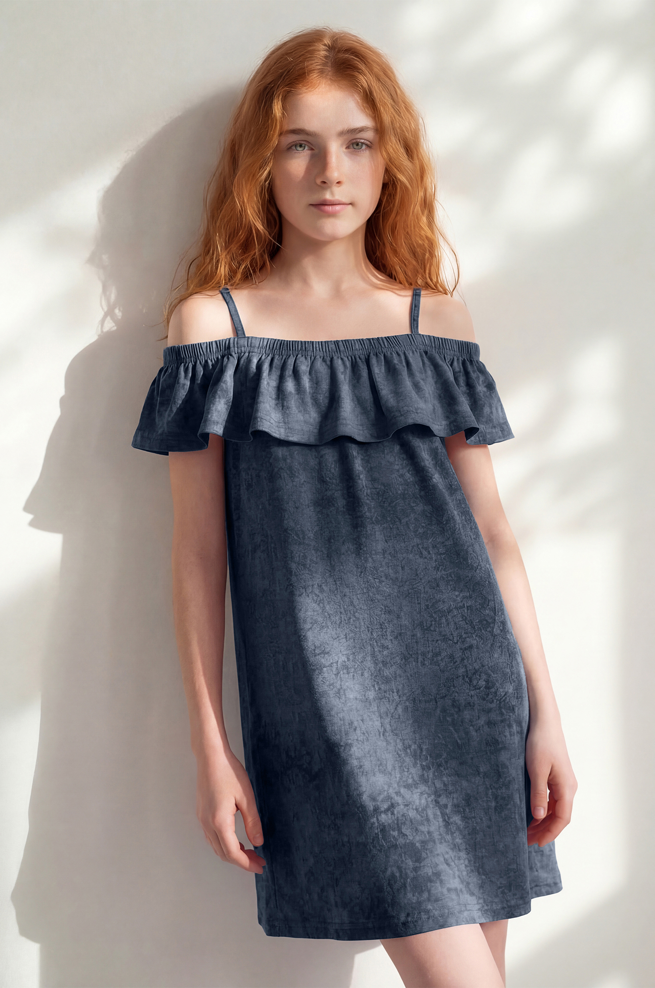 Летний синий сарафан для девочки и девочек-подростков, в который сразу хочется влюбиться! Легкое детское платьице с воланом и стильным эффектом варёнка создано специально для яркого солнечного настроения.