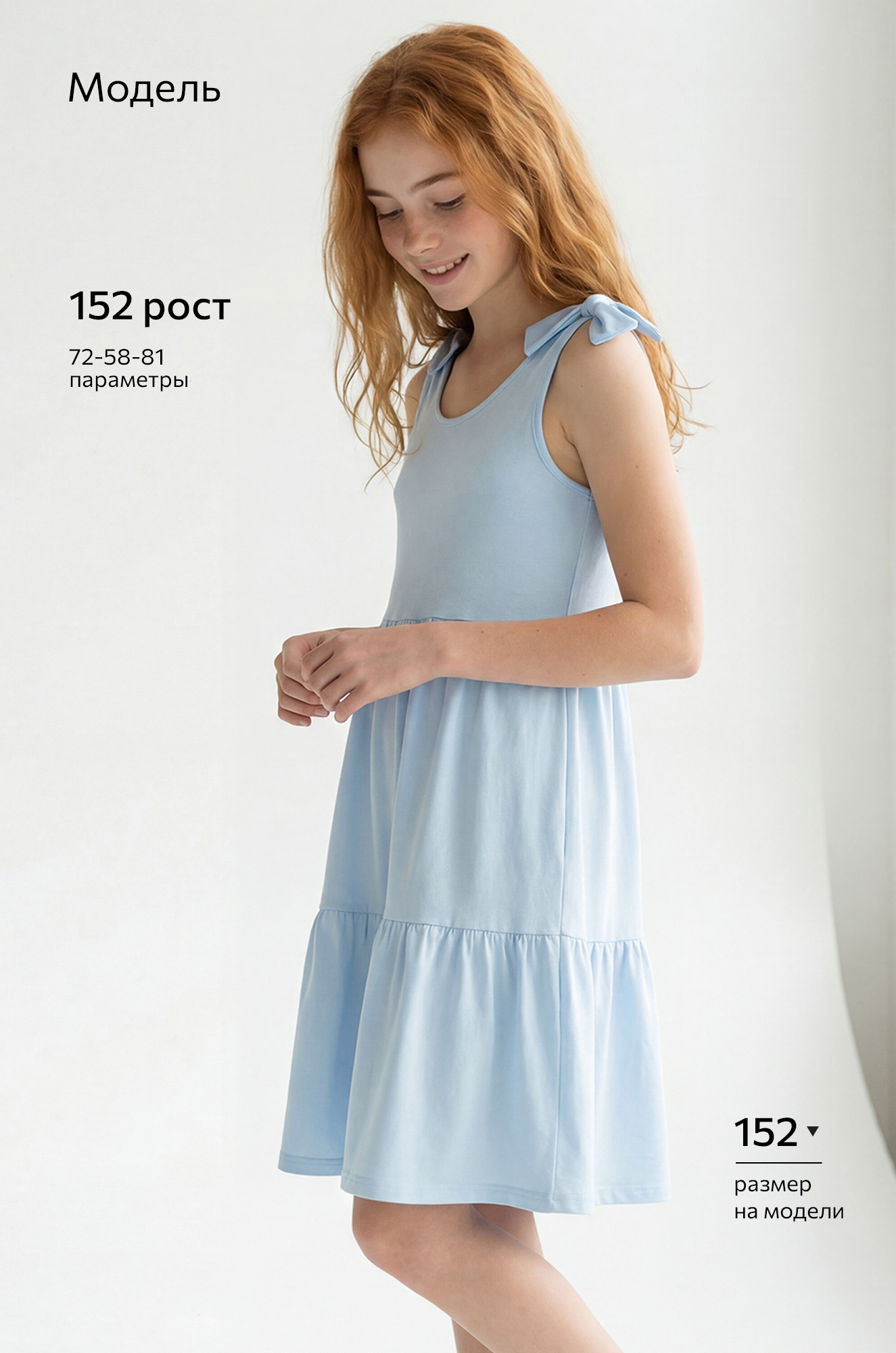 Однотонный голубой сарафан из трикотажа подойдет для похода в садик, поездок, путешествий и активного отдыха на природе. Подростковое платье идеально для повседневных прогулок и встреч с друзьями.