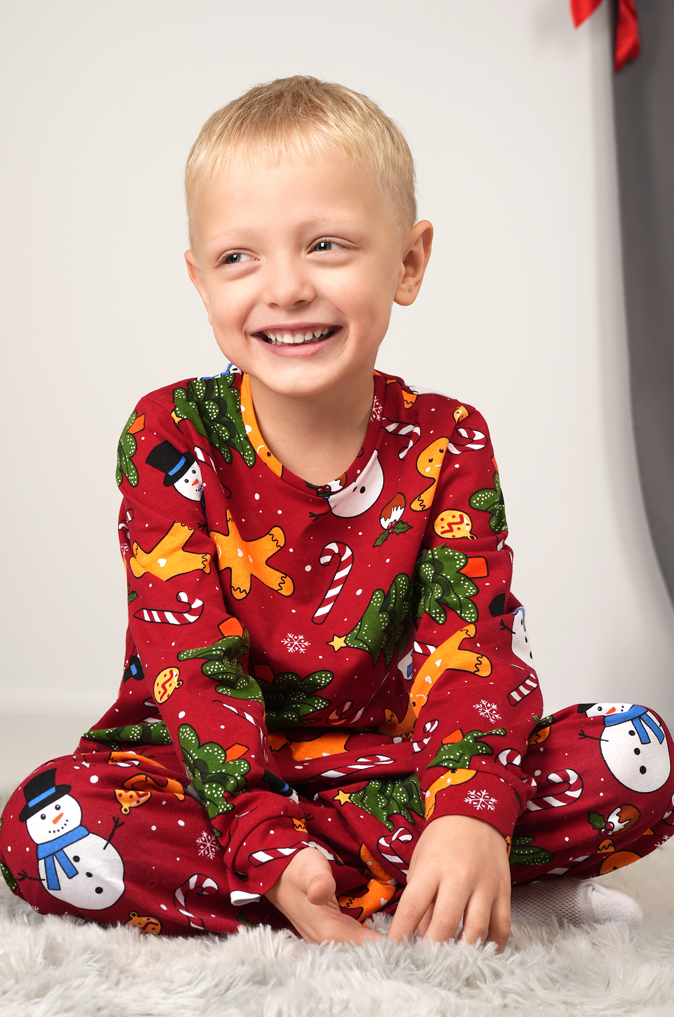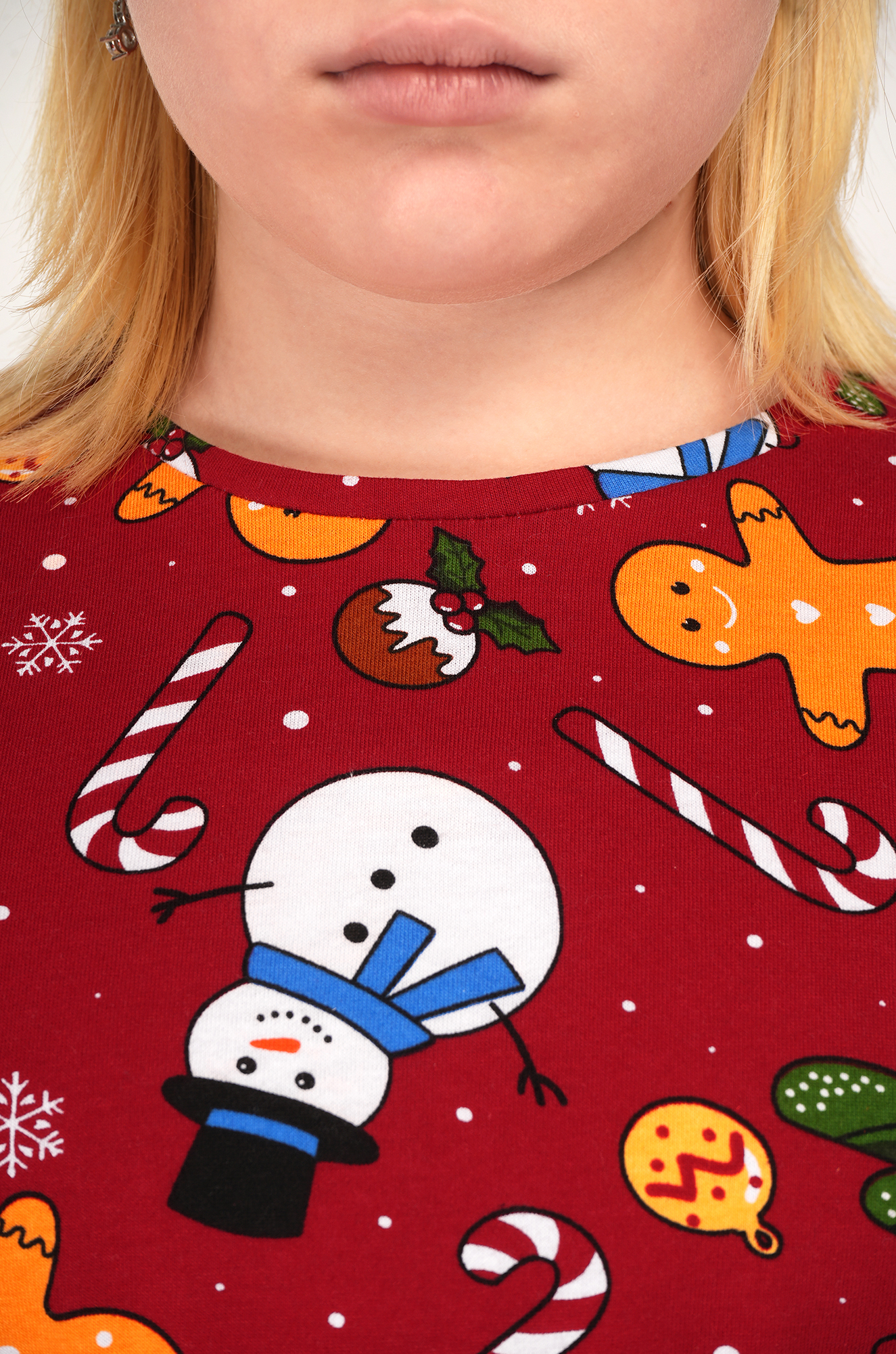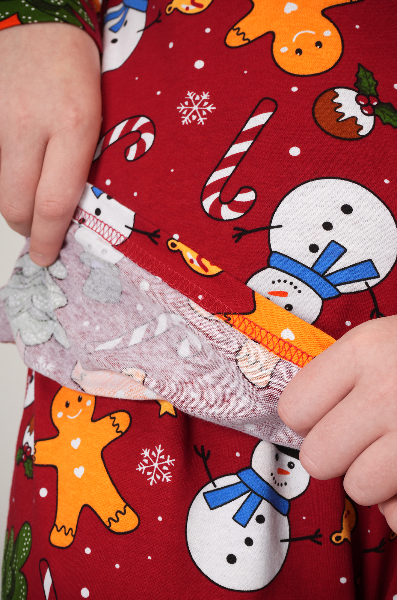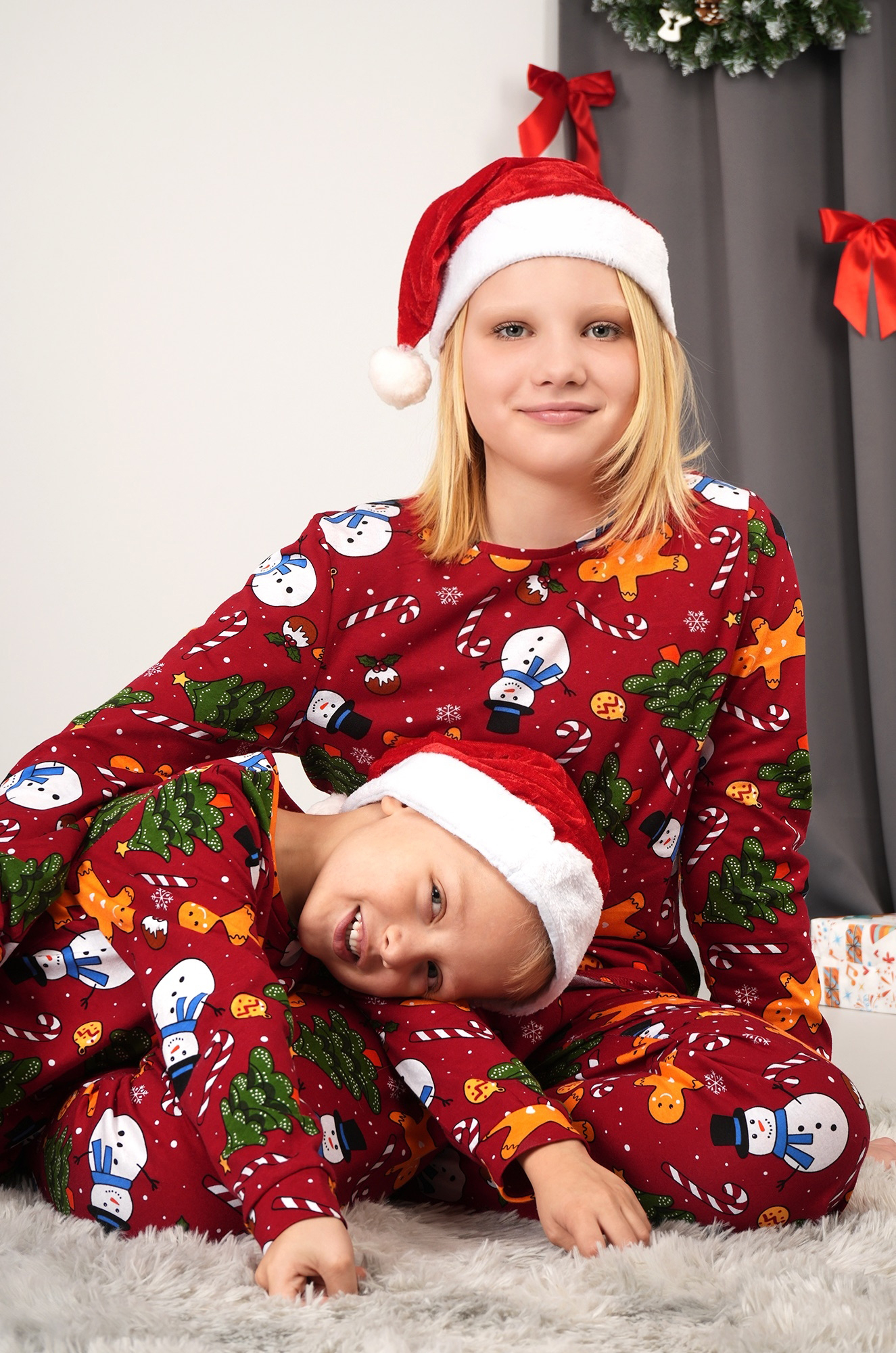Детская новогодняя пижама с брюками выполнена из натурального 100% хлопка. Яркий красный цвет и принт Снеговики создают атмосферу праздника и поднимают настроение, а мягкий трикотаж дарит комфорт. Домашний комплект двойка для мальчиков и девочек станет чудесным подарком на Новый год или Рождество.