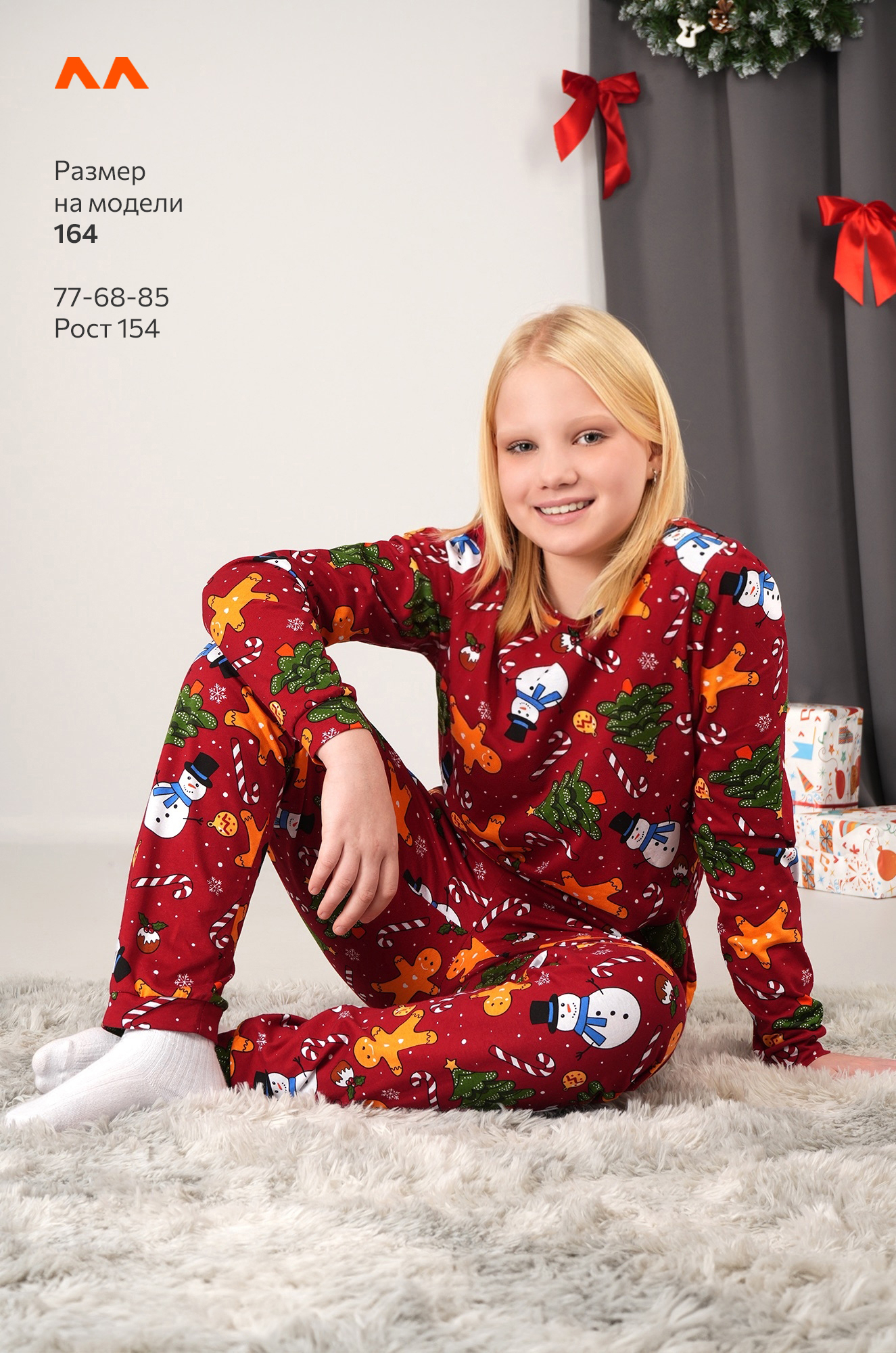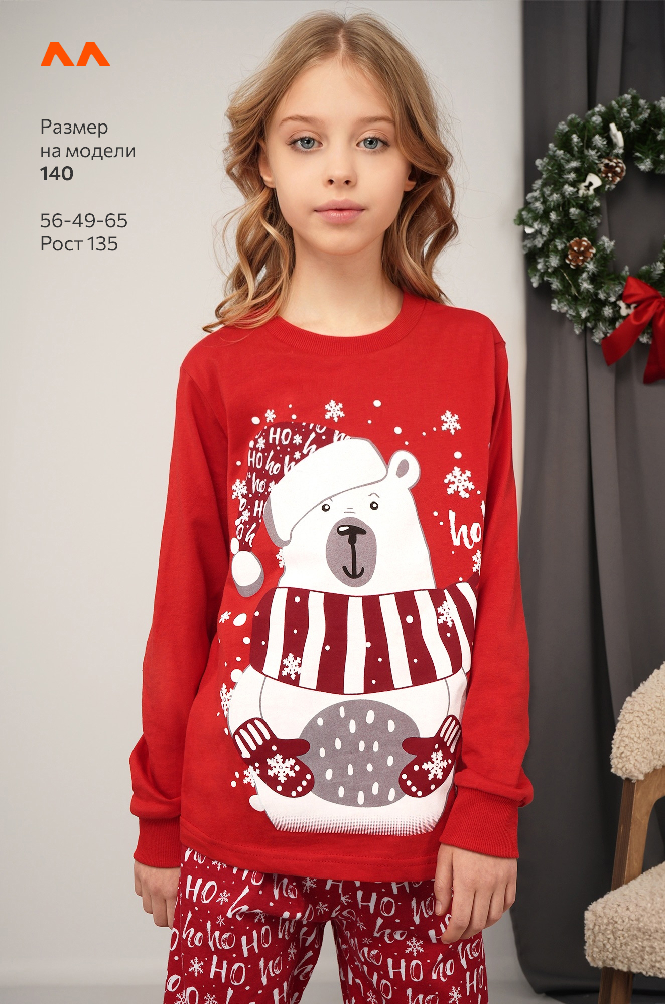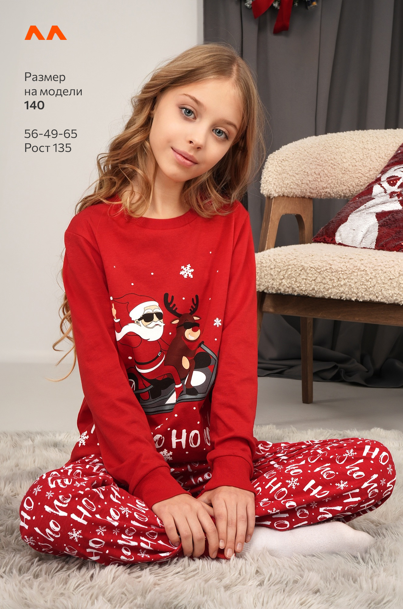 В набор входит лонгслив и штаны, которые идеально подойдут для сна и отдыха дома. Хлопковая пижамка подарит уют ребенку и станет отличным вариантом для рождественской фотосессии в стиле фэмили лук (family look).