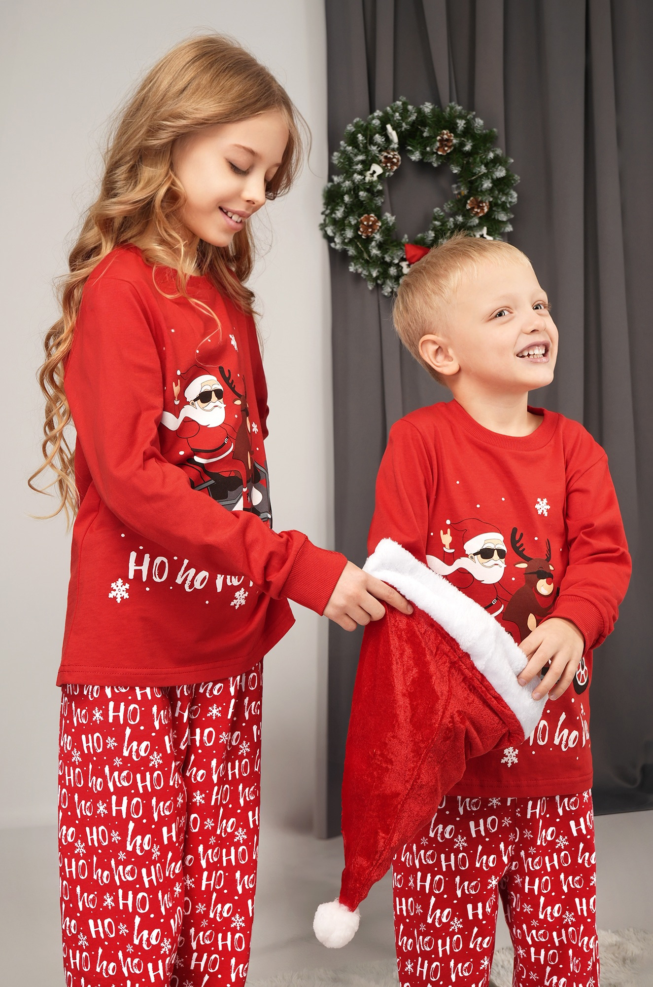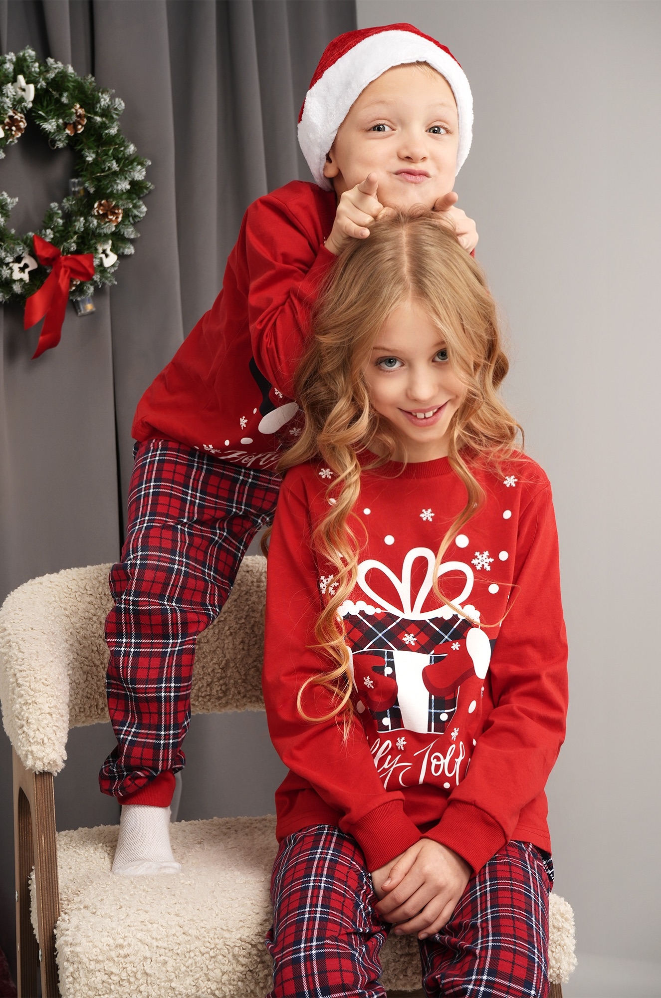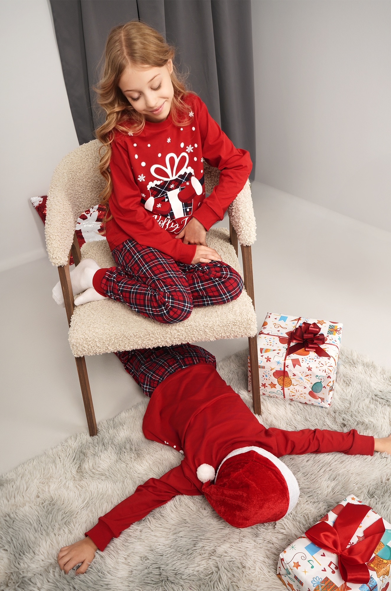 В набор входит лонгслив и штаны, которые идеально подойдут для сна и отдыха дома. Хлопковая пижамка подарит уют ребенку и станет отличным вариантом для рождественской фотосессии в стиле фэмили лук (family look).