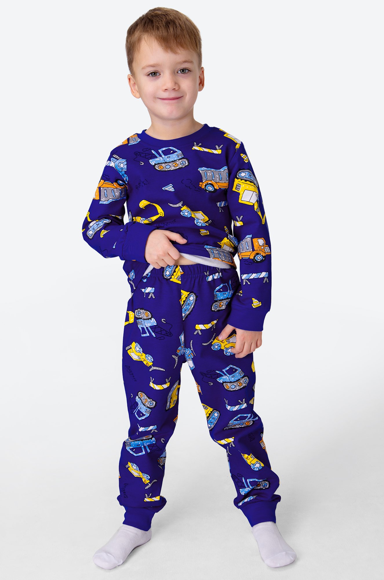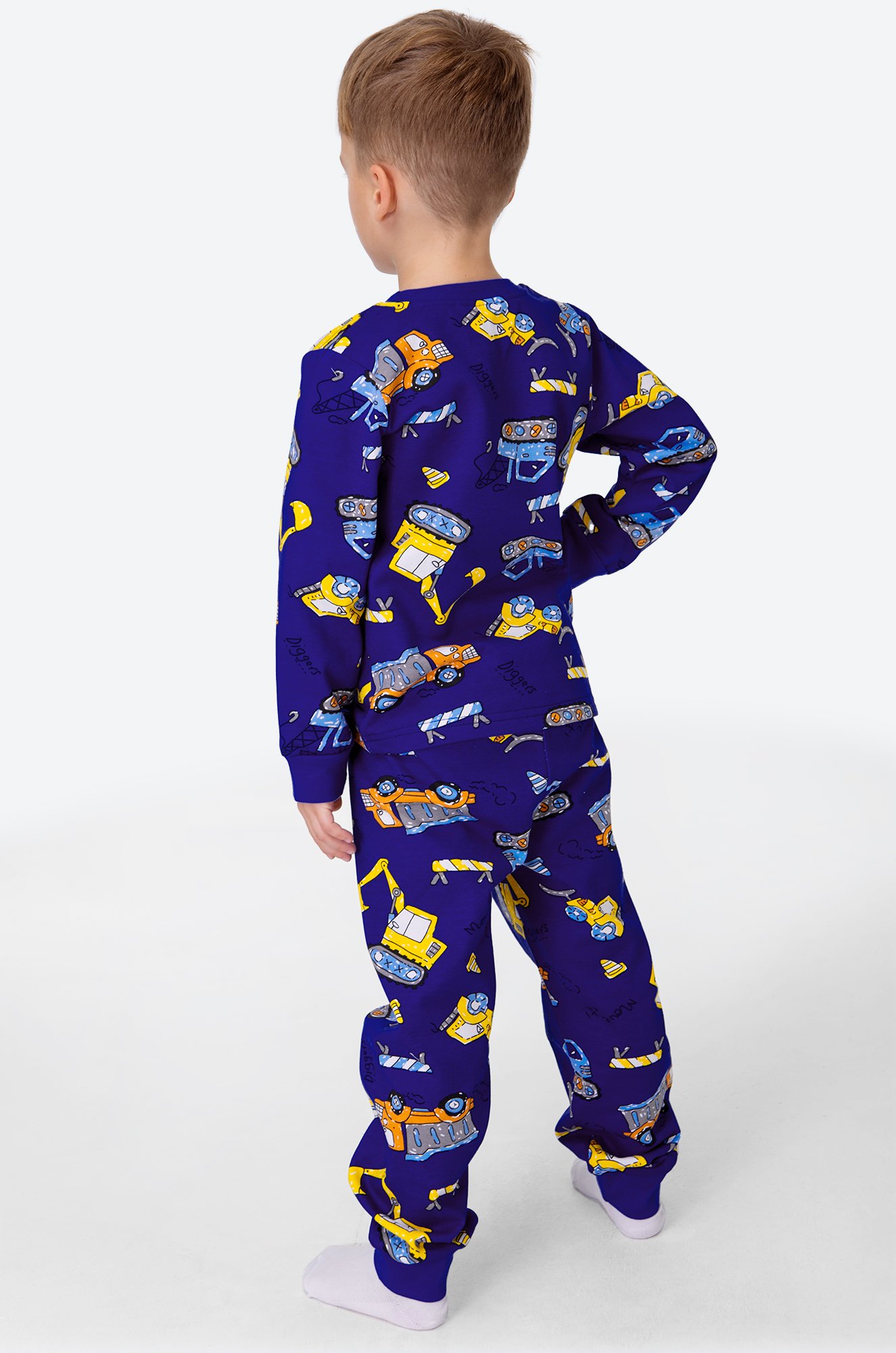 Теплая детская пижама с брюками для мальчиков выполнена из 100% хлопка. Пижама из футера с начесом станет любимым атрибутом отдыха благодаря свободному крою и насыщенному синему цвету. Прикольный принт Машины поднимает настроение и создает уютную атмосферу.