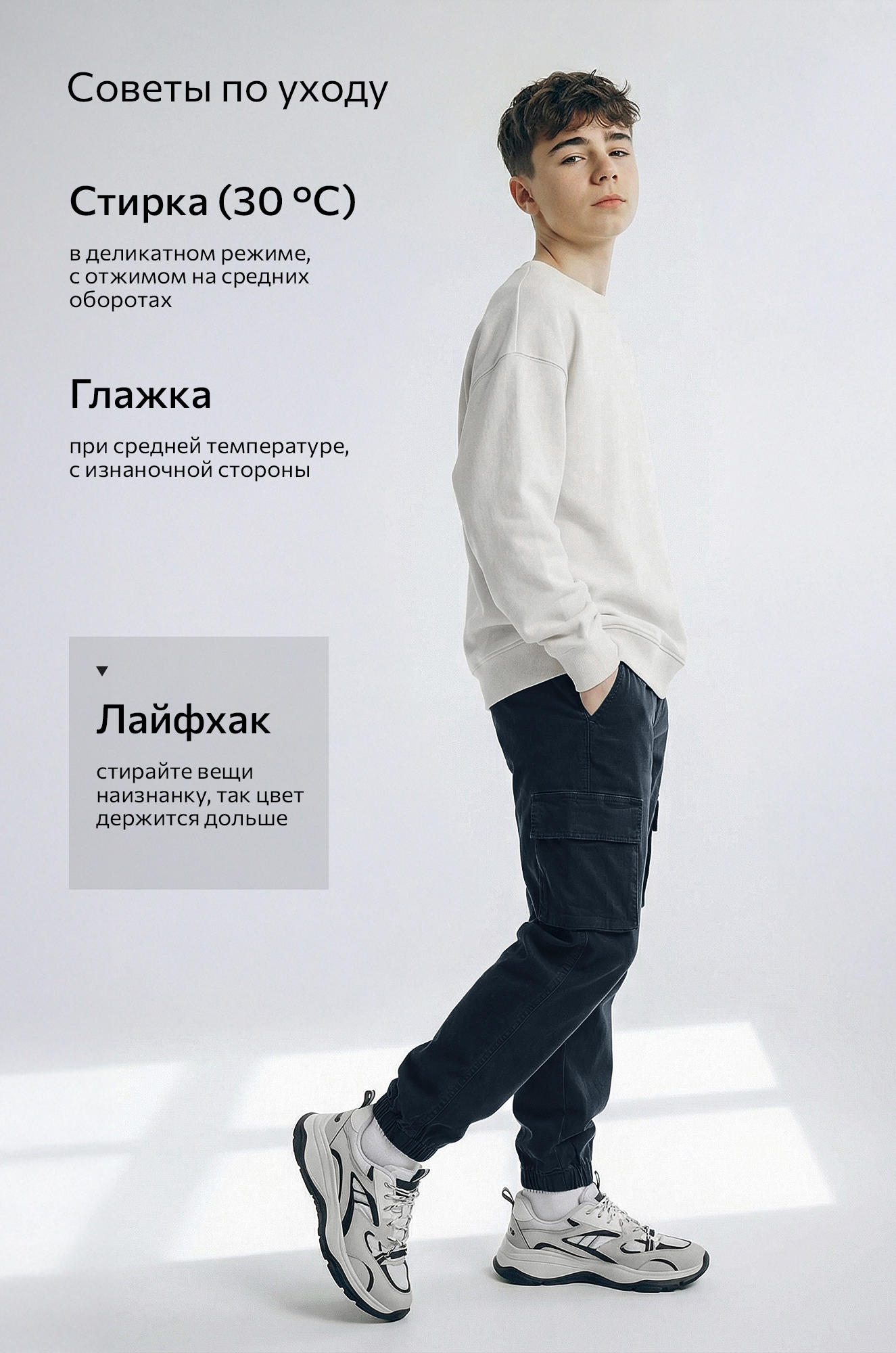 Хлопковые брюки приятны к телу. Детские штаны из хлопка не боятся стирок, небольшое добавление эластана позволяет надолго сохранять первоначальный вид.