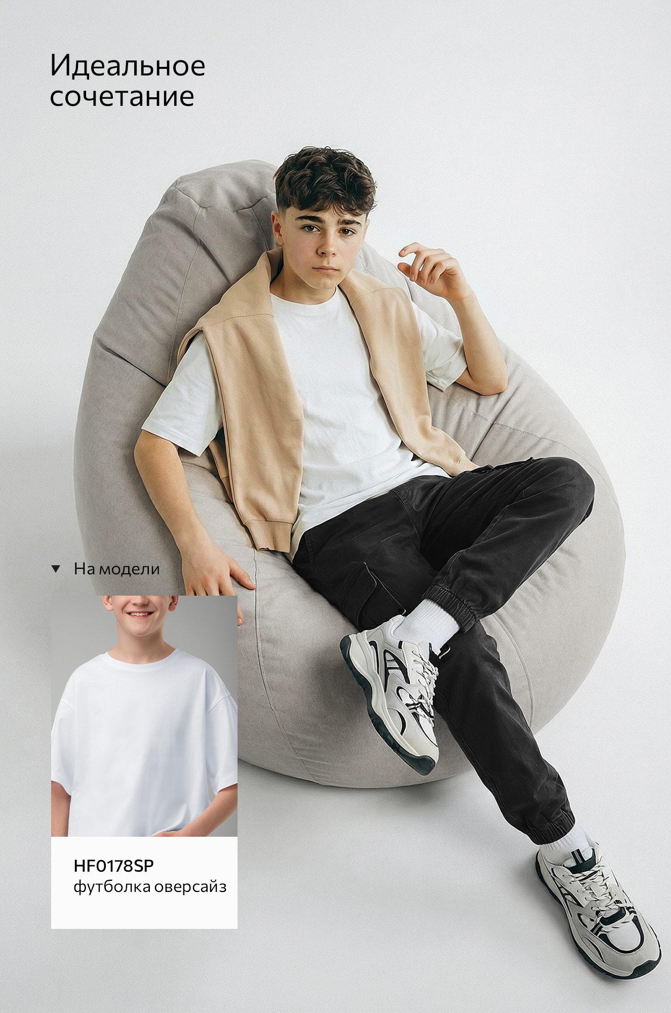 Тренды подростковой моды! Стильные брюки джоггеры для мальчиков и подростков выполнены из ткани габардин. Практичные брюки с большими накладными карманами идеальны на каждый день. Подростковые брюки карго свободного кроя, эластичный пояс регулируется шнурком, низ штанин собран на резинку.