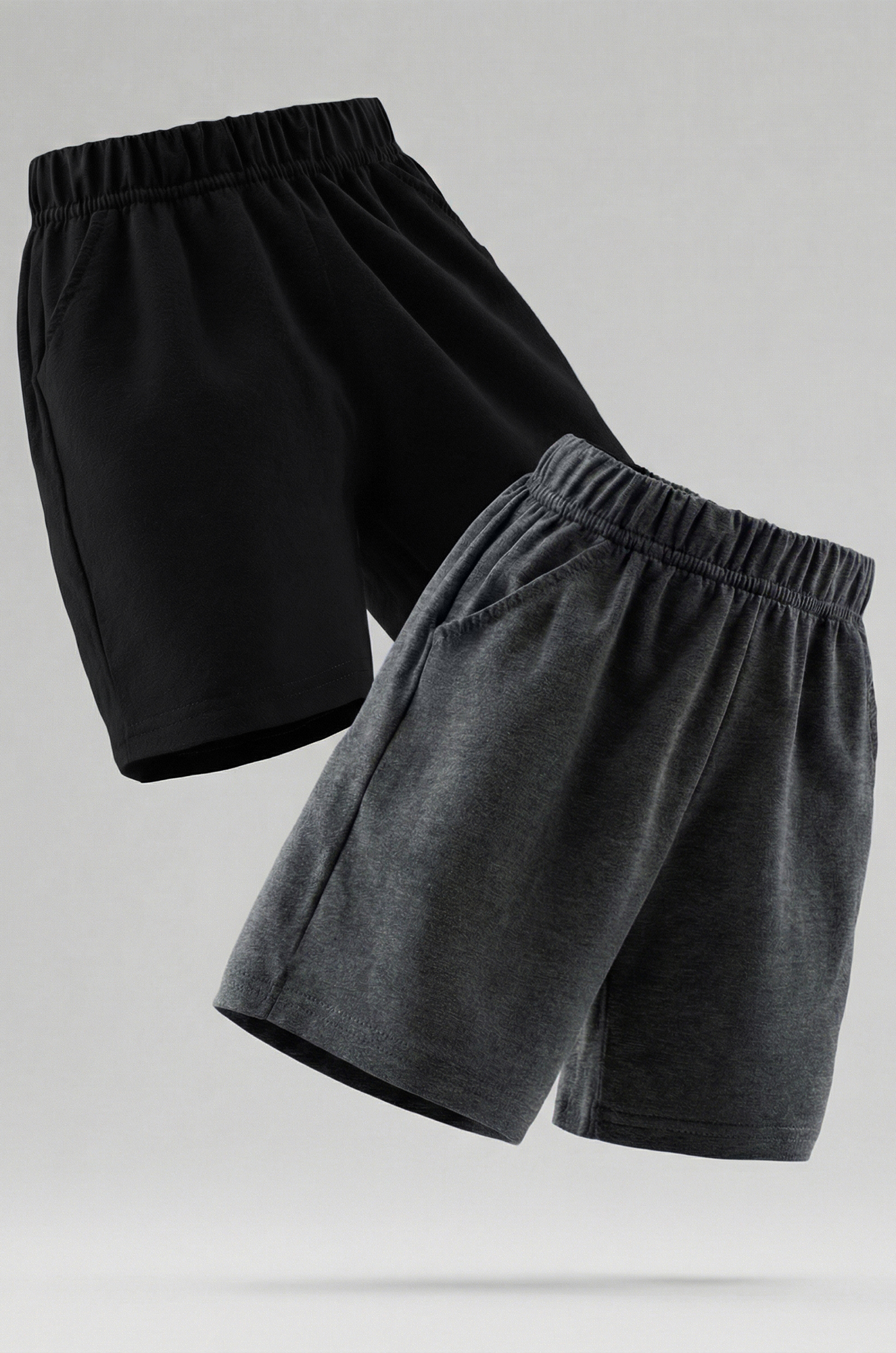— комплект шорт включает два базовых цвета: черные и темно-серые;