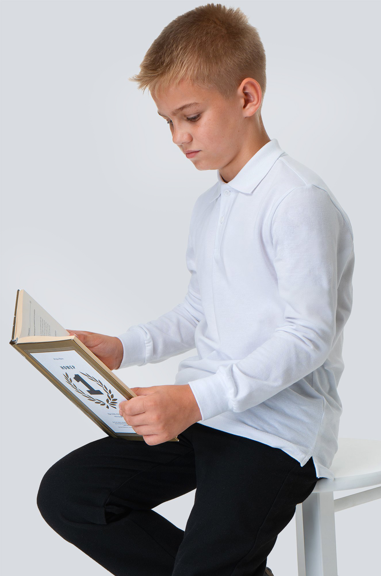 Базовая белая футболка-поло — отличное решение для школы, прогулок и повседневных образов.