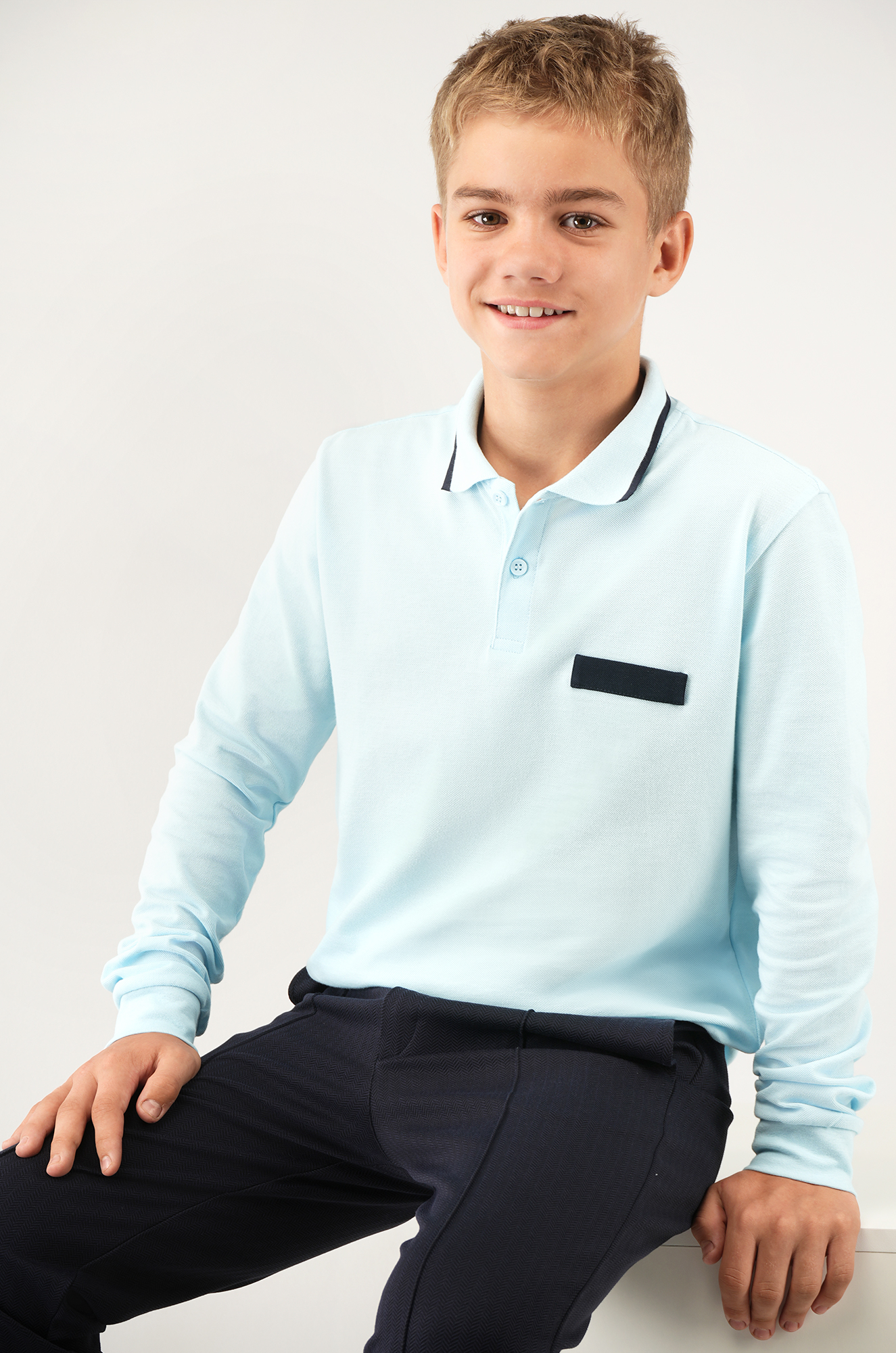 Прямой крой, вязаный воротник и застежка на пуговицы создают аккуратный силуэт. Хлопковая подростковая рубашка-поло легко подойдет как детский лонгслив и станет идеальным повседневным вариантом для многослойных образов школьника.