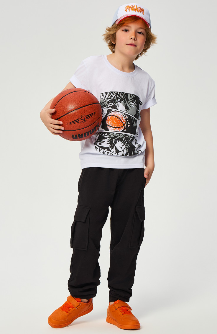 • Наш ассортимент футболок для мальчиков представлен во всем его разнообразии: от стильных однотонных моделей из 100% хлопка до игривых вариантов с яркими принтами и забавными надписями. Базовые футболки классического кроя подойдут для любого случая, обеспечивая комфорт и свободу движений в течение всего дня.