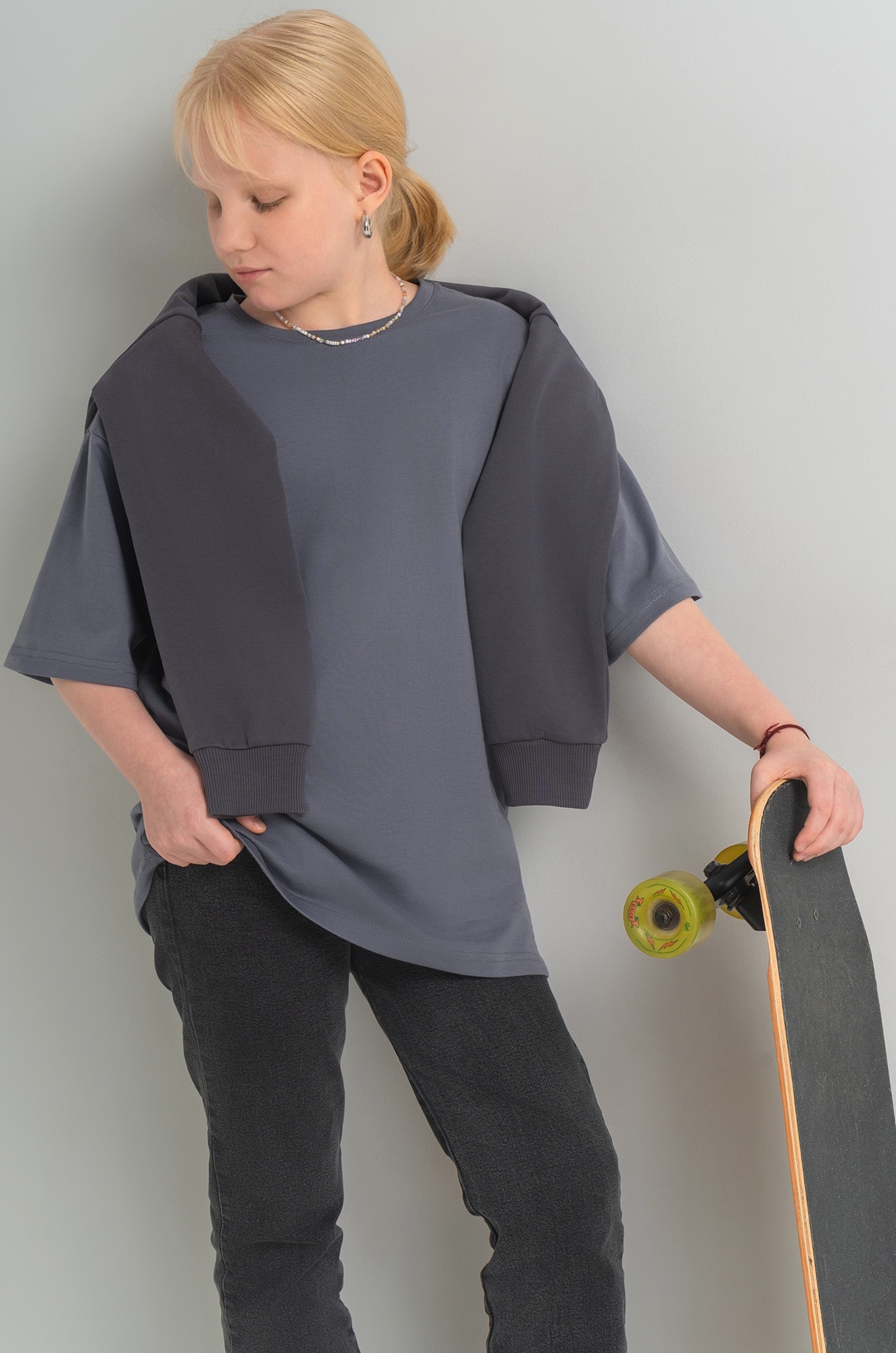 Подростковая футболка oversize – прекрасный летний вариант для детей. Однотонная футболка прекрасно интегрируется в молодежные стили. Она пригодится весной и осенью, в ней можно ходить на прогулку и проводить время с друзьями. Трикотажная футболка унисекс идеальна на каждый день.