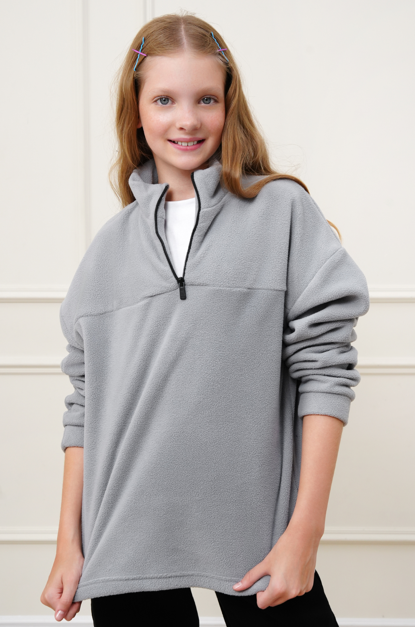 Прямой крой и воротник-стойка делают подростковую кофту универсальной и стильной. Базовая флисовая толстовка подойдёт для детей и подростков на учёбу и активные выходные — ведь она теплая, удобная и всегда кстати.