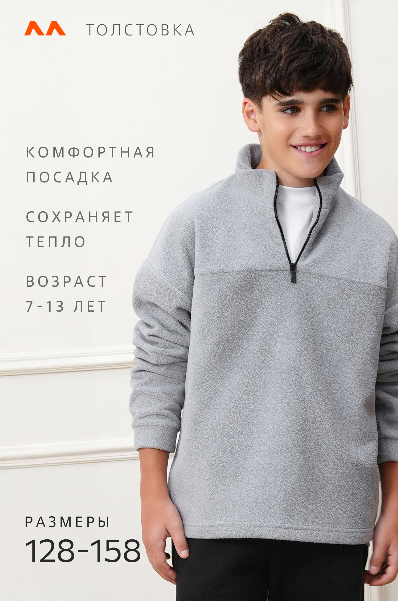 Флисовая толстовка для мальчиков и мальчиков подростков создана для комфорта и тепла в прохладные дни. Свободный крой и воротник на молнии делают детскую олимпийку удобной для школы, прогулок и активного отдыха осенью. Серая толстовка на молнии станет стильным акцентом в повседневном образе.