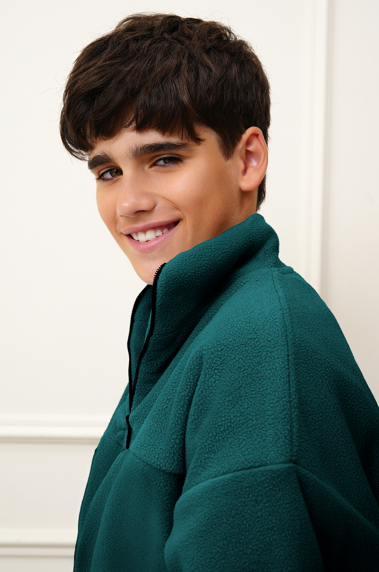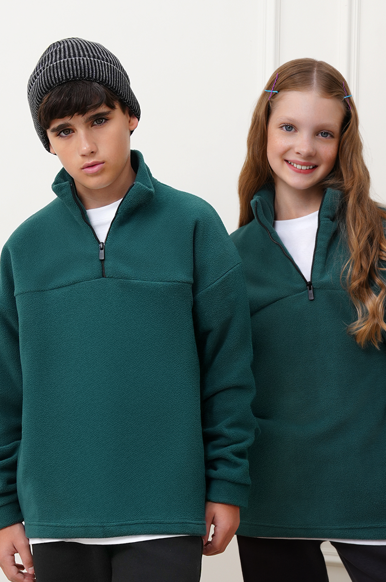 Флисовая толстовка для мальчиков и мальчиков подростков создана для комфорта и тепла в прохладные дни. Свободный крой и воротник на молнии делают детскую олимпийку удобной для школы, прогулок и активного отдыха осенью. Зеленая толстовка на молнии станет стильным акцентом в повседневном образе.