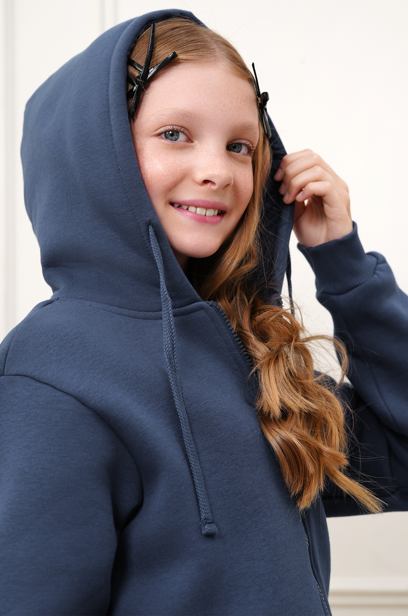 – толстовка на молнии с капюшоном и карманами дарит комфорт и удобство;