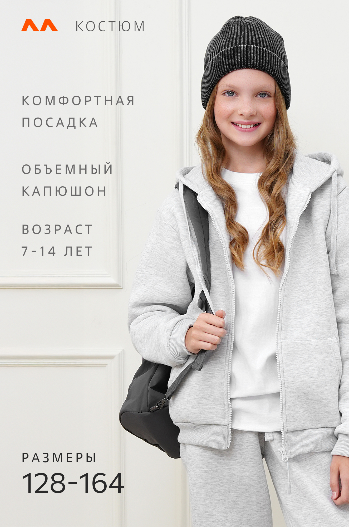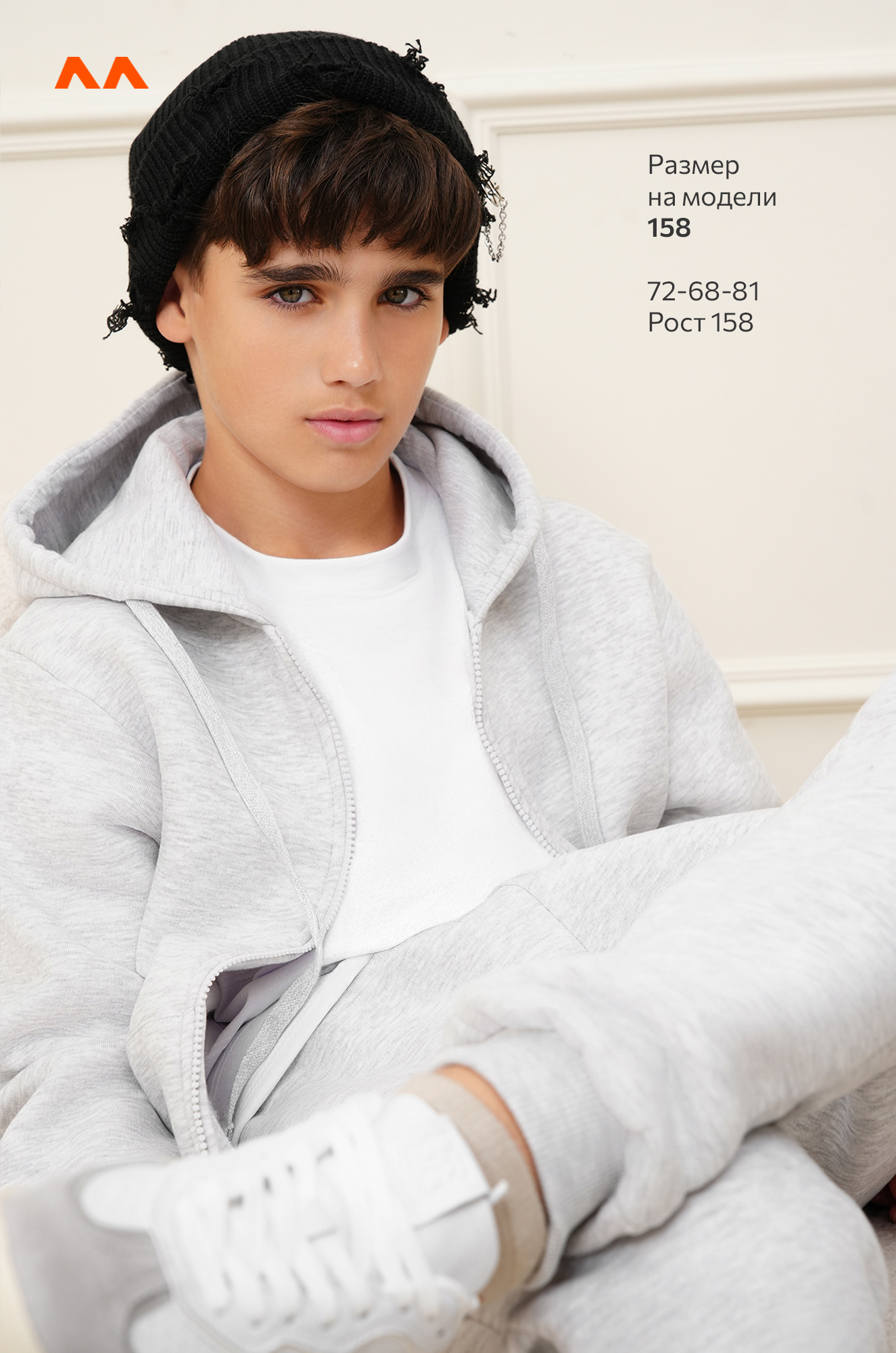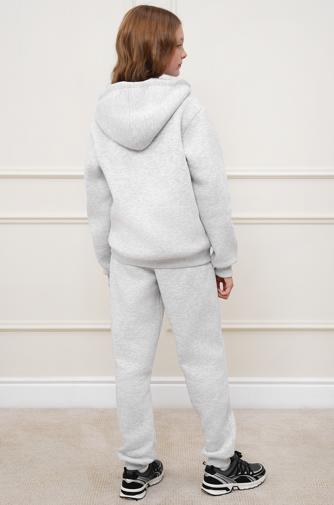 Детский костюм с худи и брюками для мальчиков и девочек выполнен из плотного трикотажа футер с начесом. Базовый светло-серый цвет делает комплект для подростков универсальным и легко вписывается в повседневные образы.