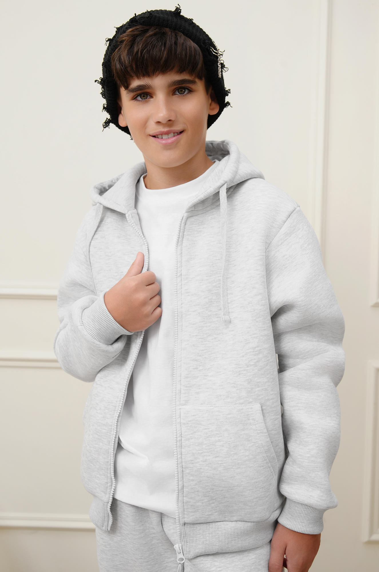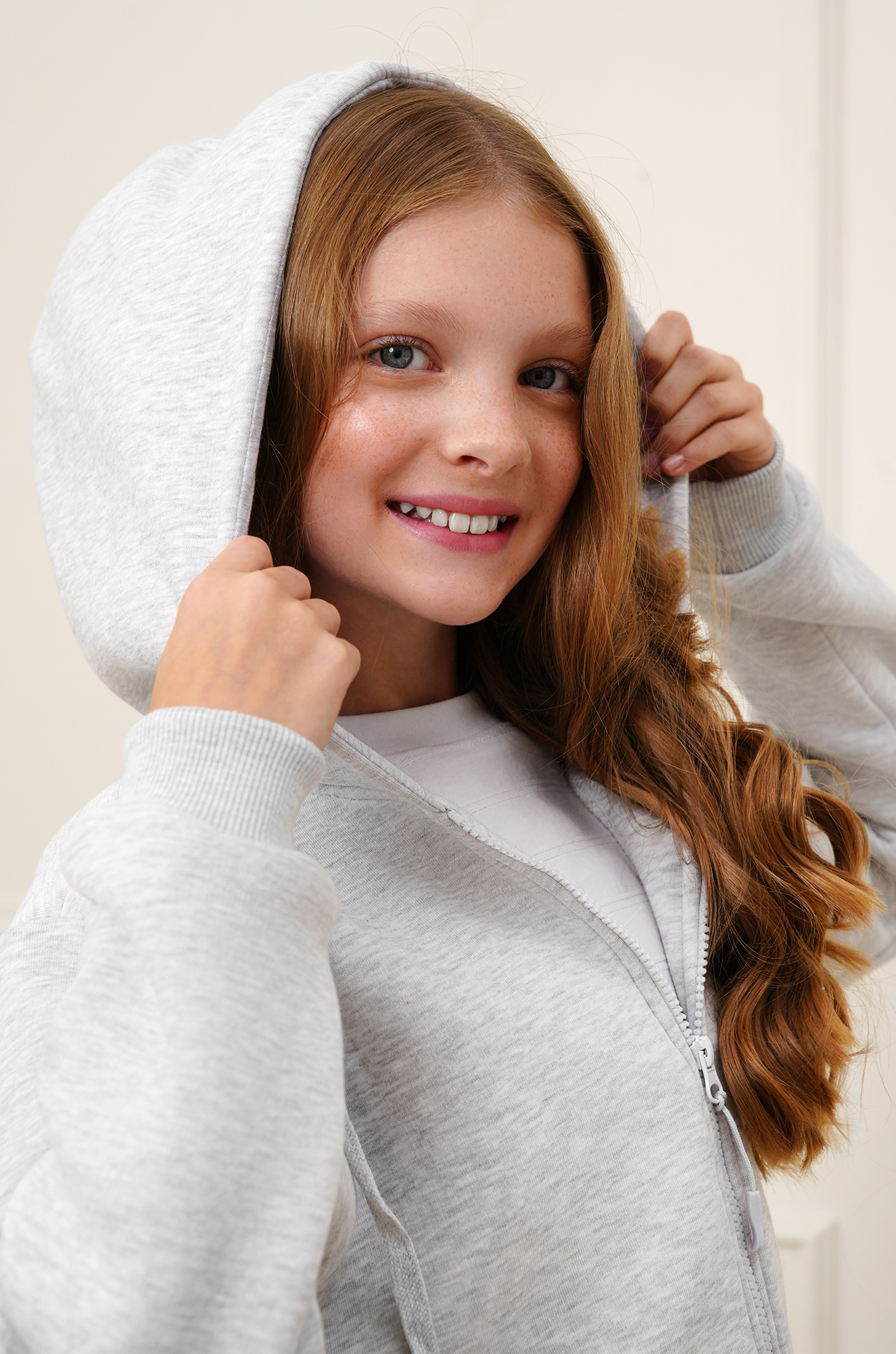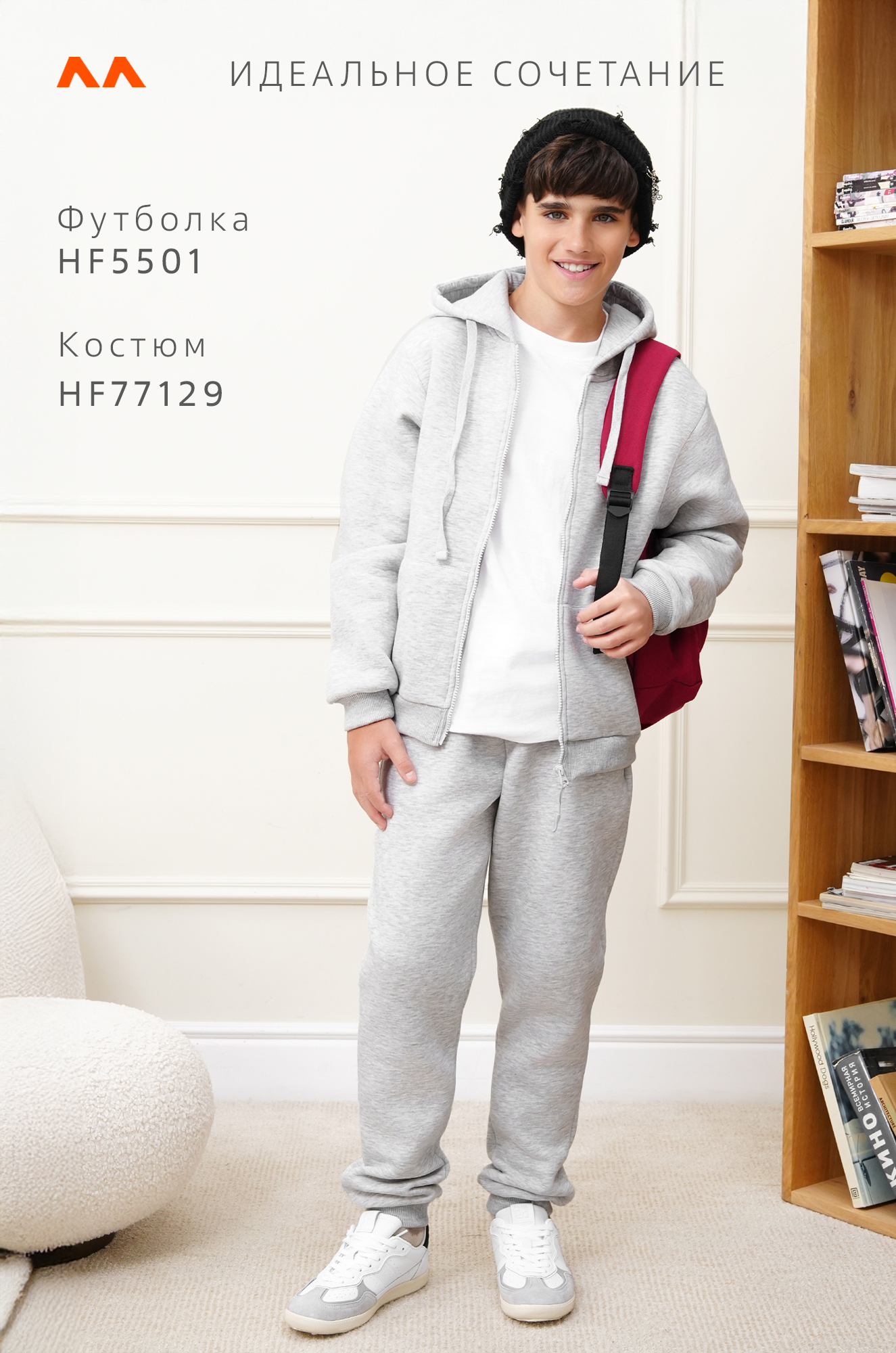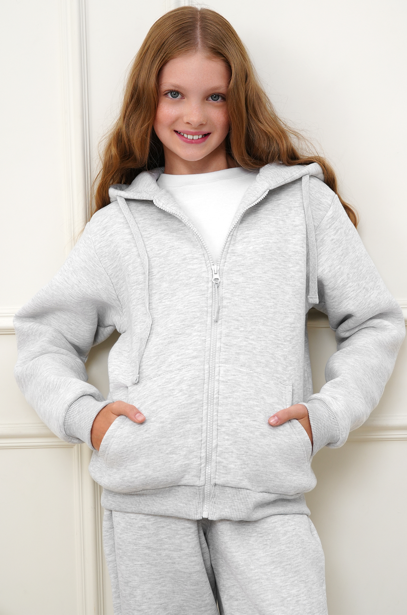 Детский костюм с худи и брюками для мальчиков и девочек выполнен из плотного трикотажа футер с начесом. Базовый светло-серый цвет делает комплект для подростков универсальным и легко вписывается в повседневные образы.