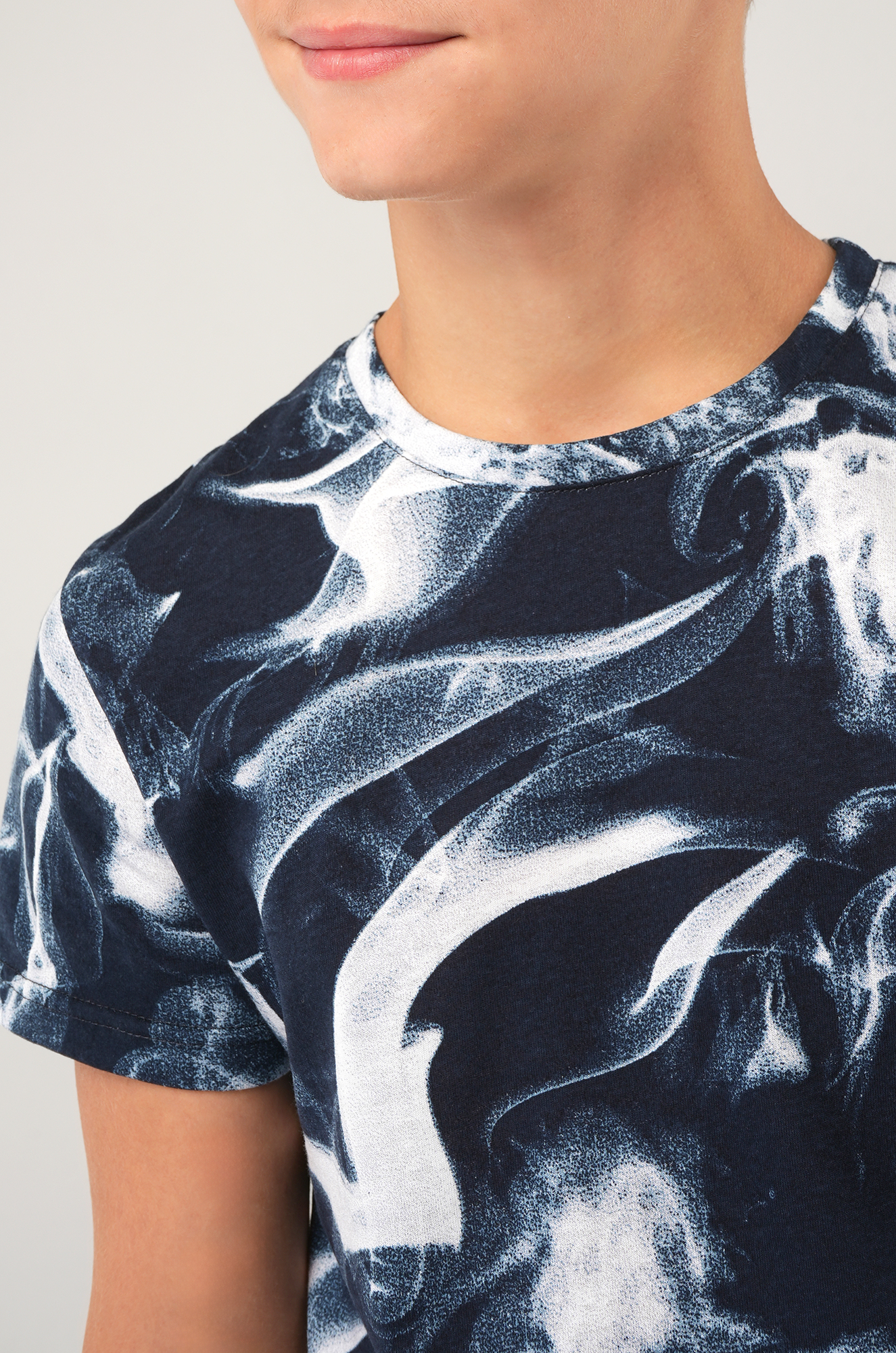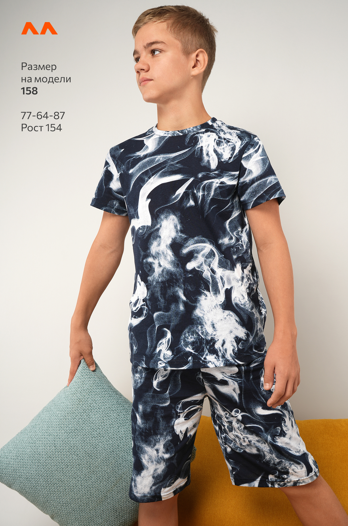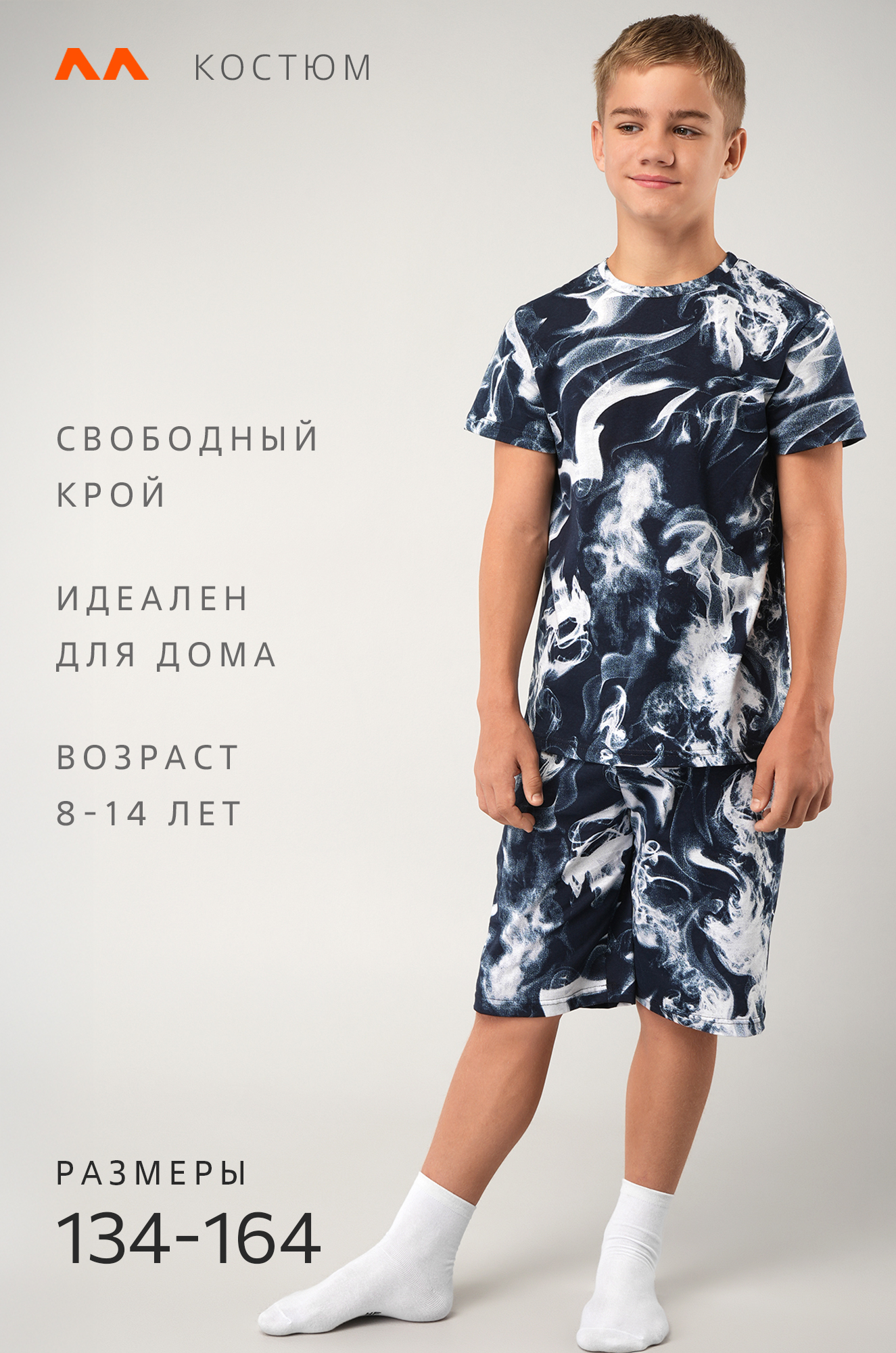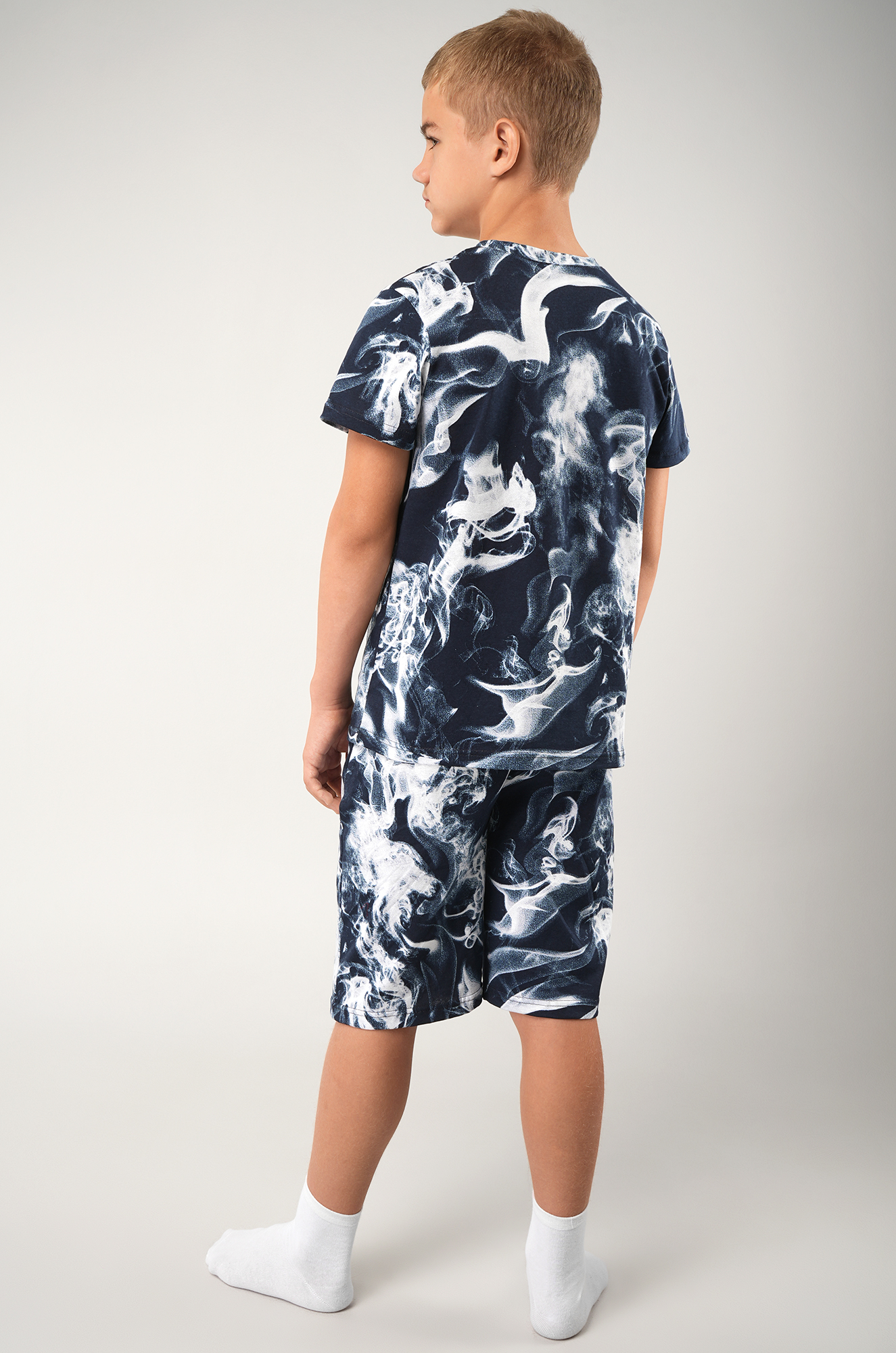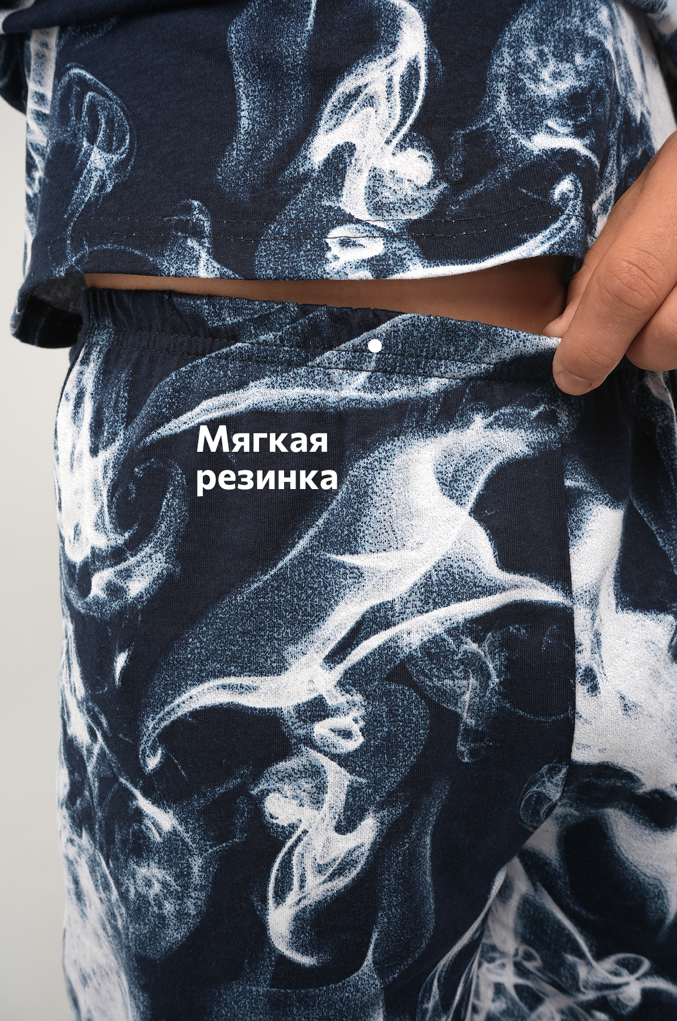 Синий костюм с принтом Дым подходит для сна и отдыха. Подростковый трикотажный костюм идеален для дома.