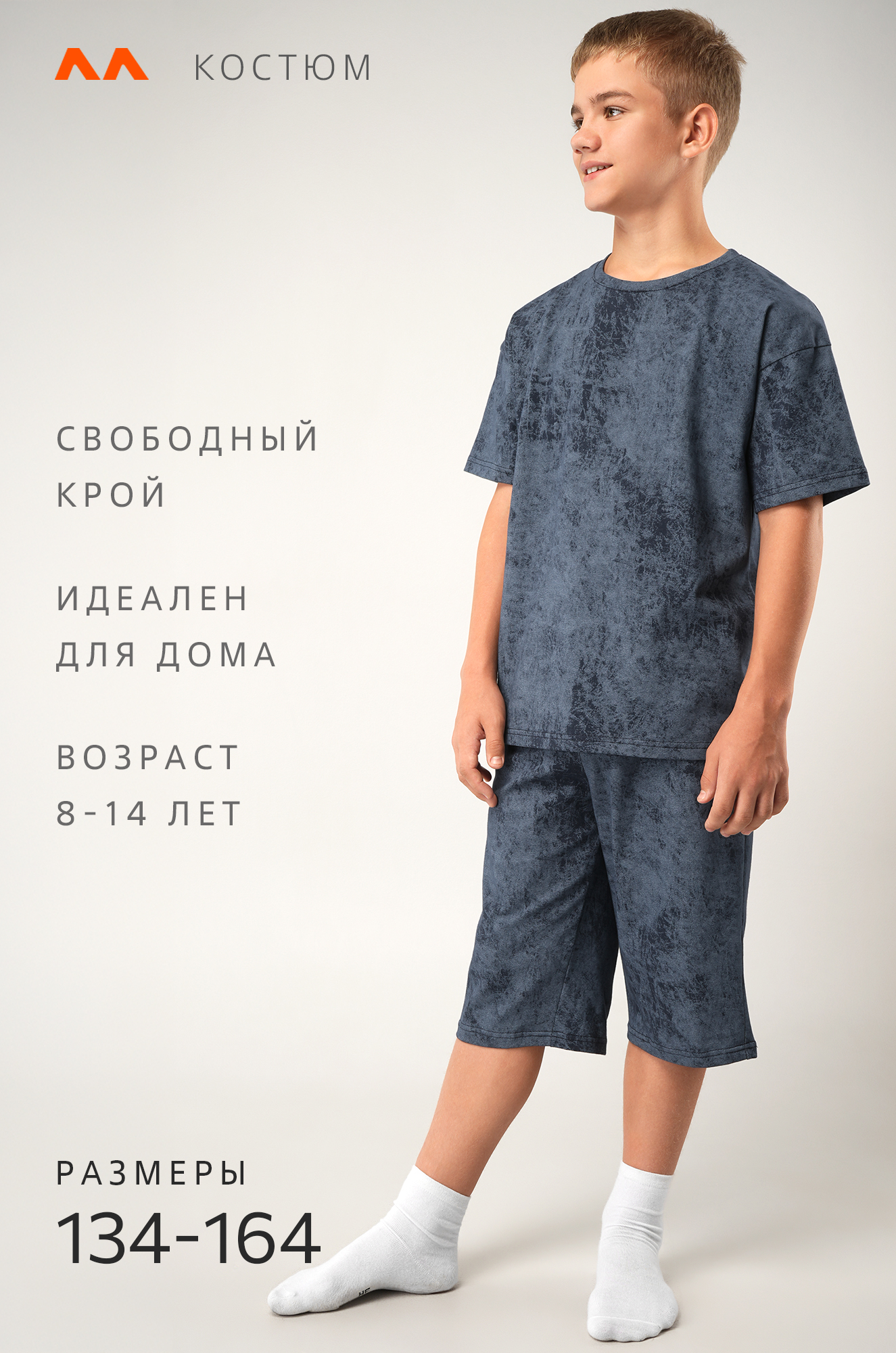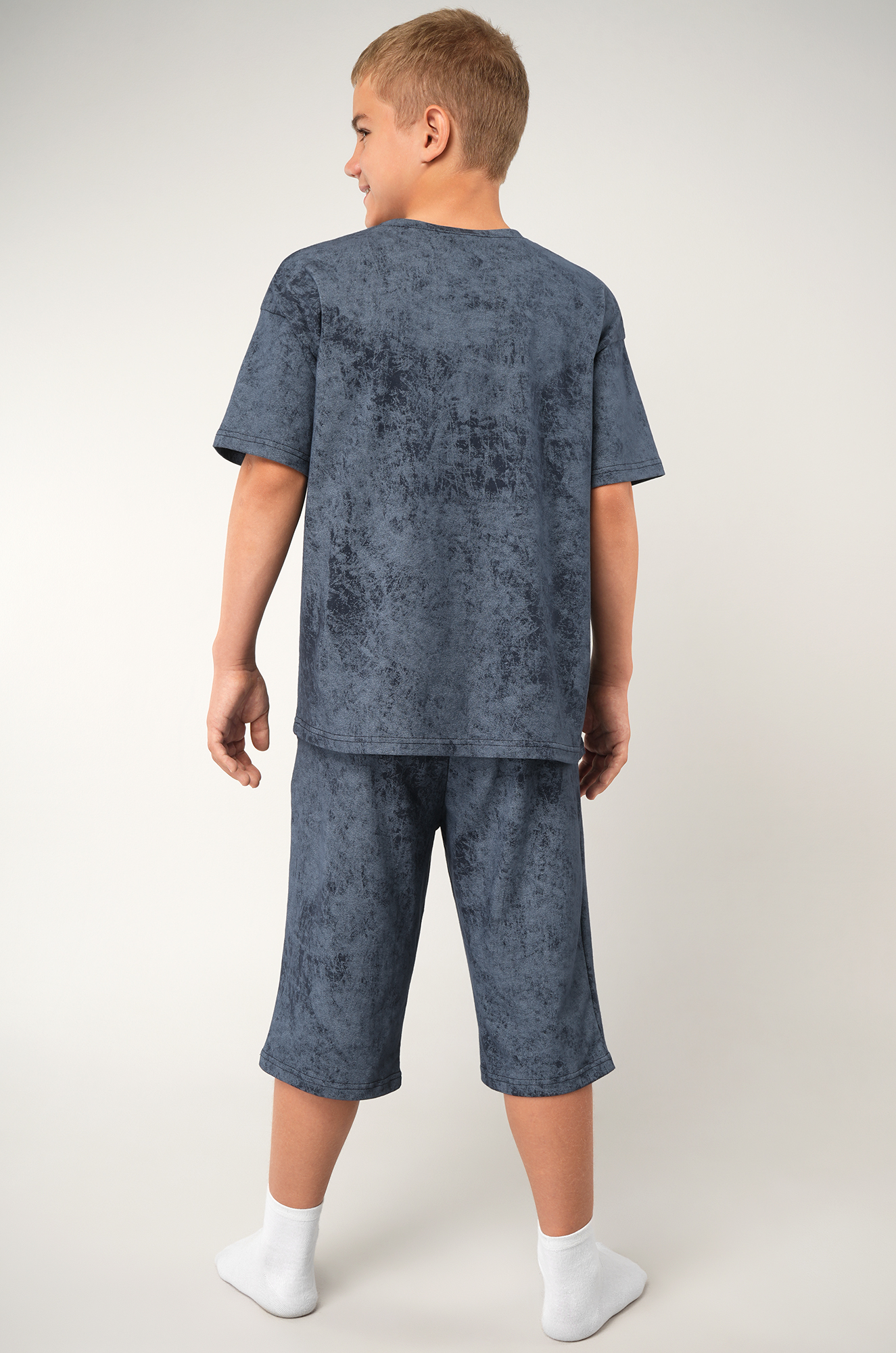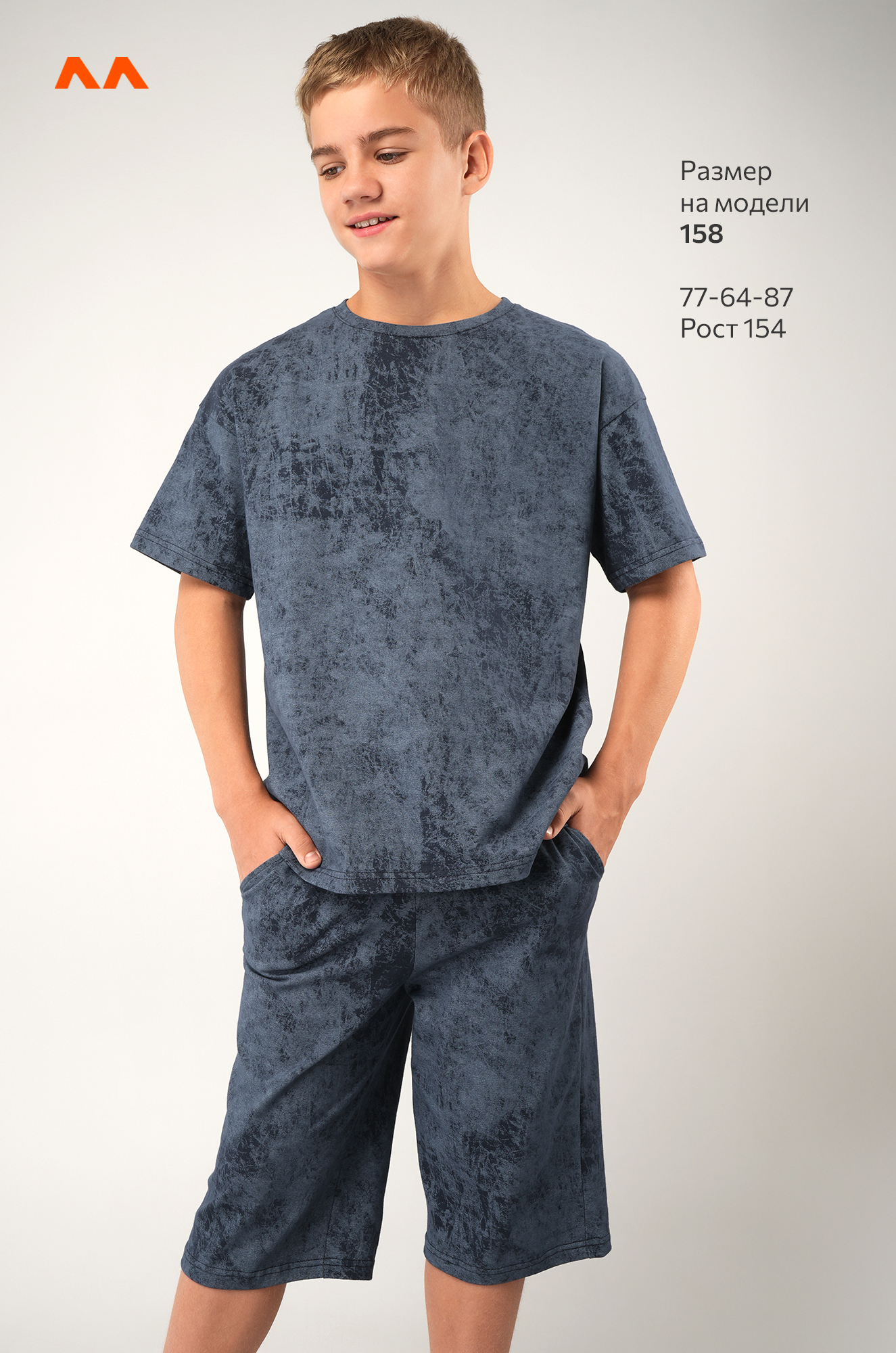 Темно-синий костюм с винтажным эффектом варенка подходит для сна и отдыха дома.
