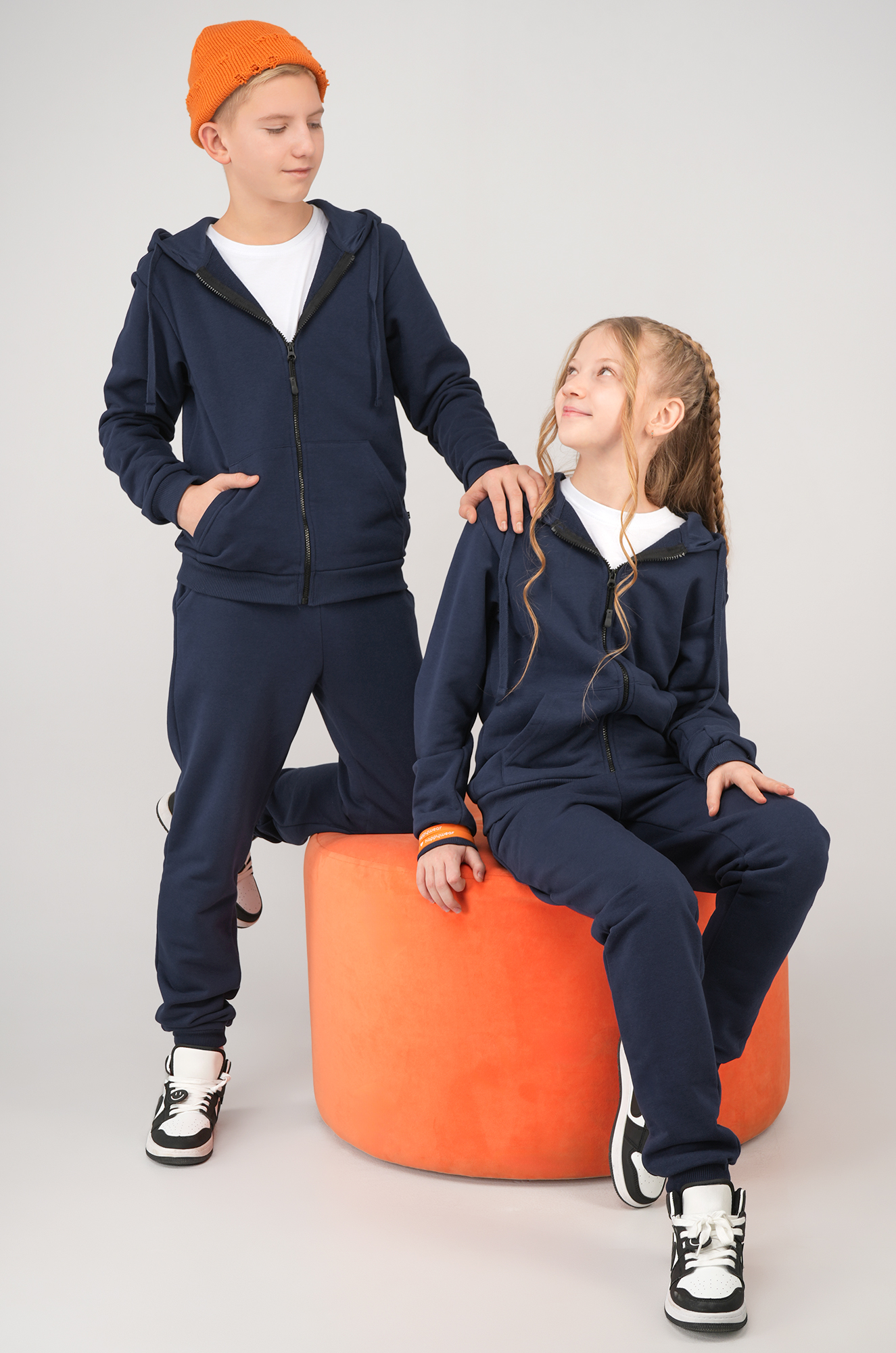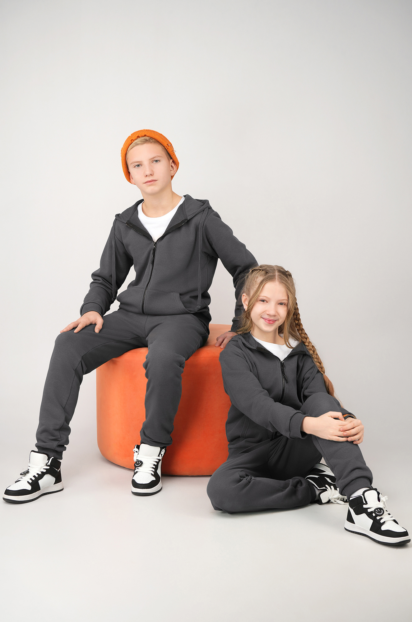 Стильный детский костюм для мальчика подростка вдохновляет на активность. Мягкая толстовка оверсайз и широкие брюки на манжете придают полную свободу движений.
