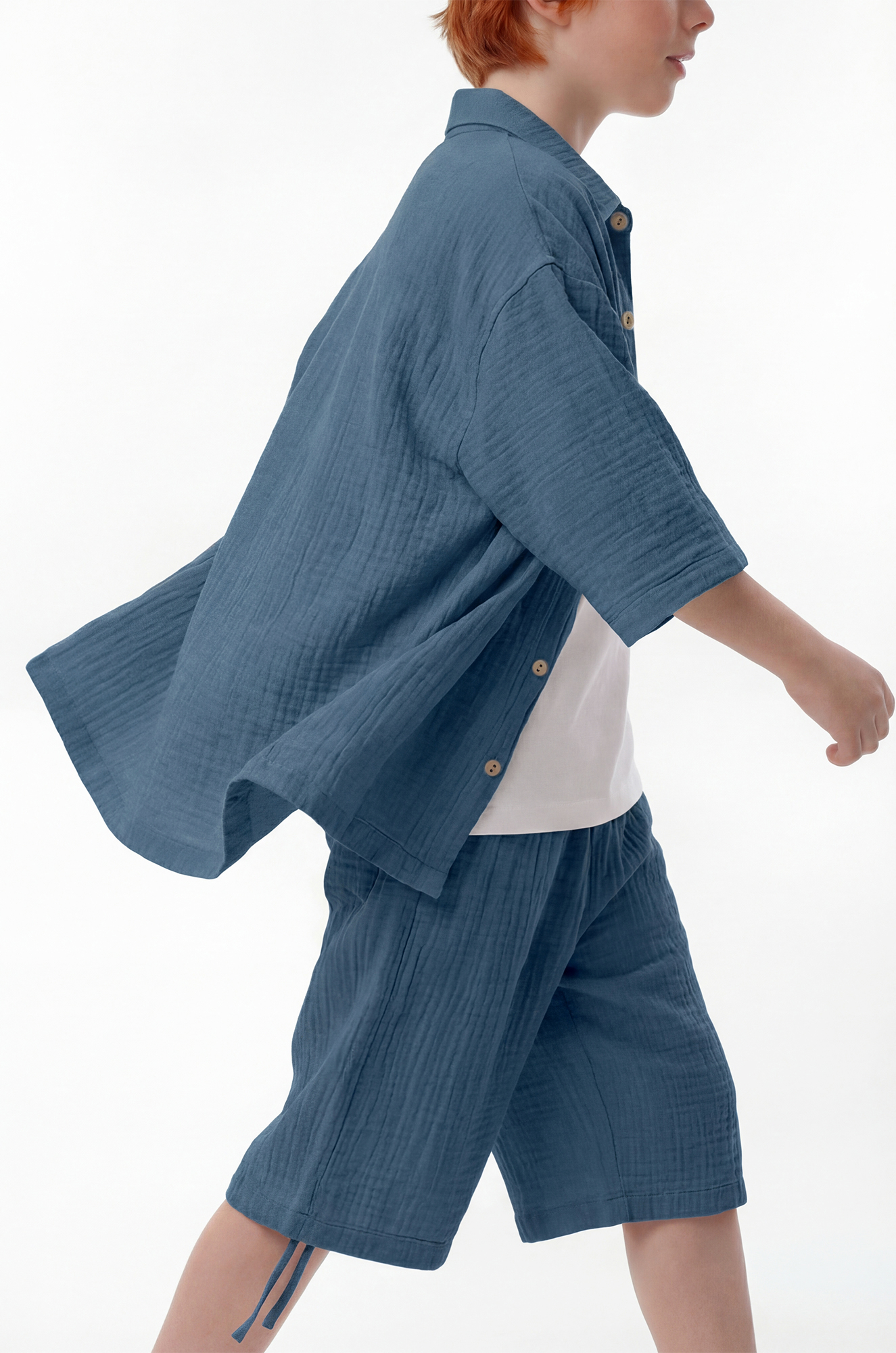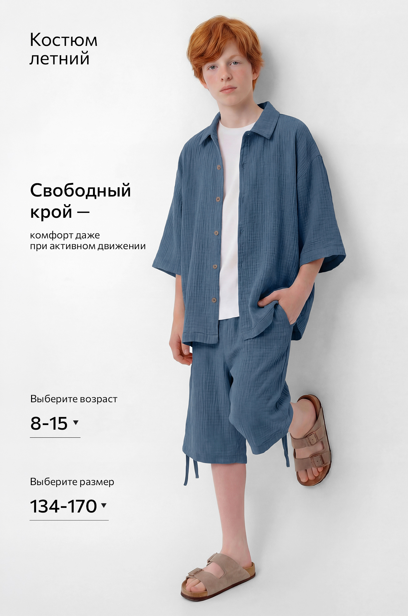 Муслиновый костюм для детей и подростков станет идеальным решением для прогулок в парке, игр во дворе или поездок на природу. Легкий хлопковый костюм — отличный выбор на каждый день.
