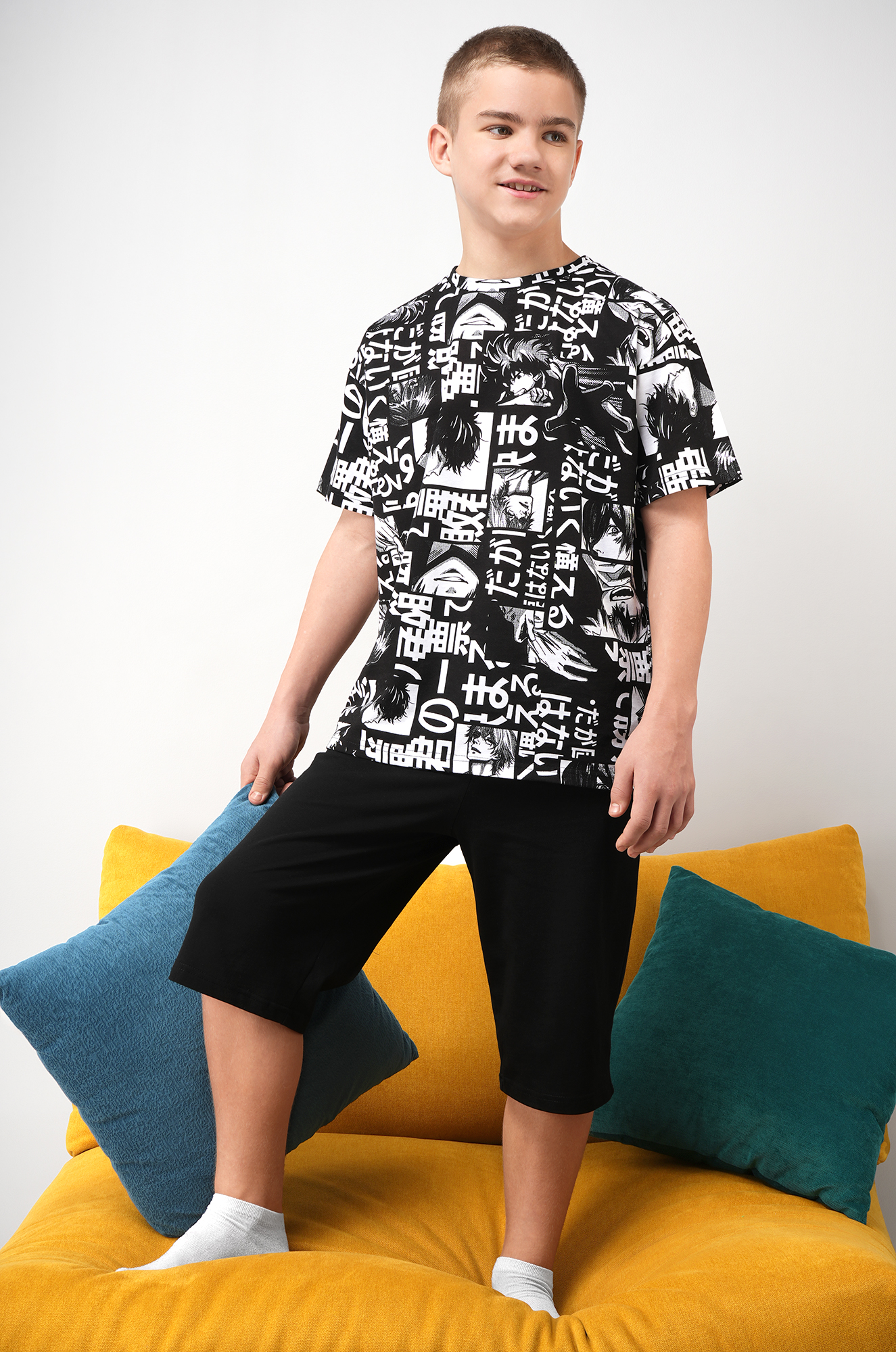 Летний костюм для мальчика подростка создан для комфортного активного отдыха, а также для домашнего уюта. Костюм с шортами идеален для тех, кто ценит свободу движений и комфорт.
