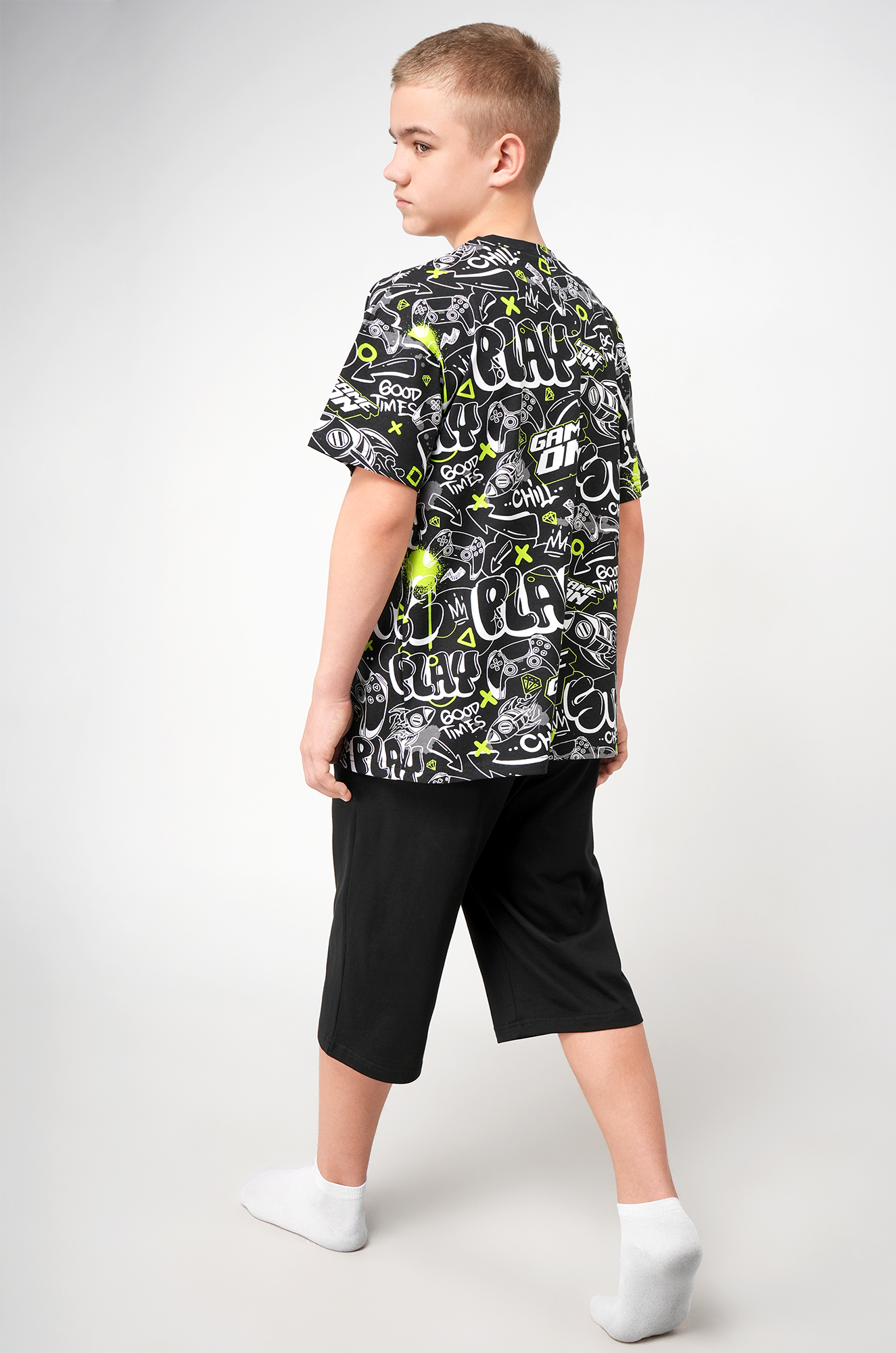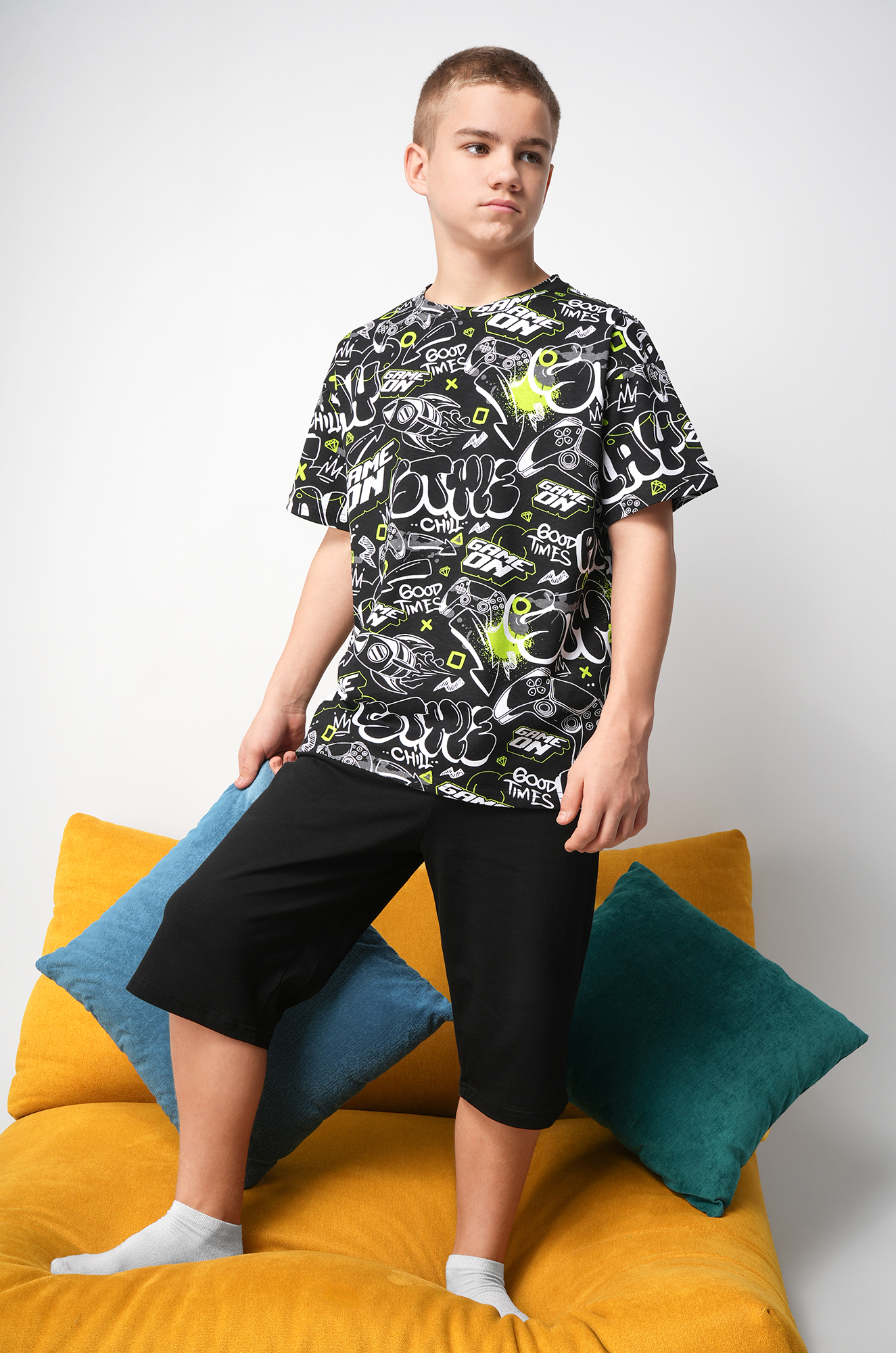Летний костюм для мальчика подростка создан для комфортного активного отдыха, а также для домашнего уюта. Костюм с шортами идеален для тех, кто ценит свободу движений и комфорт.