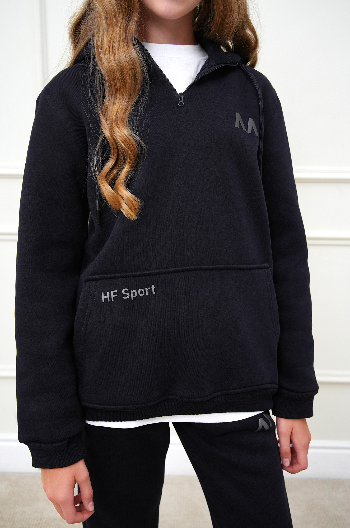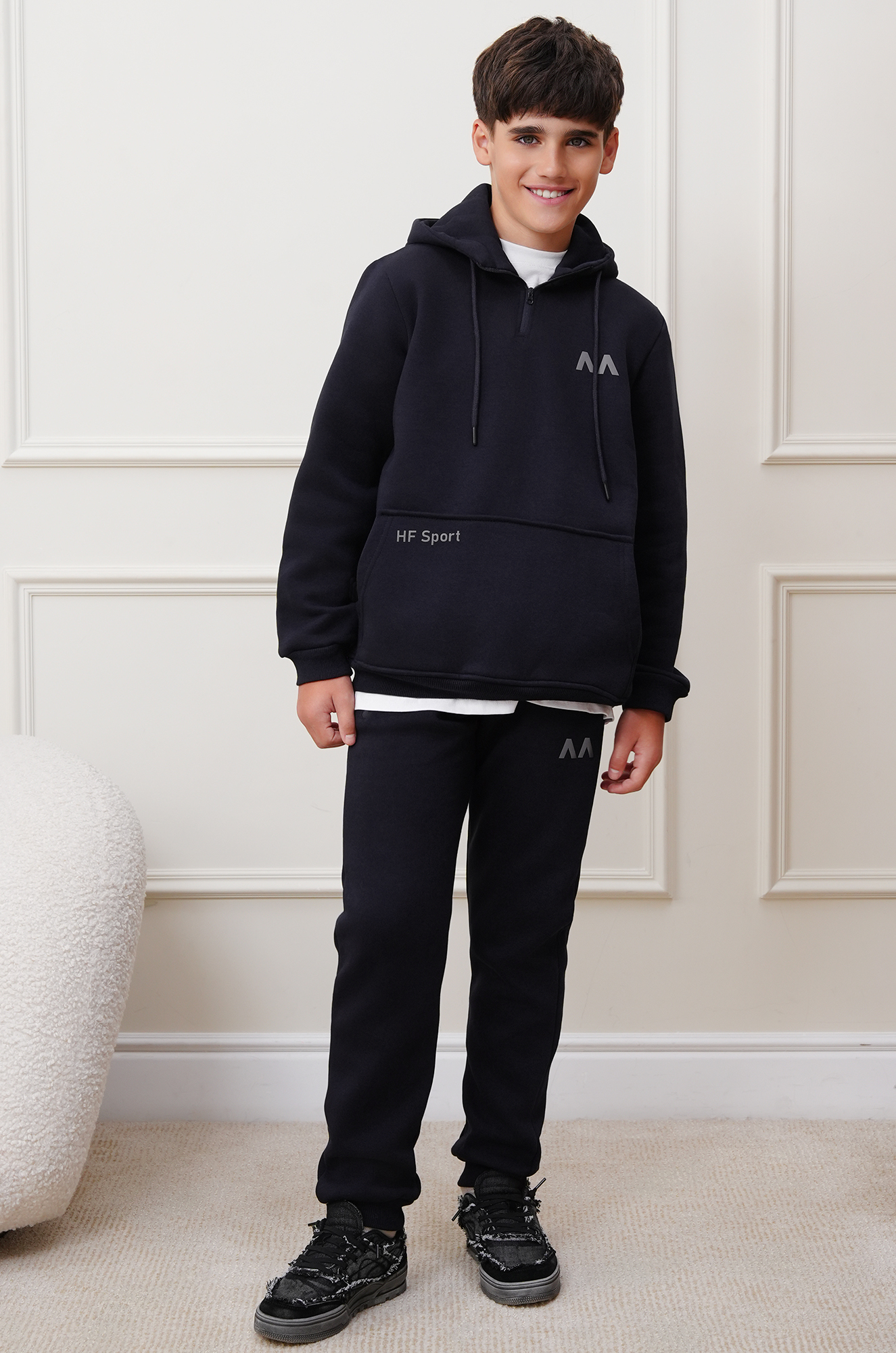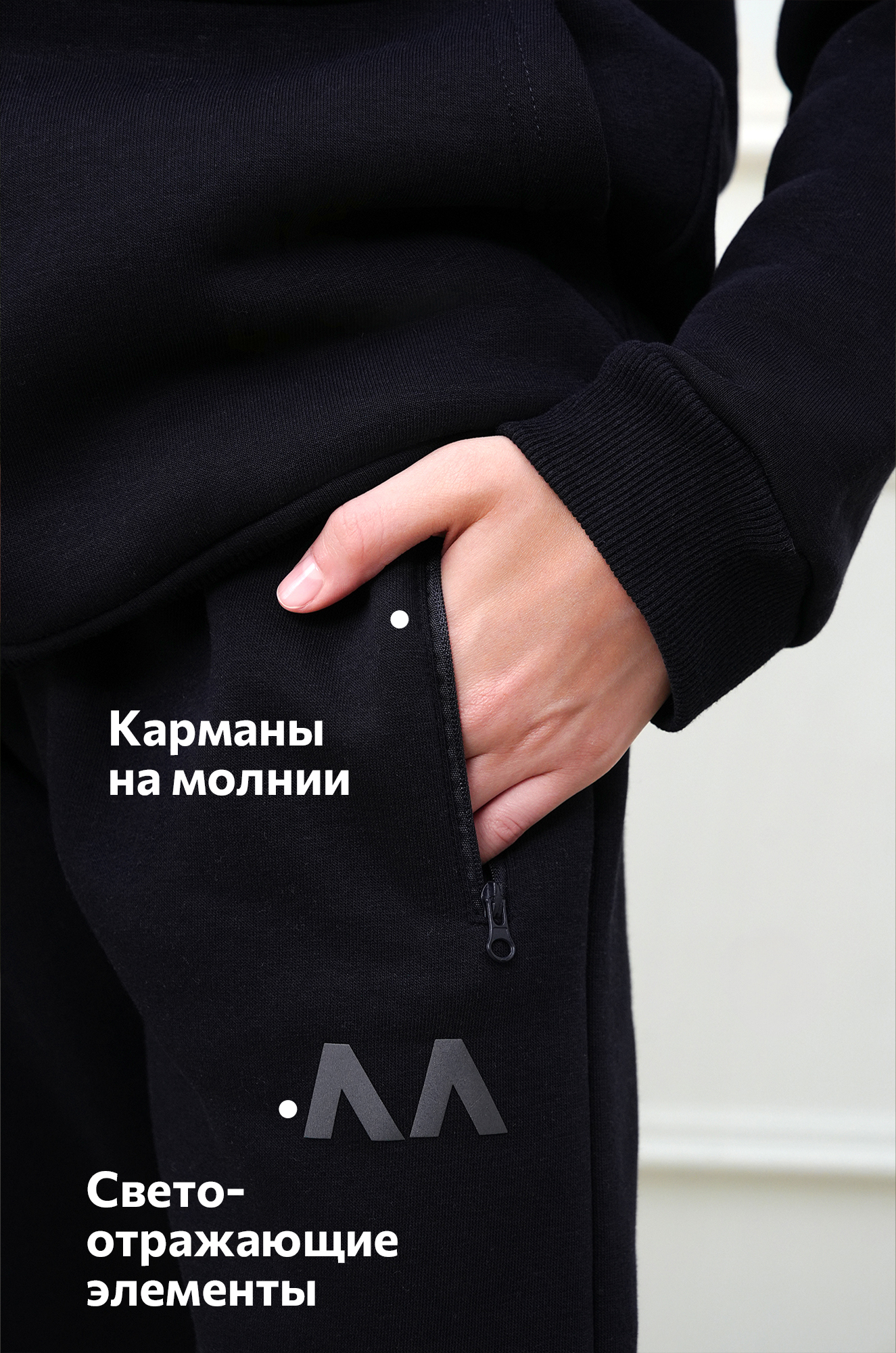— утепленный костюм с брюками-джоггерами не стесняет движений;