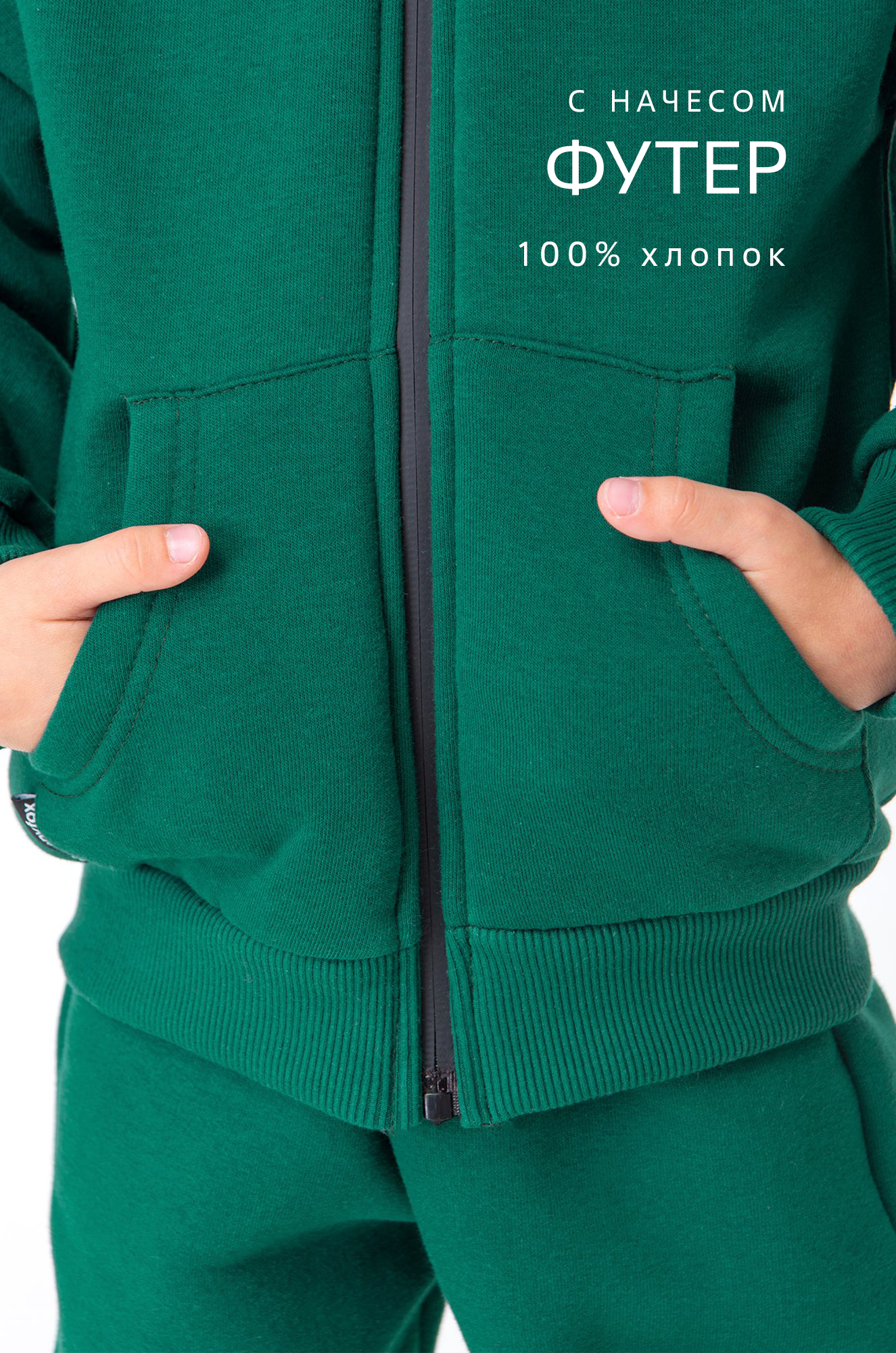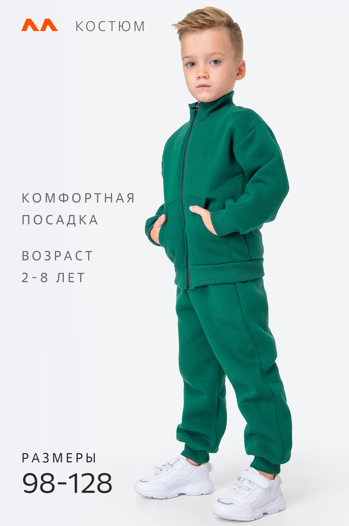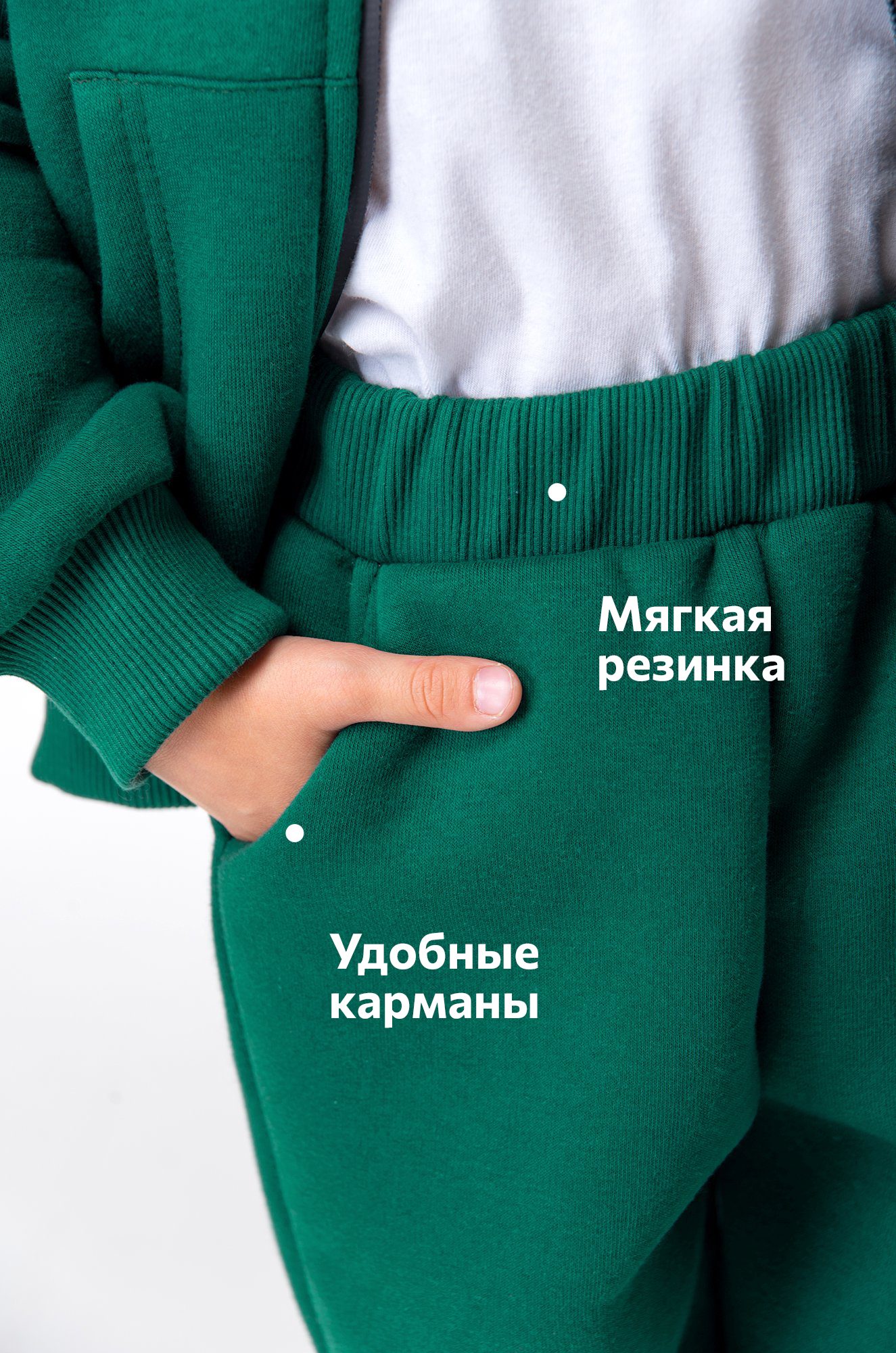 Теплый спортивный костюм с начесом для мальчика выполнен из плотного футера трехнитки. Толстовка с застежкой на молнию, удобные карманы, крой оверсайз и мягкий манжетный пояс делают детский костюм изумрудного цвета невероятно уютным. Однотонный зимний костюм двойка поможет создать крутые повседневные образы.